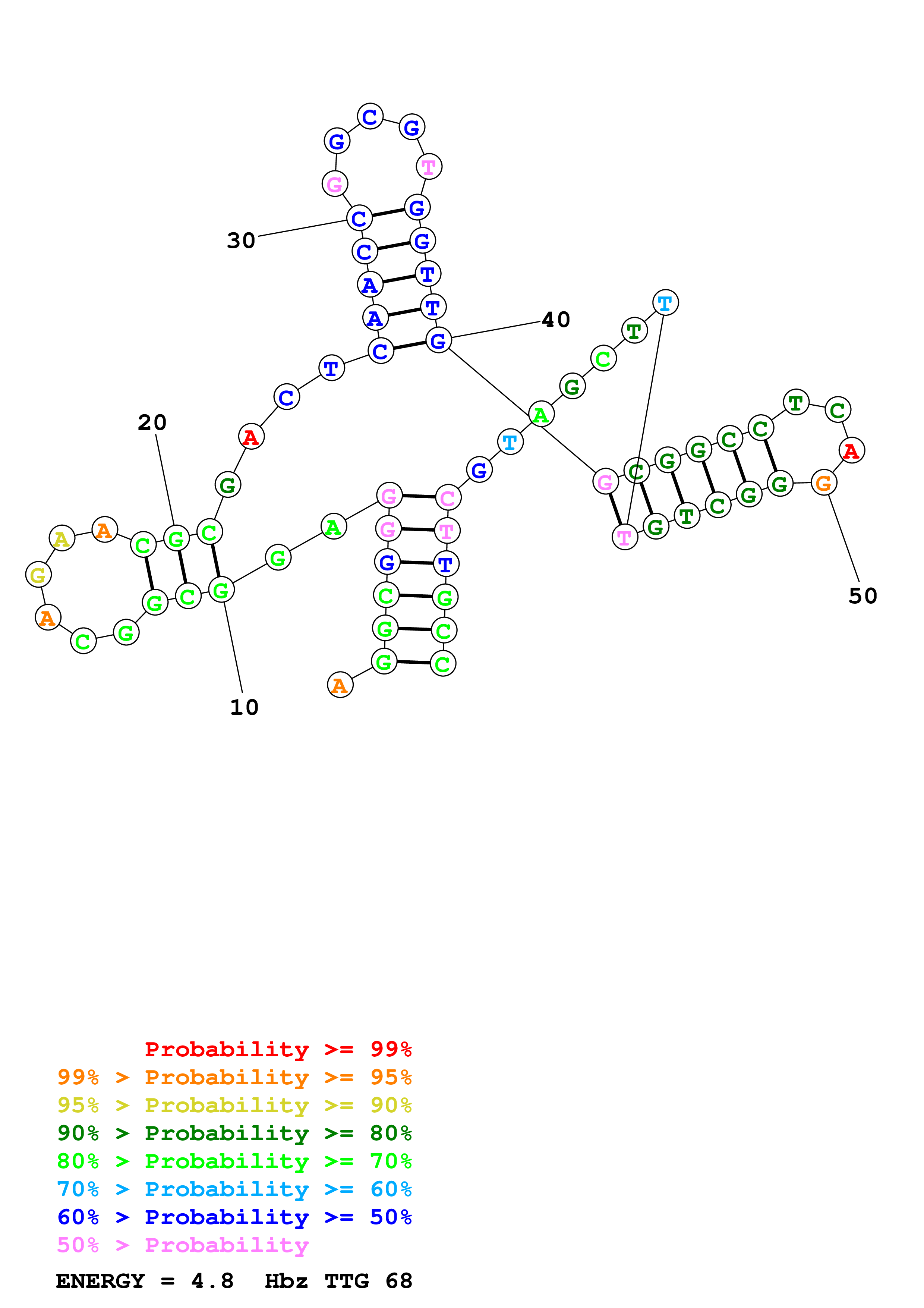 (Generate a structure or structures composed of highly probable base pairs. This is an alternative method for structure prediction that may have higher fidelity in structure prediction.)