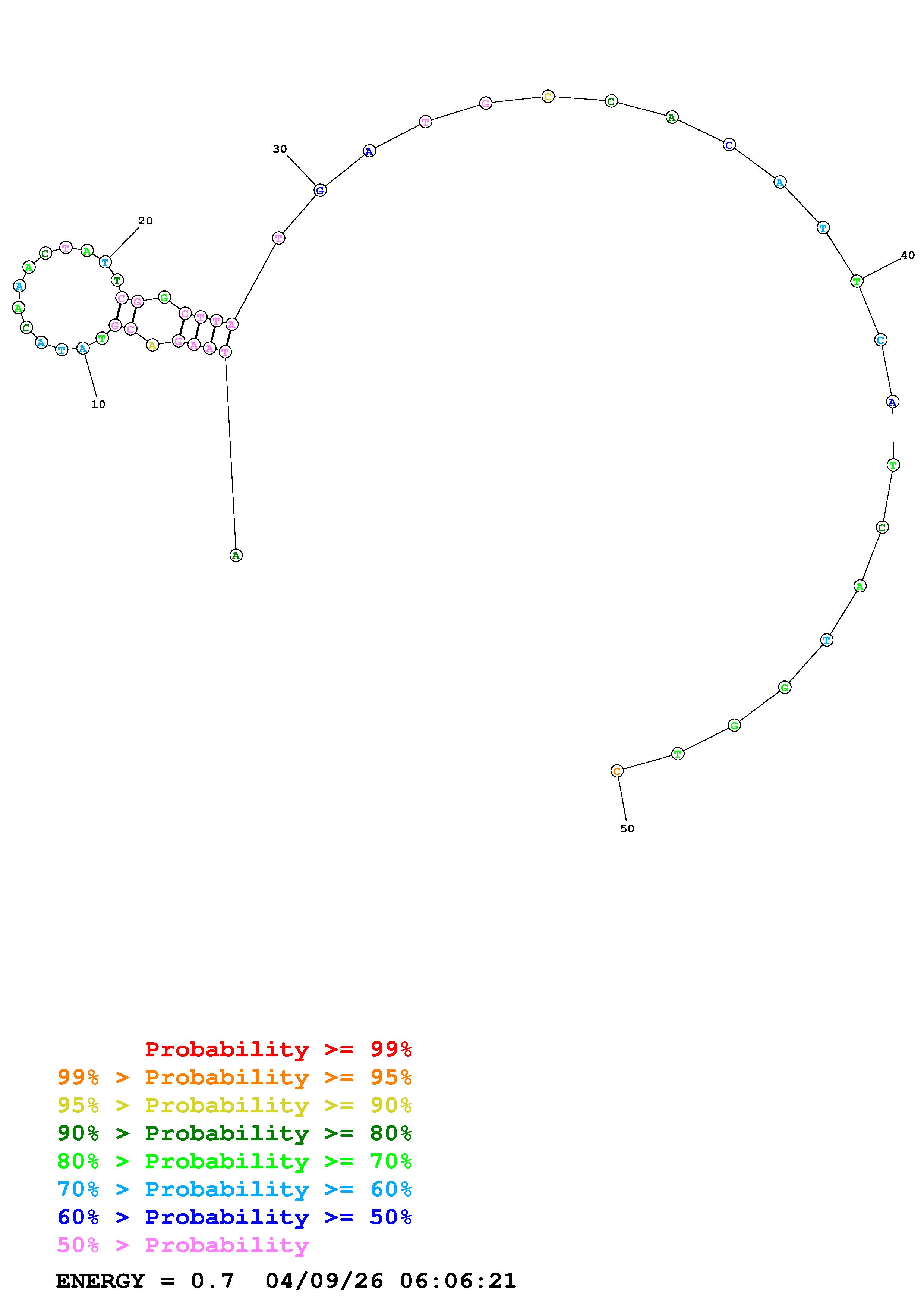 Fold Predict1.fasta Fold.ct --DNA --loop 30 --maximum 20 --percent 10 --temperature 338.15 --window 3