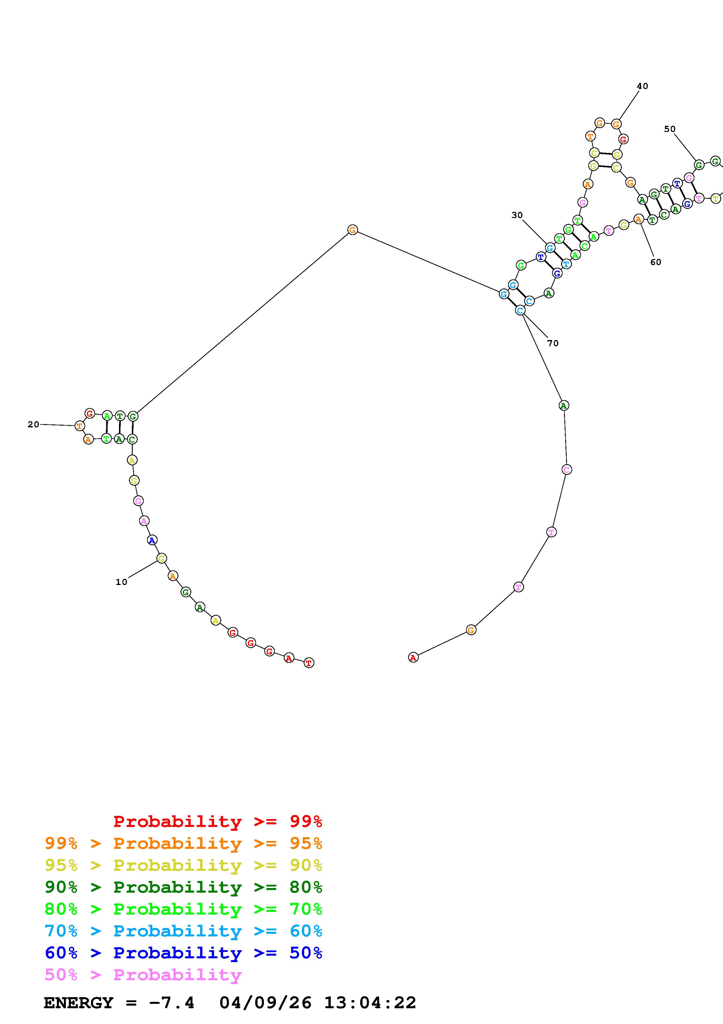Fold Predict1.fasta Fold.ct --DNA --loop 30 --maximum 20 --percent 10 --temperature 298 --window 3