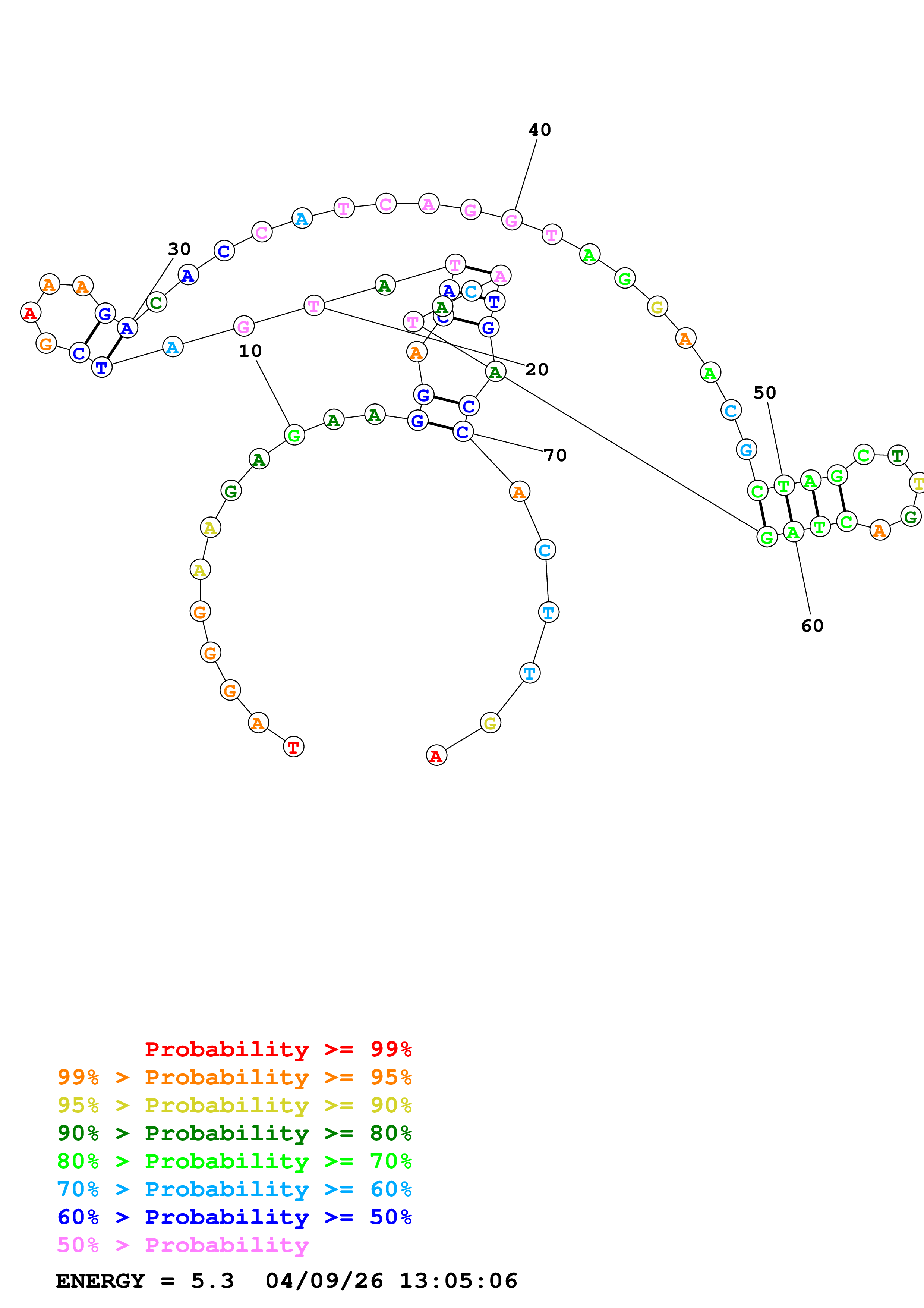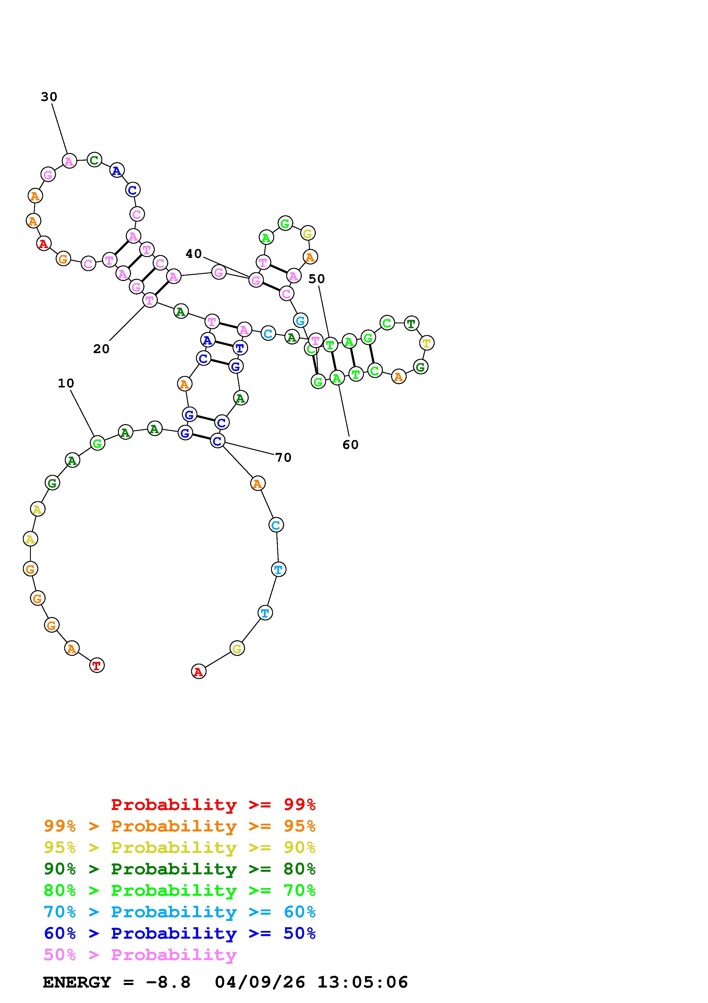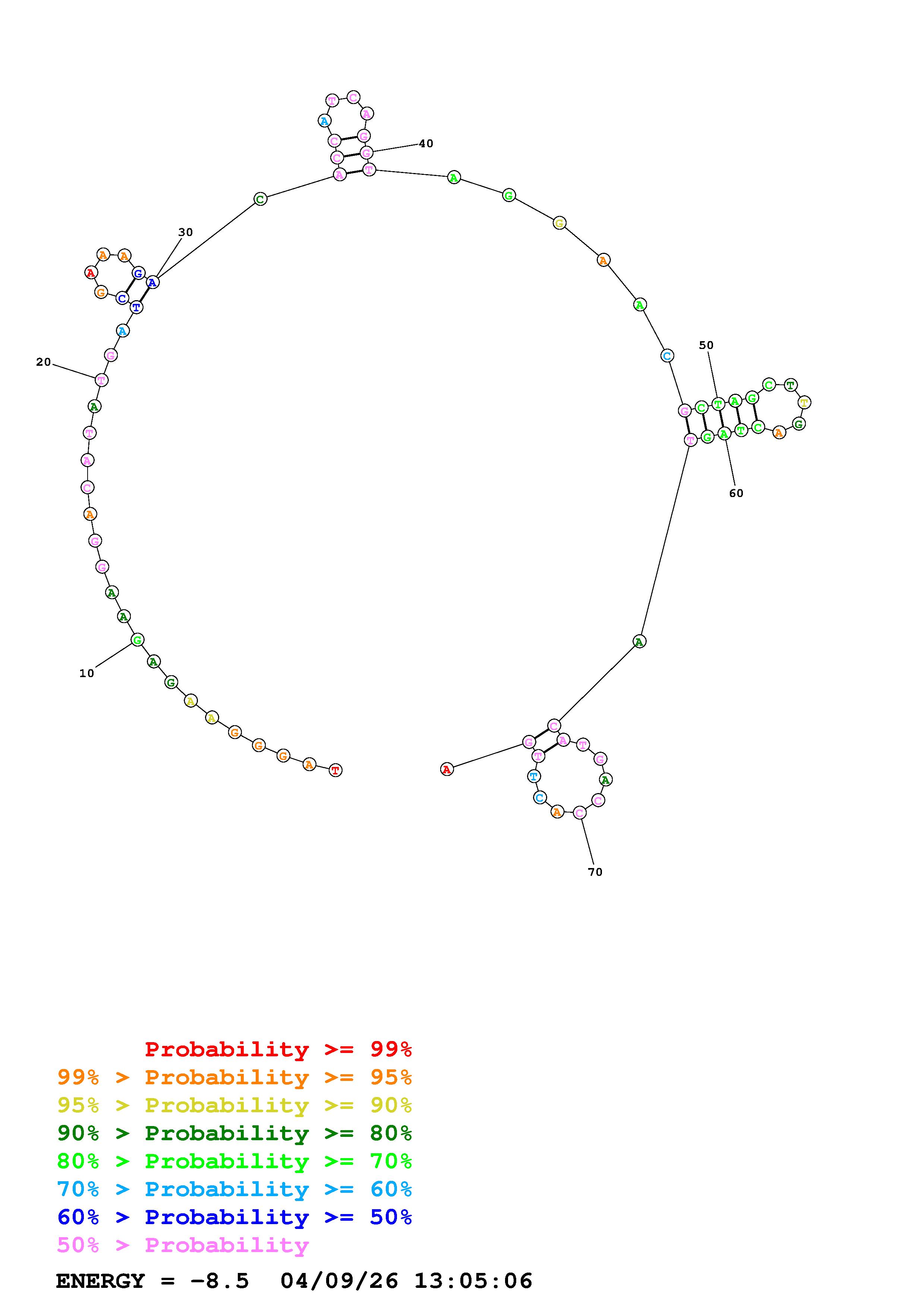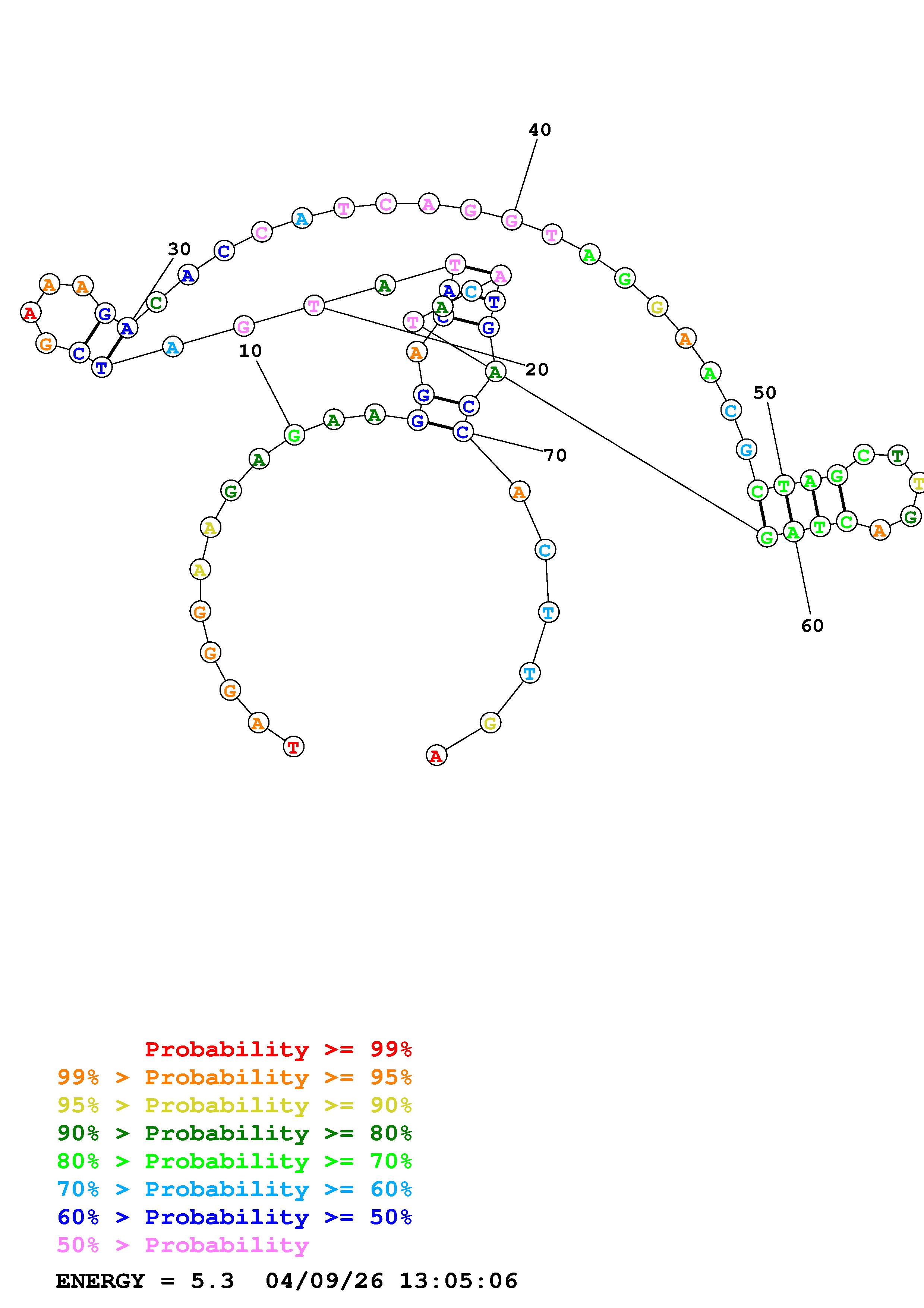 Fold Predict1.fasta Fold.ct --DNA --loop 30 --maximum 20 --percent 10 --temperature 298 --window 3