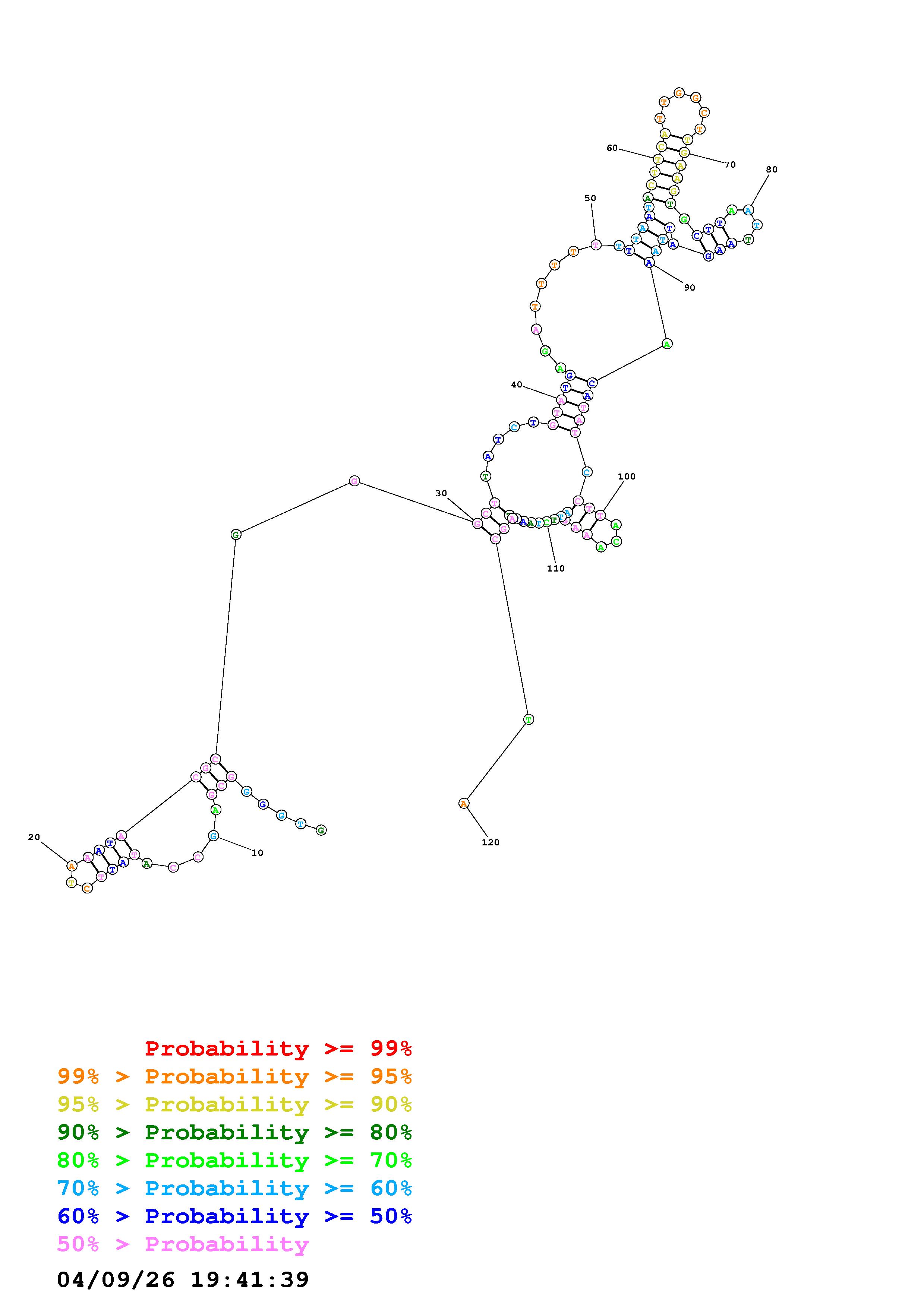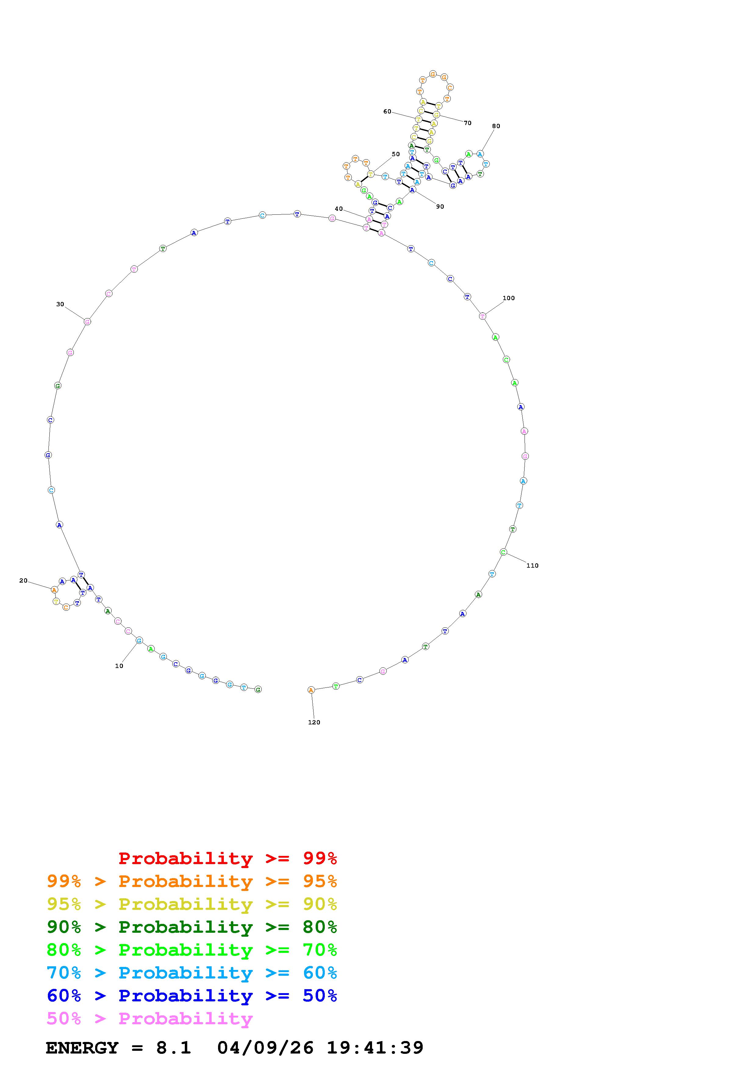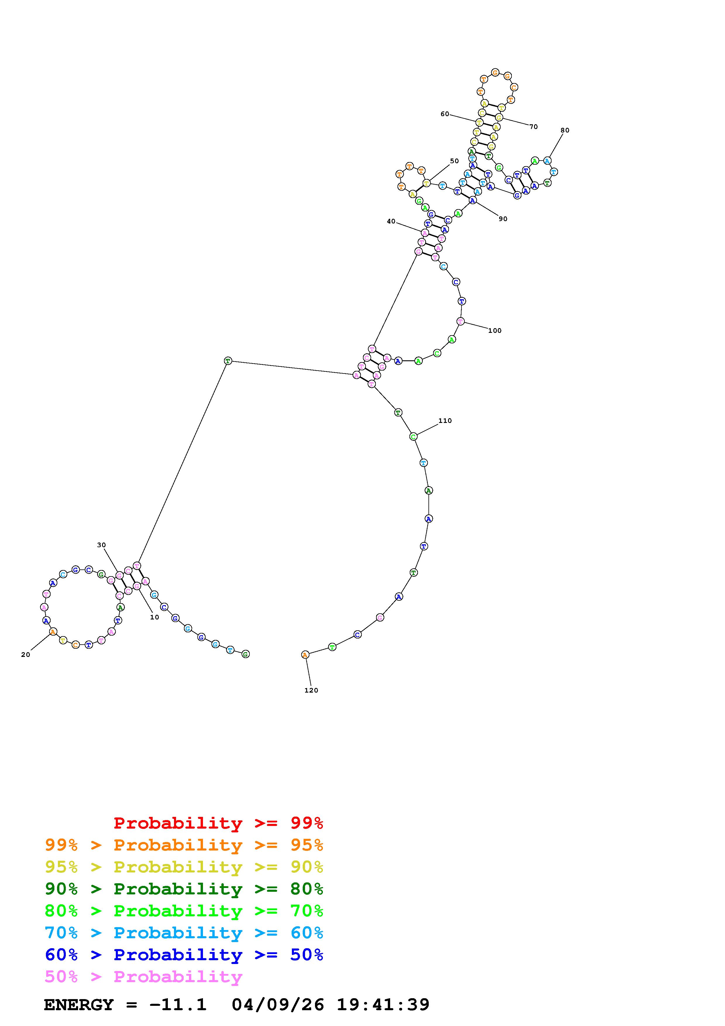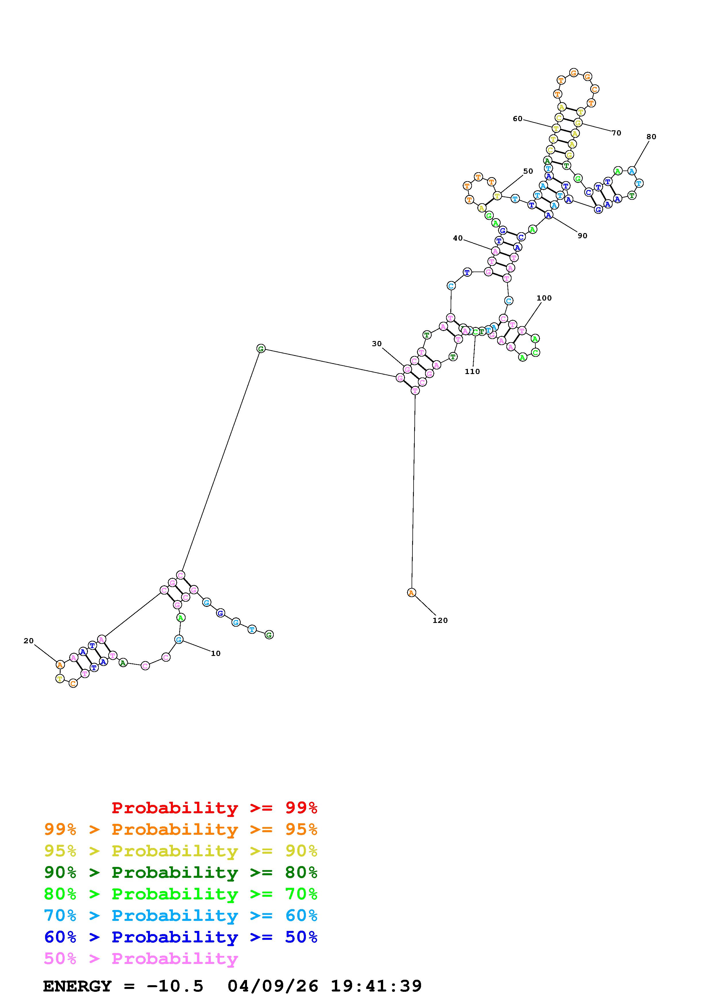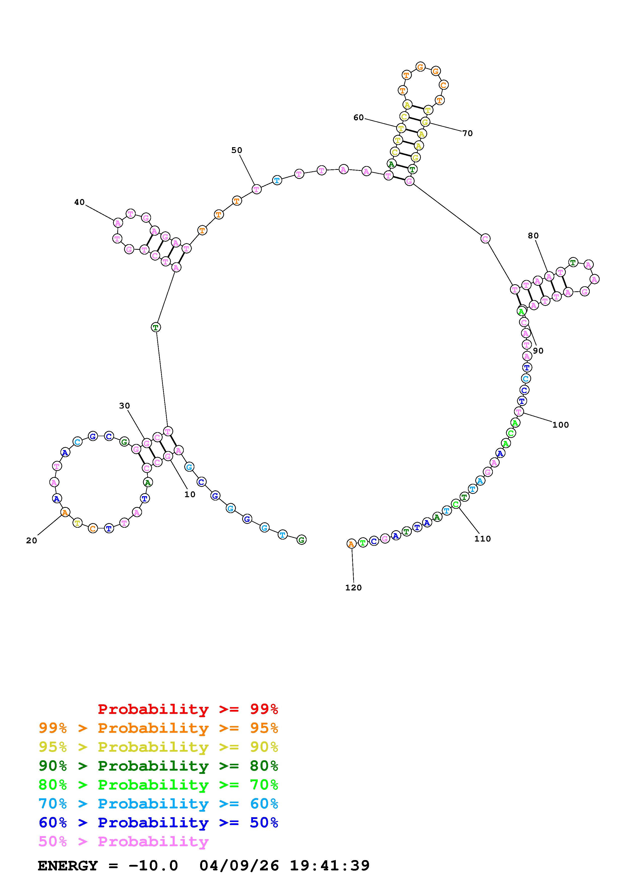 Fold Predict1.fasta Fold.ct --DNA --loop 30 --maximum 20 --percent 10 --temperature 310.15 --window 3
