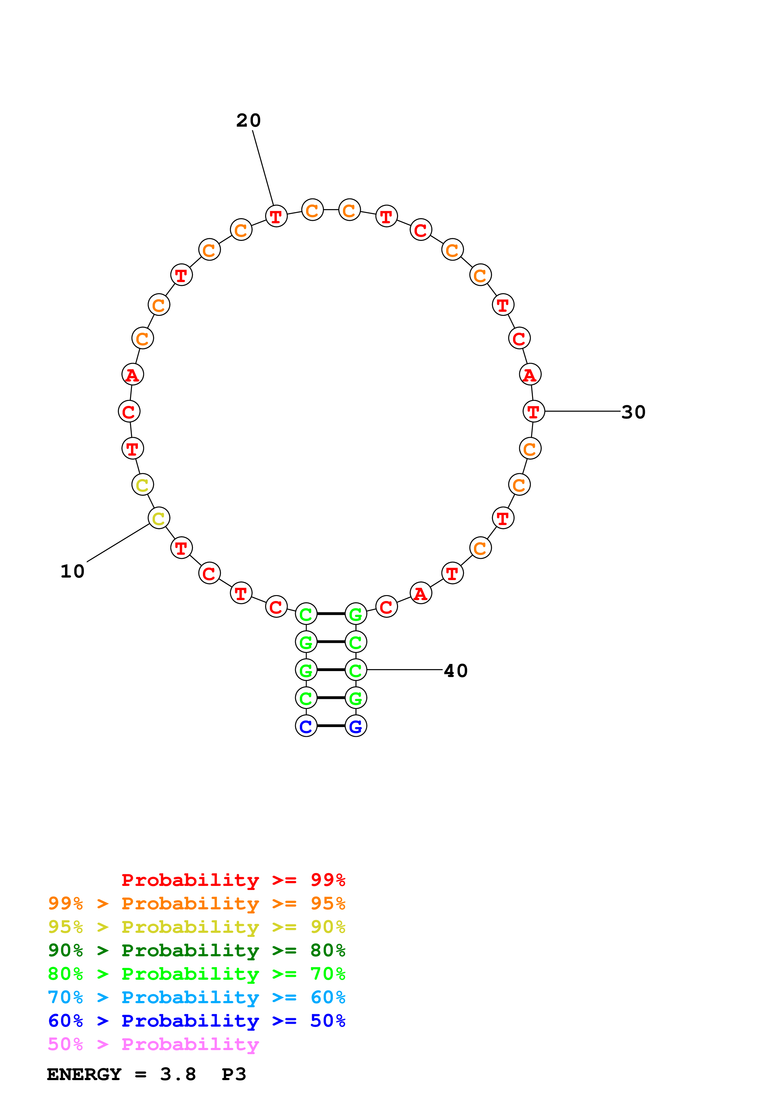 Fold Predict1.fasta Fold.ct --DNA --loop 30 --maximum 20 --percent 10 --temperature 310.15 --window 3