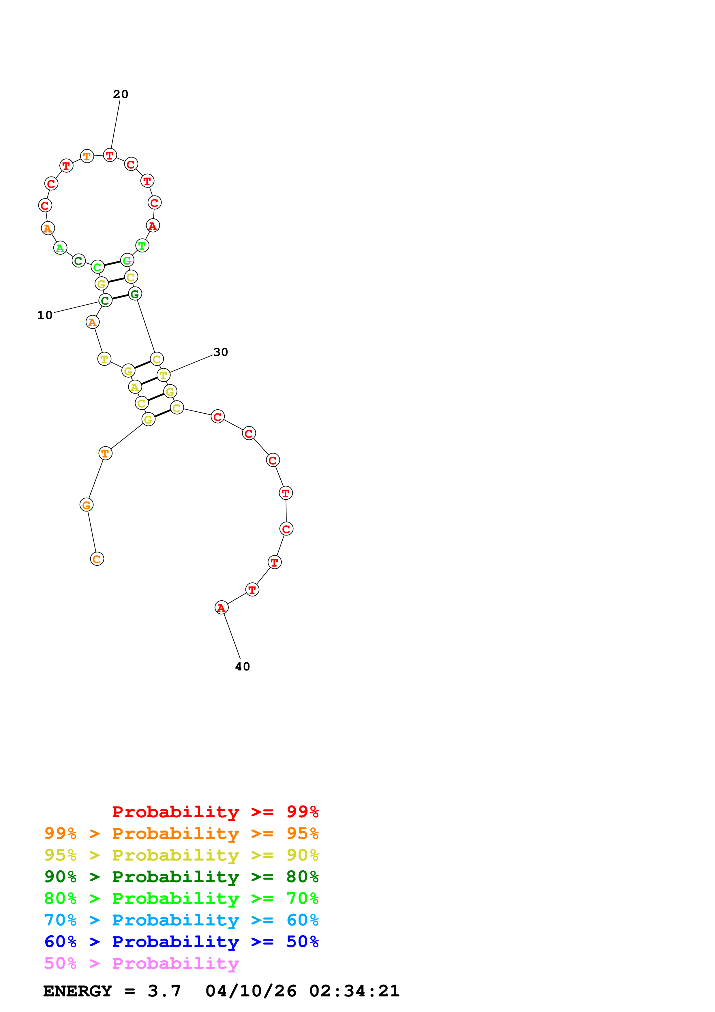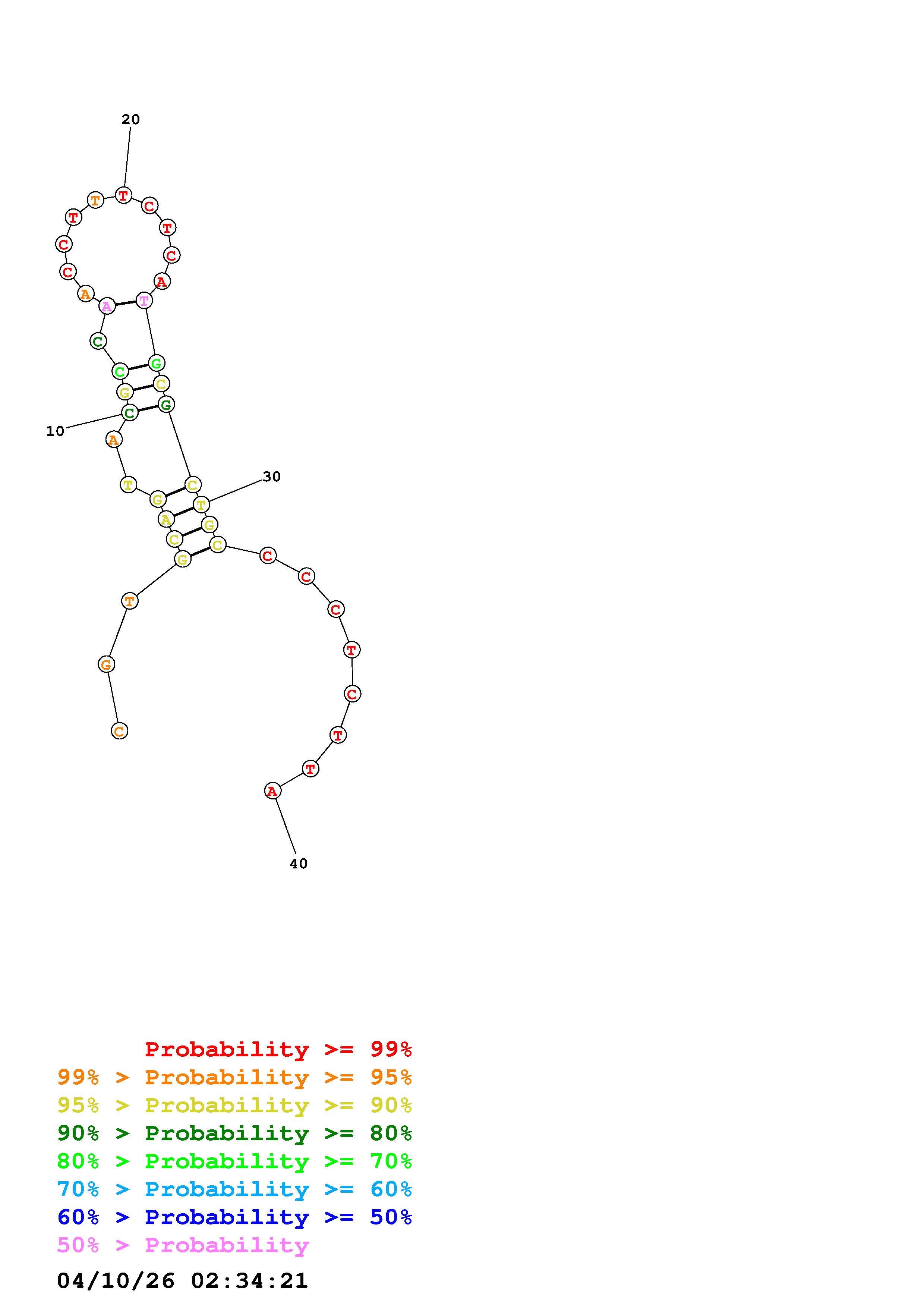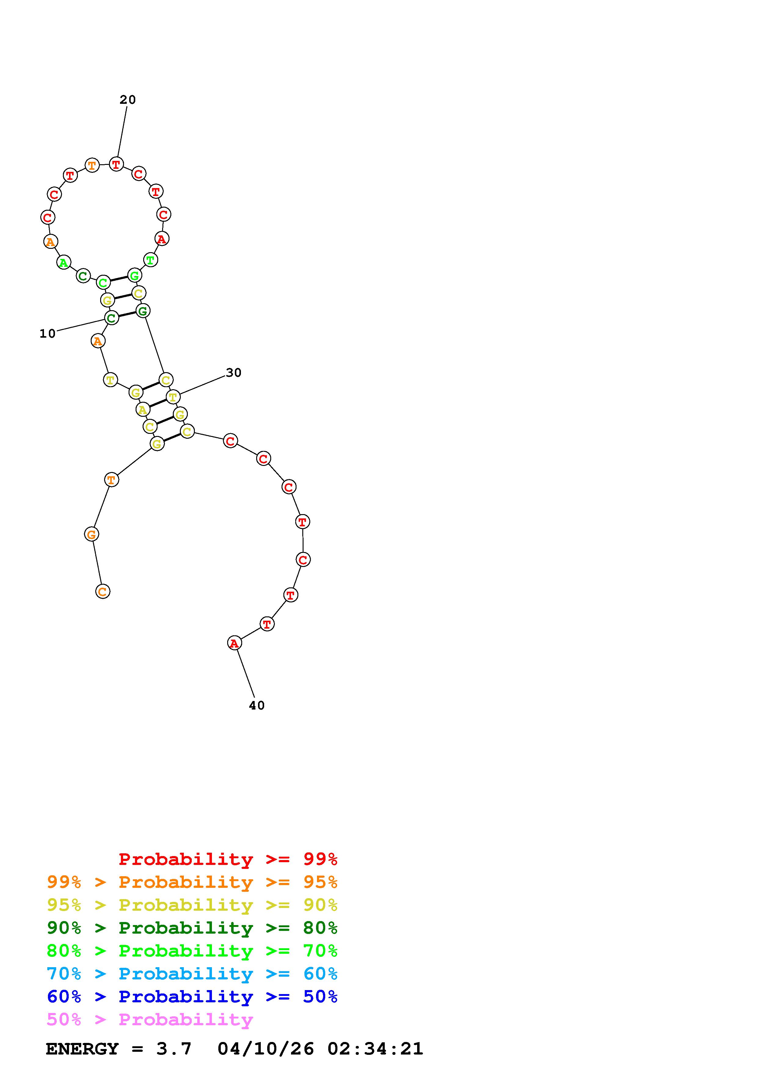 Fold Predict1.fasta Fold.ct --DNA --loop 30 --maximum 20 --percent 10 --temperature 310.15 --window 3