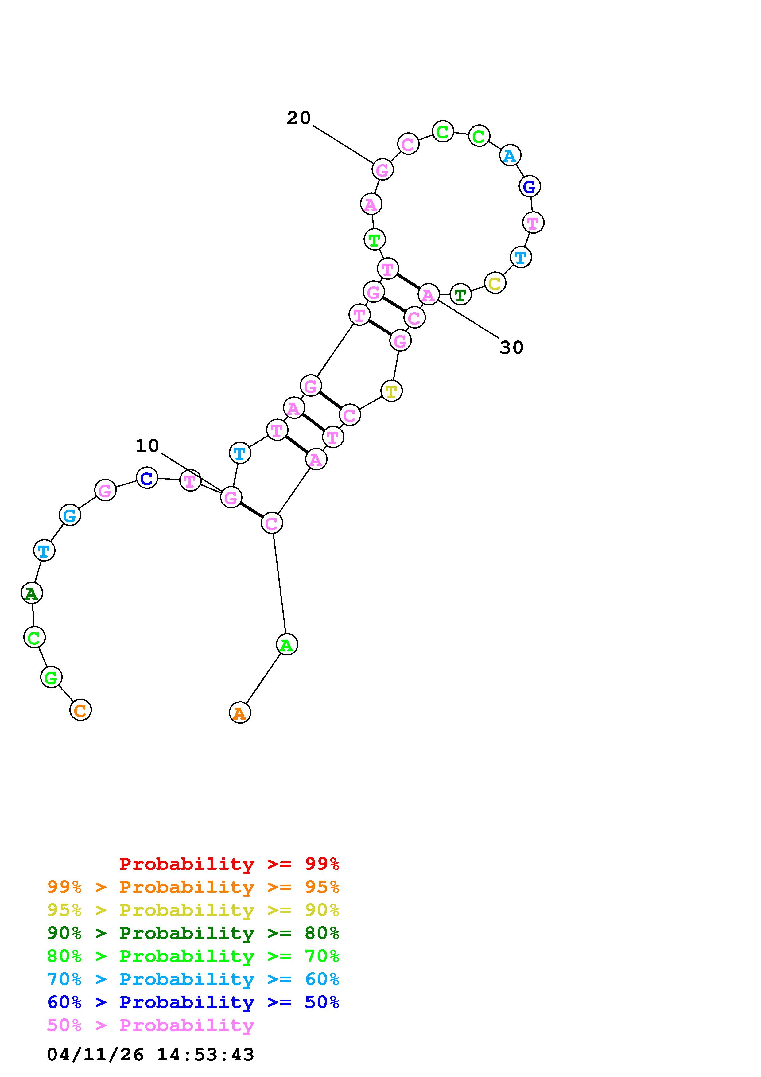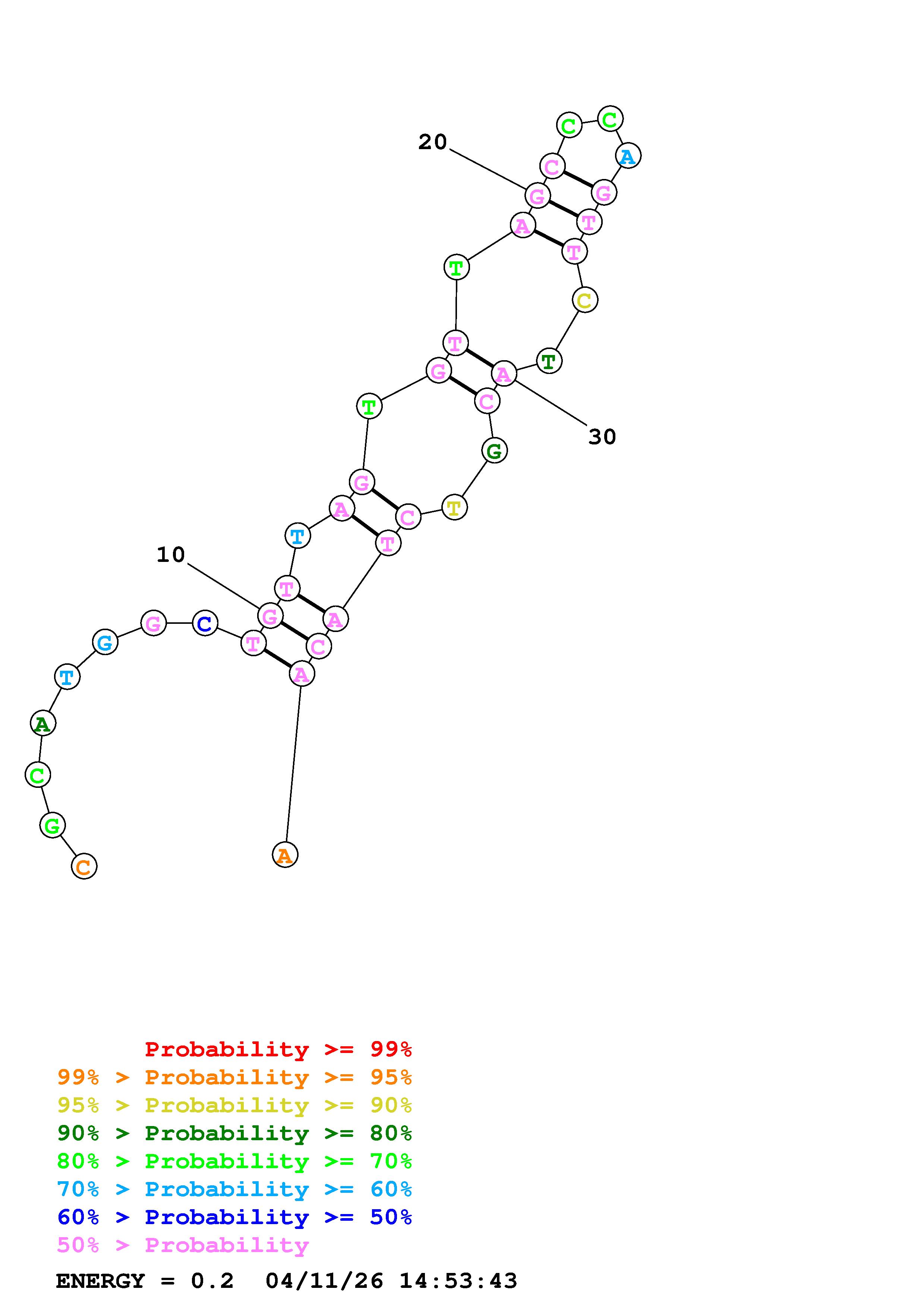 Fold Predict1.fasta Fold.ct --DNA --loop 30 --maximum 20 --percent 10 --temperature 343 --window 3