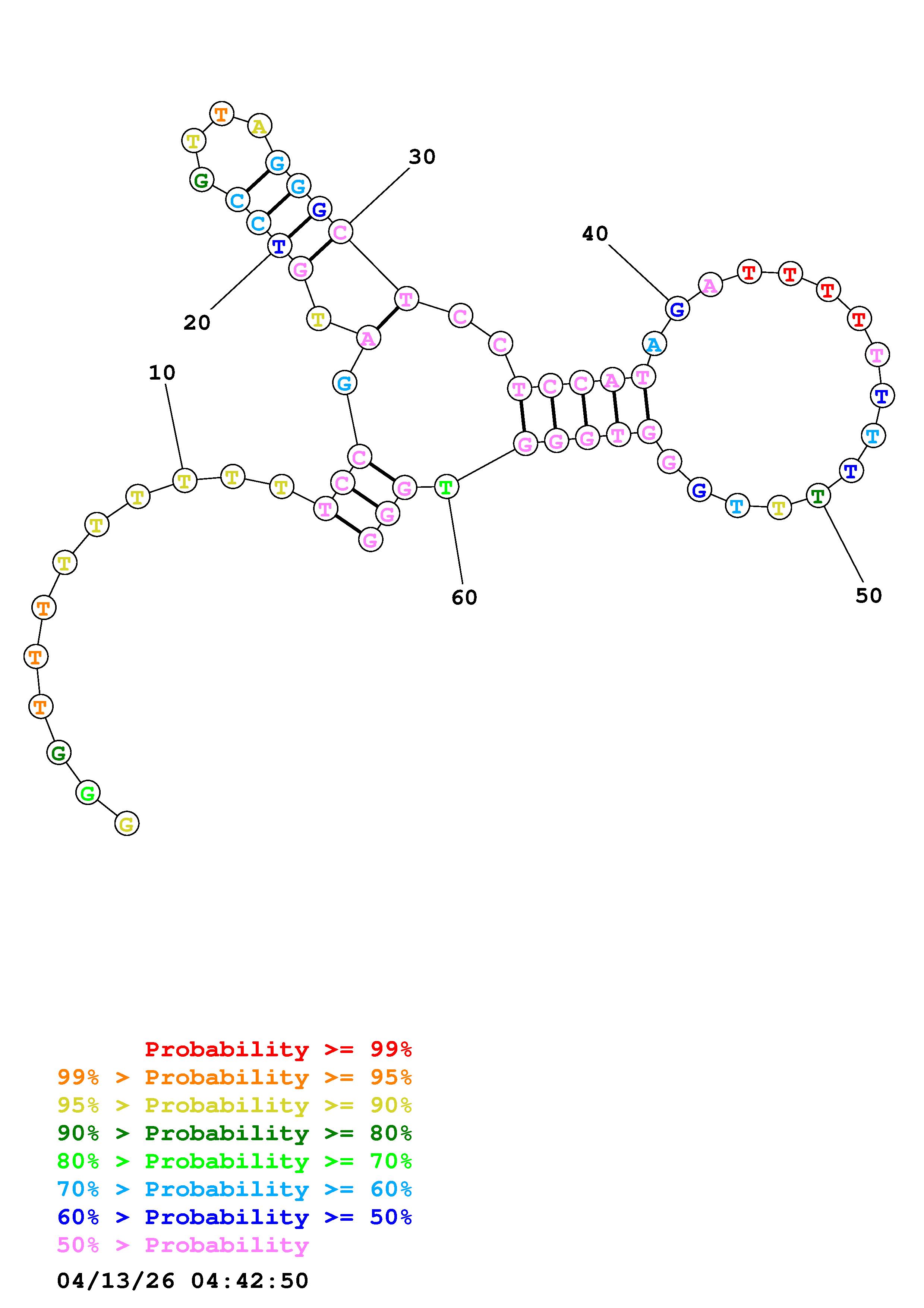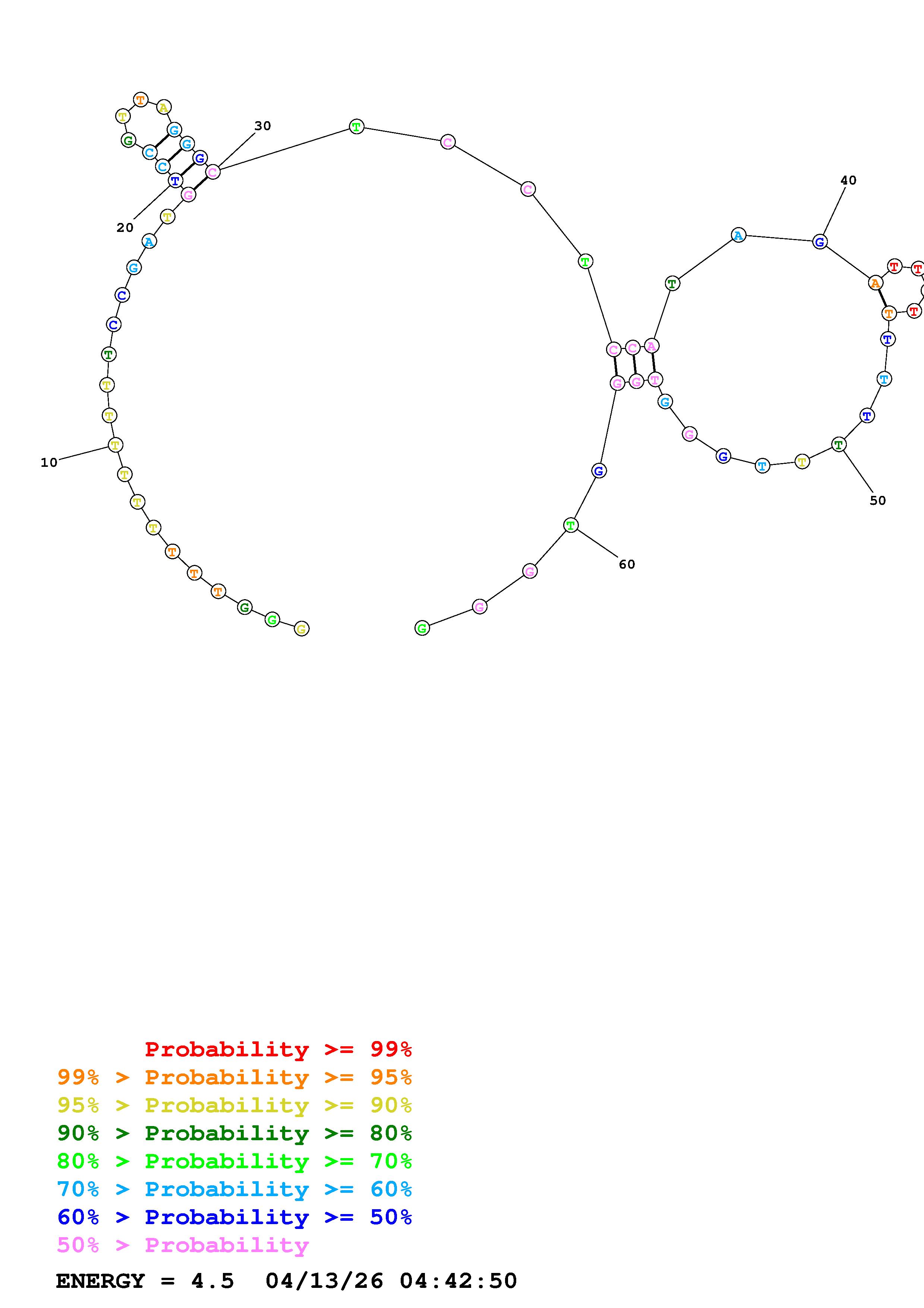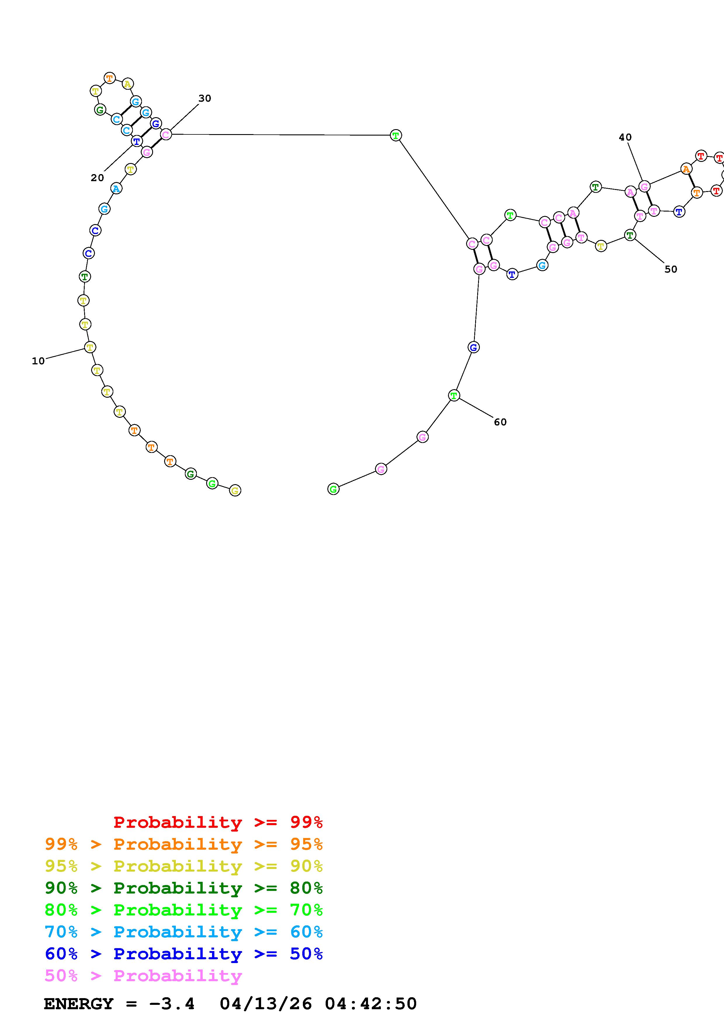 Fold Predict1.fasta Fold.ct --DNA --loop 30 --maximum 20 --percent 10 --temperature 322 --window 3