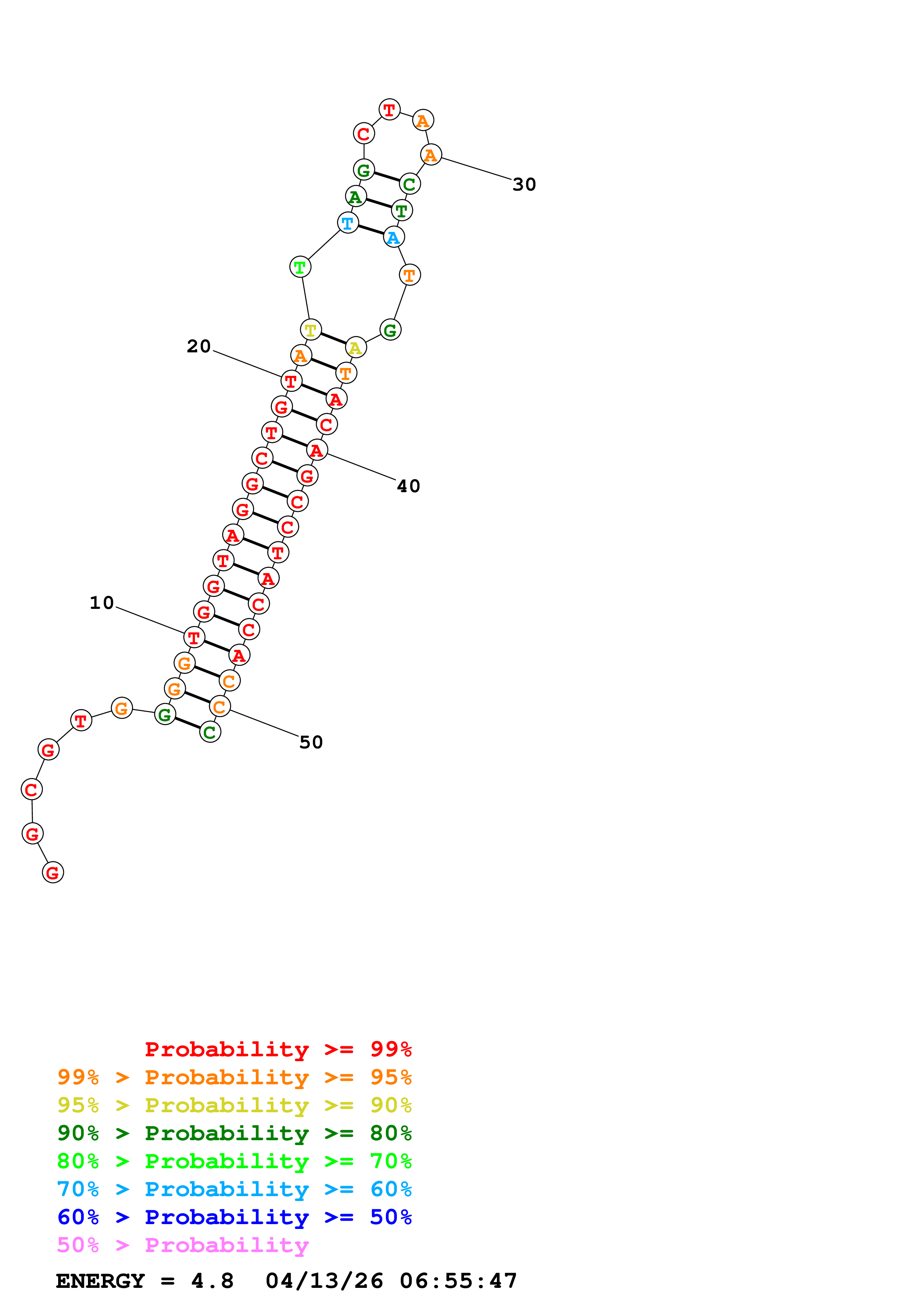 Fold Predict1.fasta Fold.ct --DNA --loop 30 --maximum 20 --percent 10 --temperature 310.15 --window 3