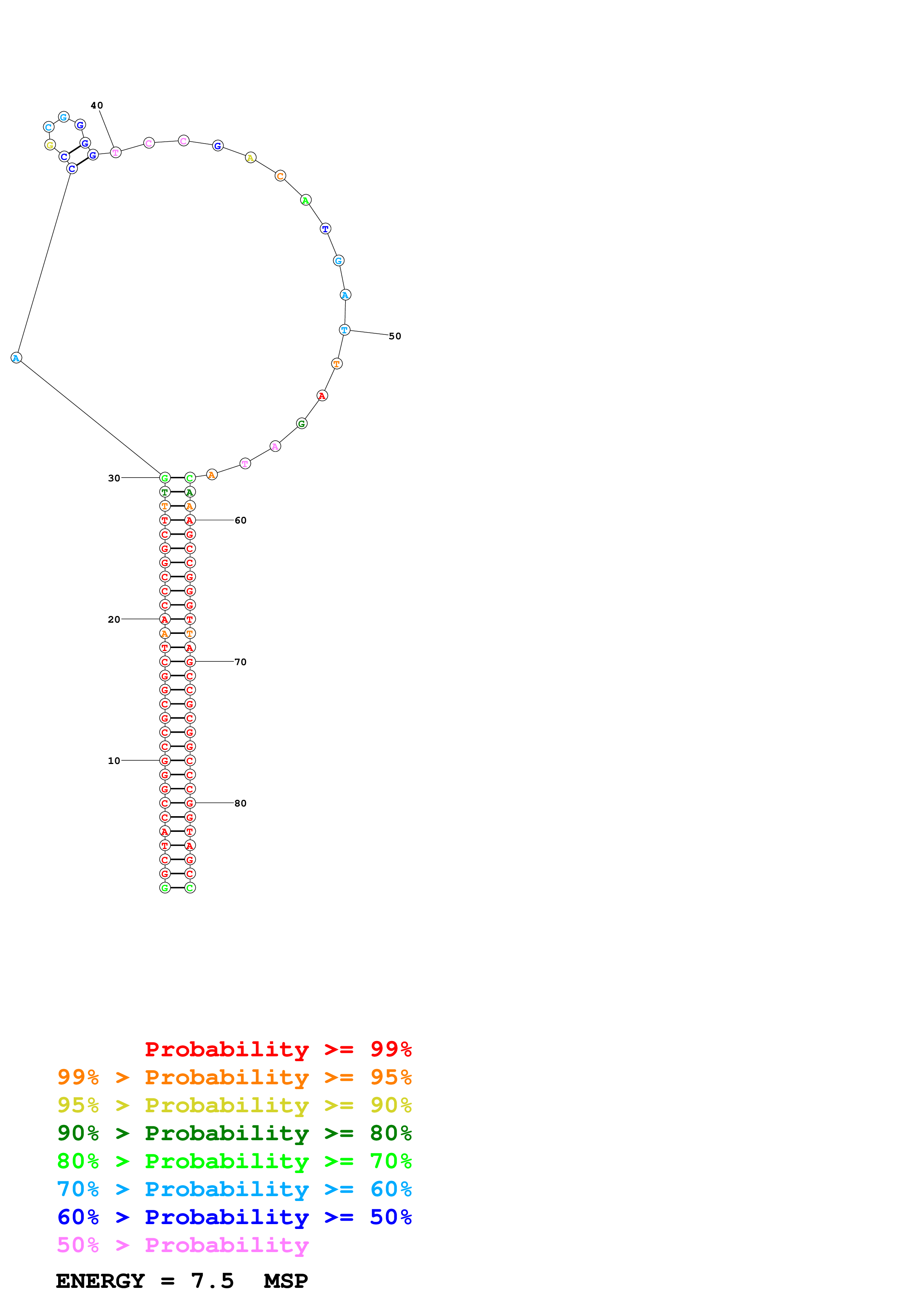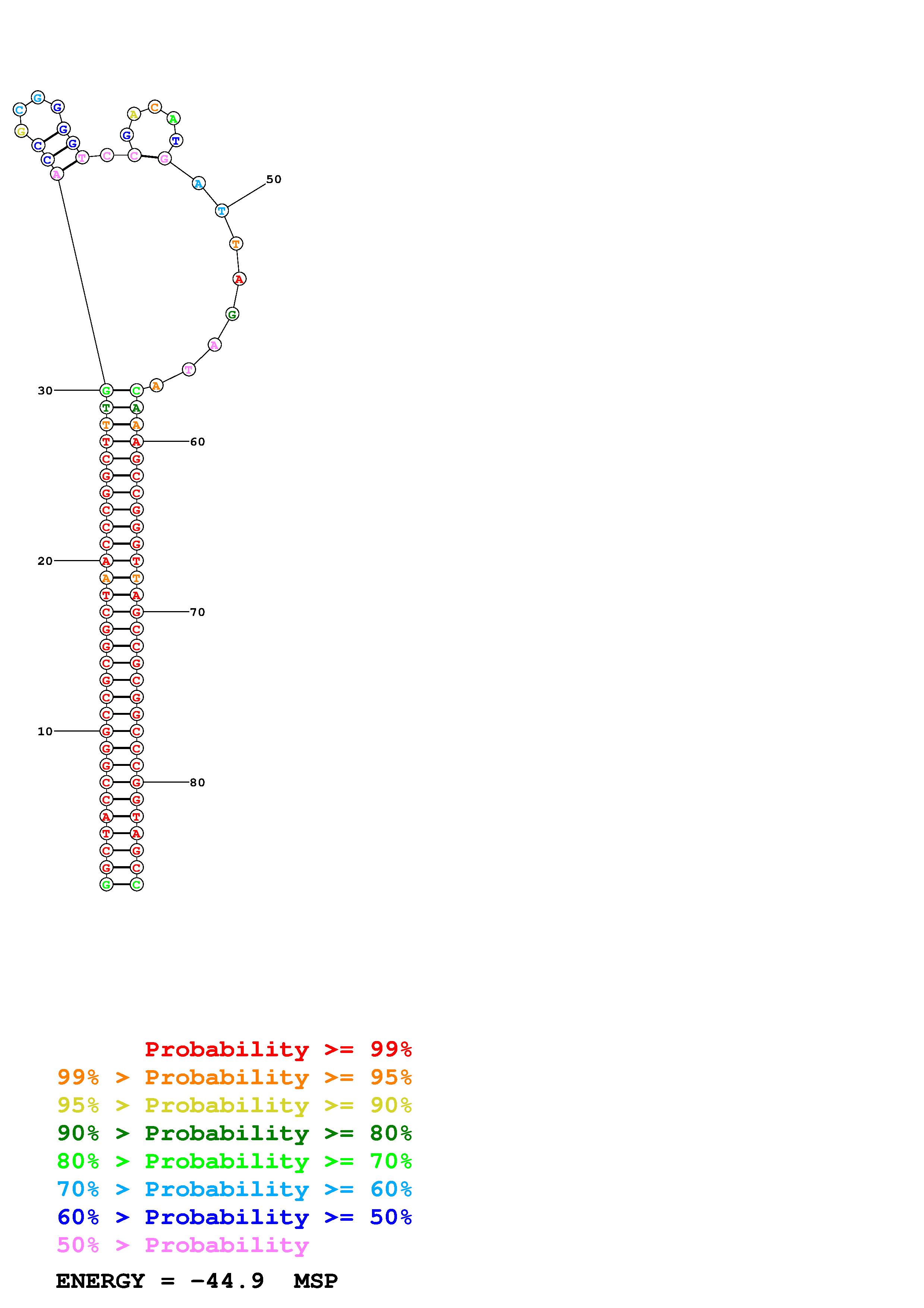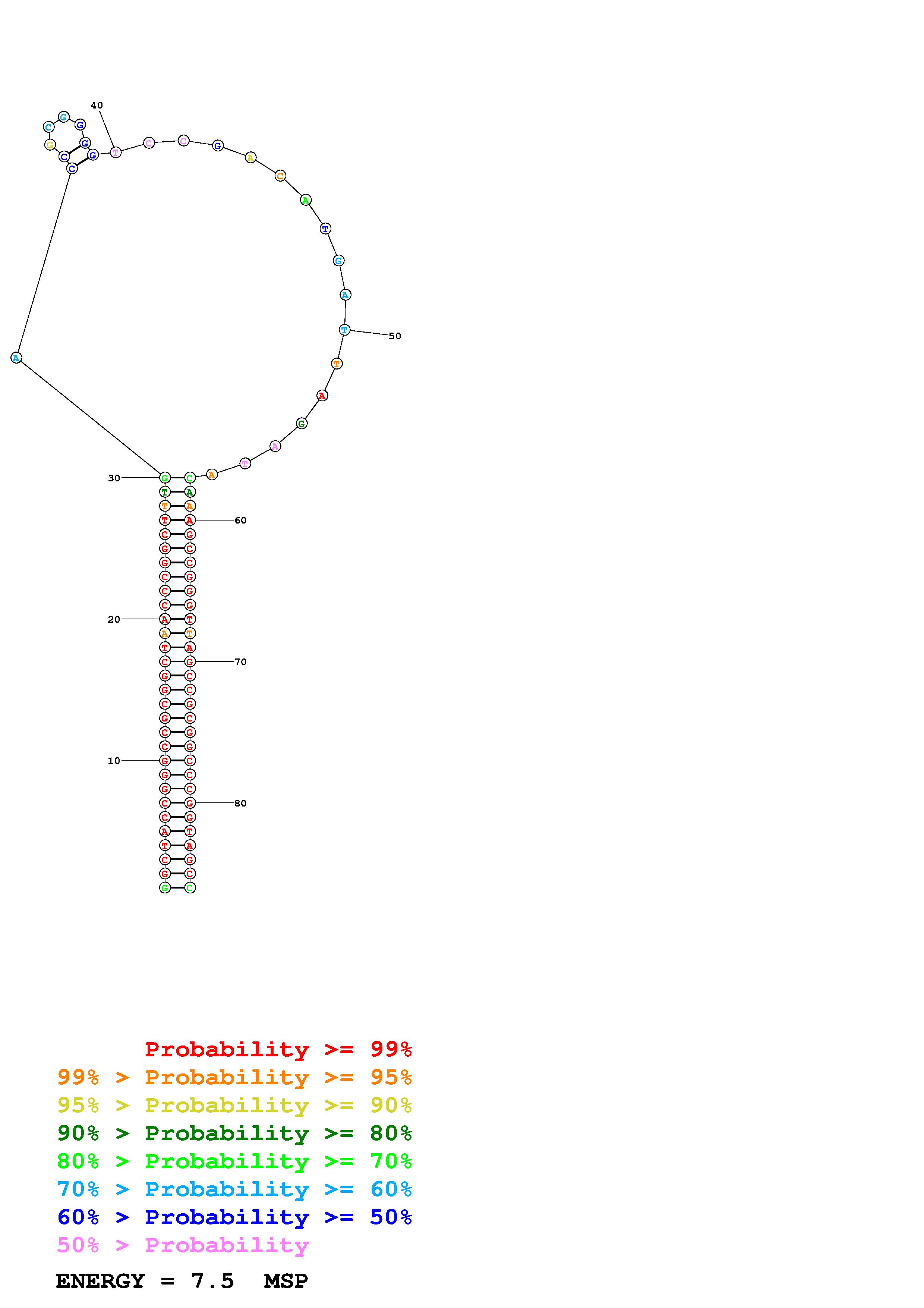Fold Predict1.fasta Fold.ct --DNA --loop 30 --maximum 20 --percent 10 --temperature 310.15 --window 3