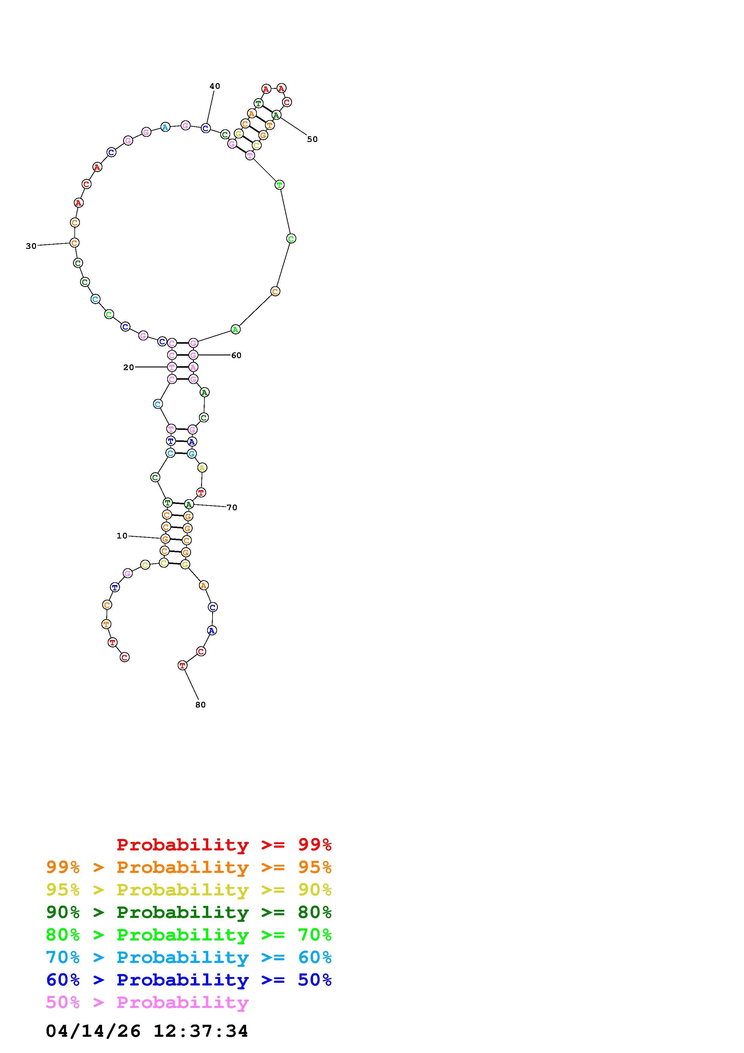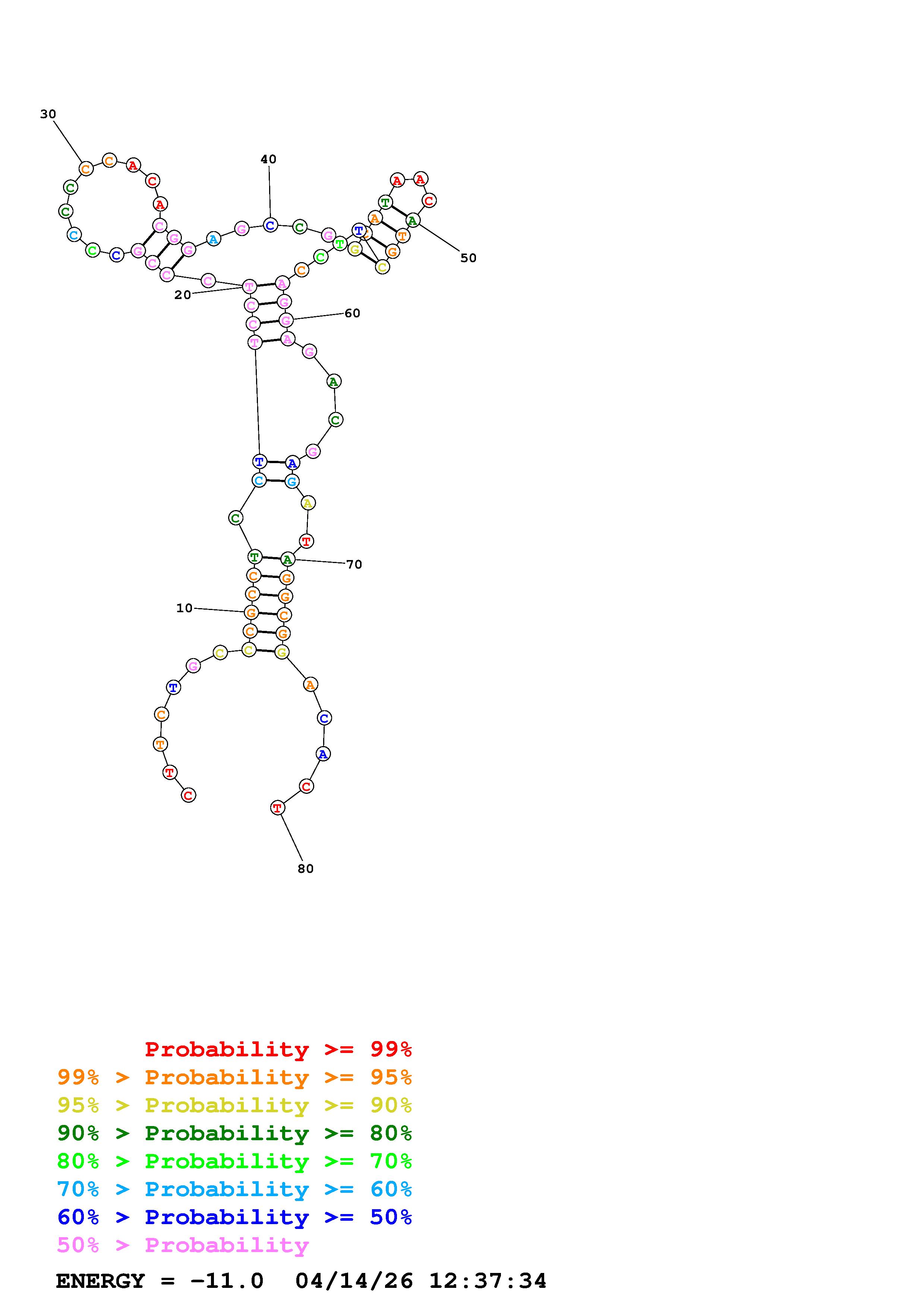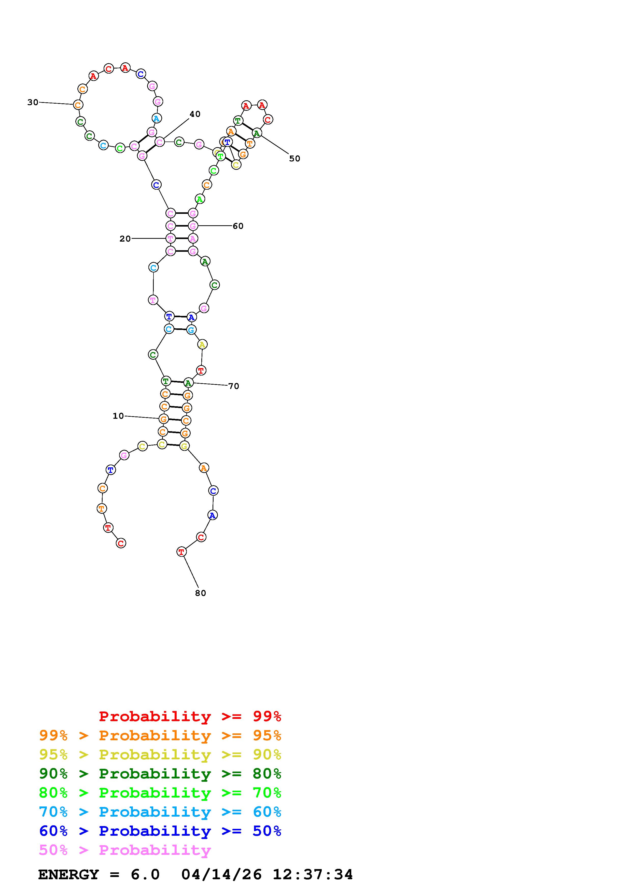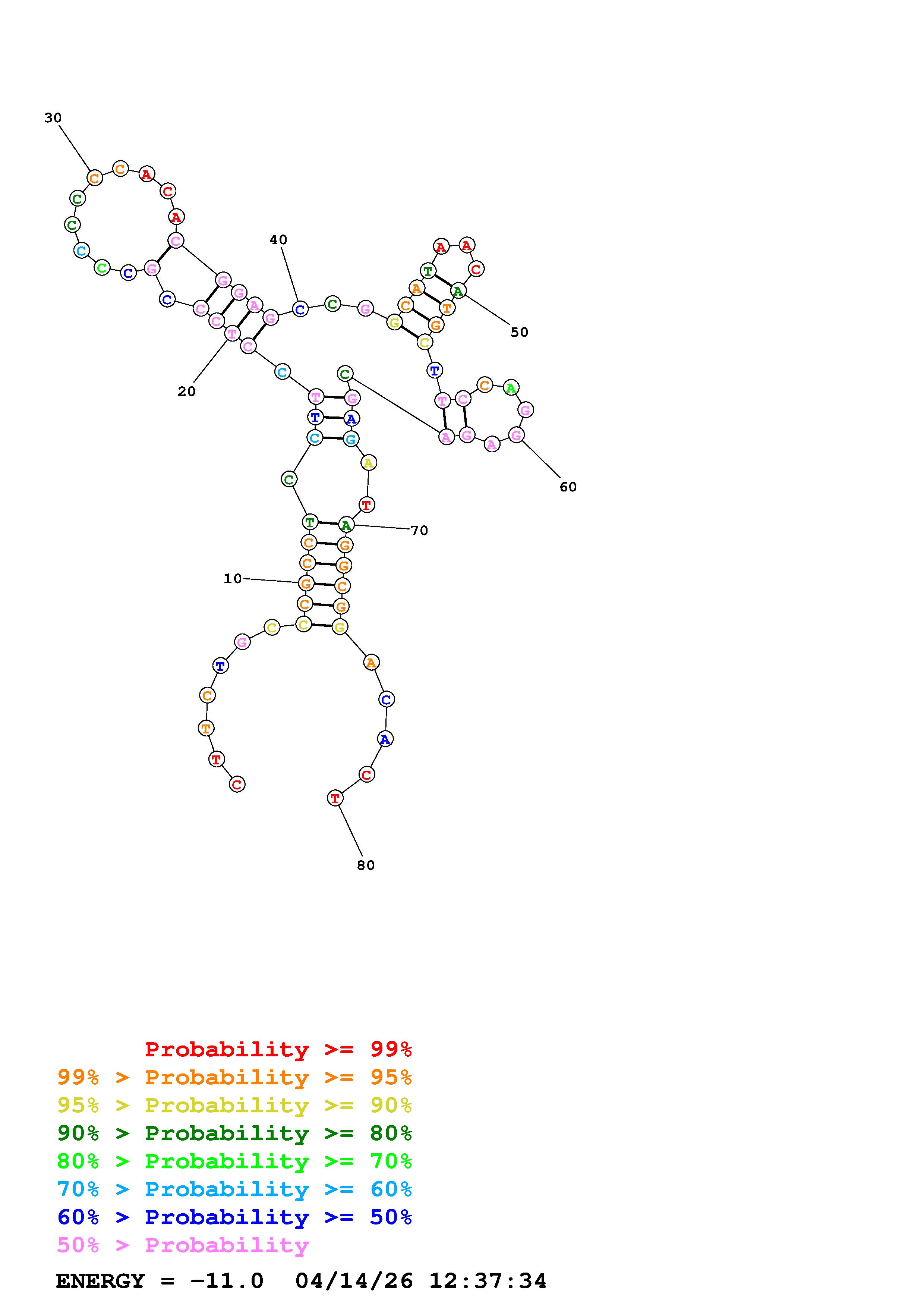 Fold Predict1.fasta Fold.ct --DNA --loop 30 --maximum 20 --percent 10 --temperature 310.15 --window 3