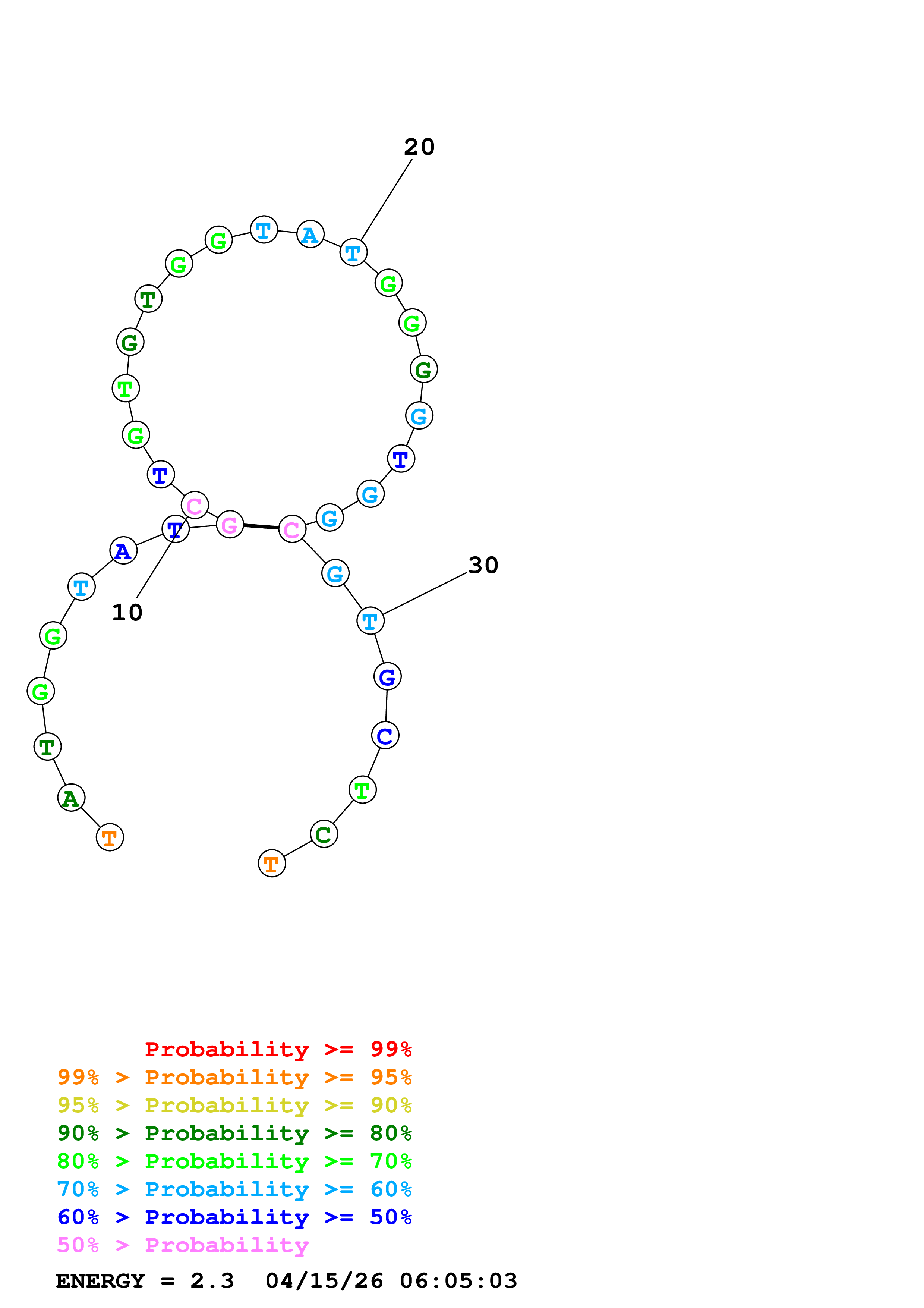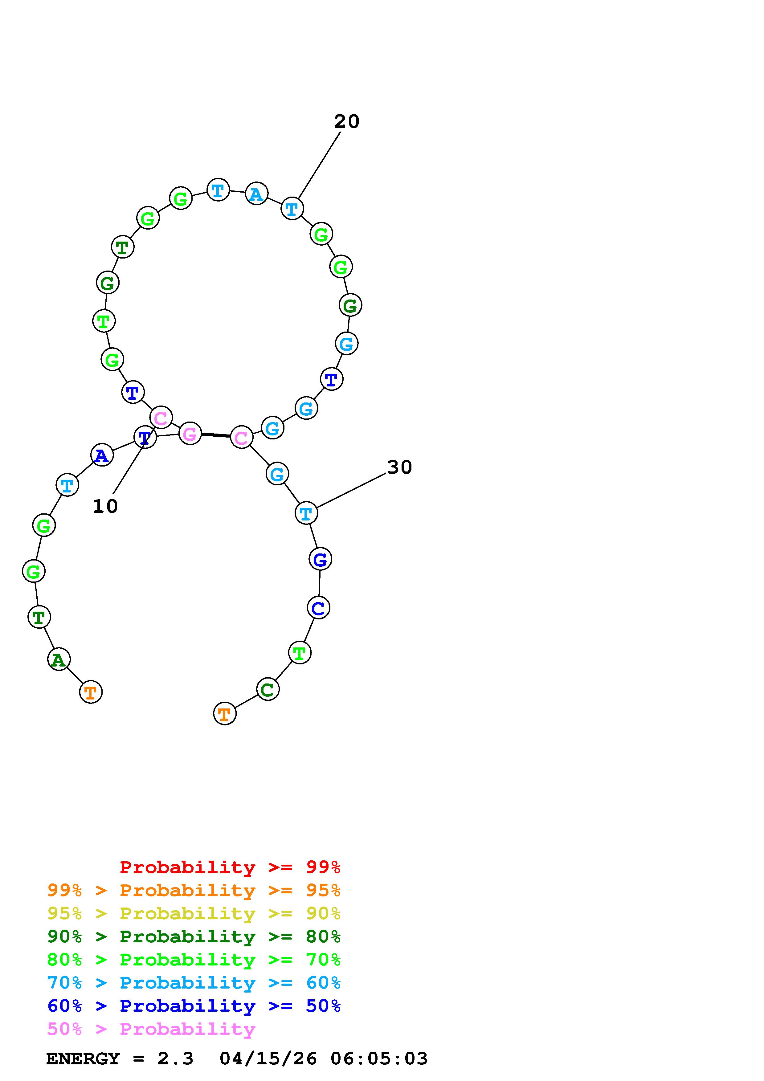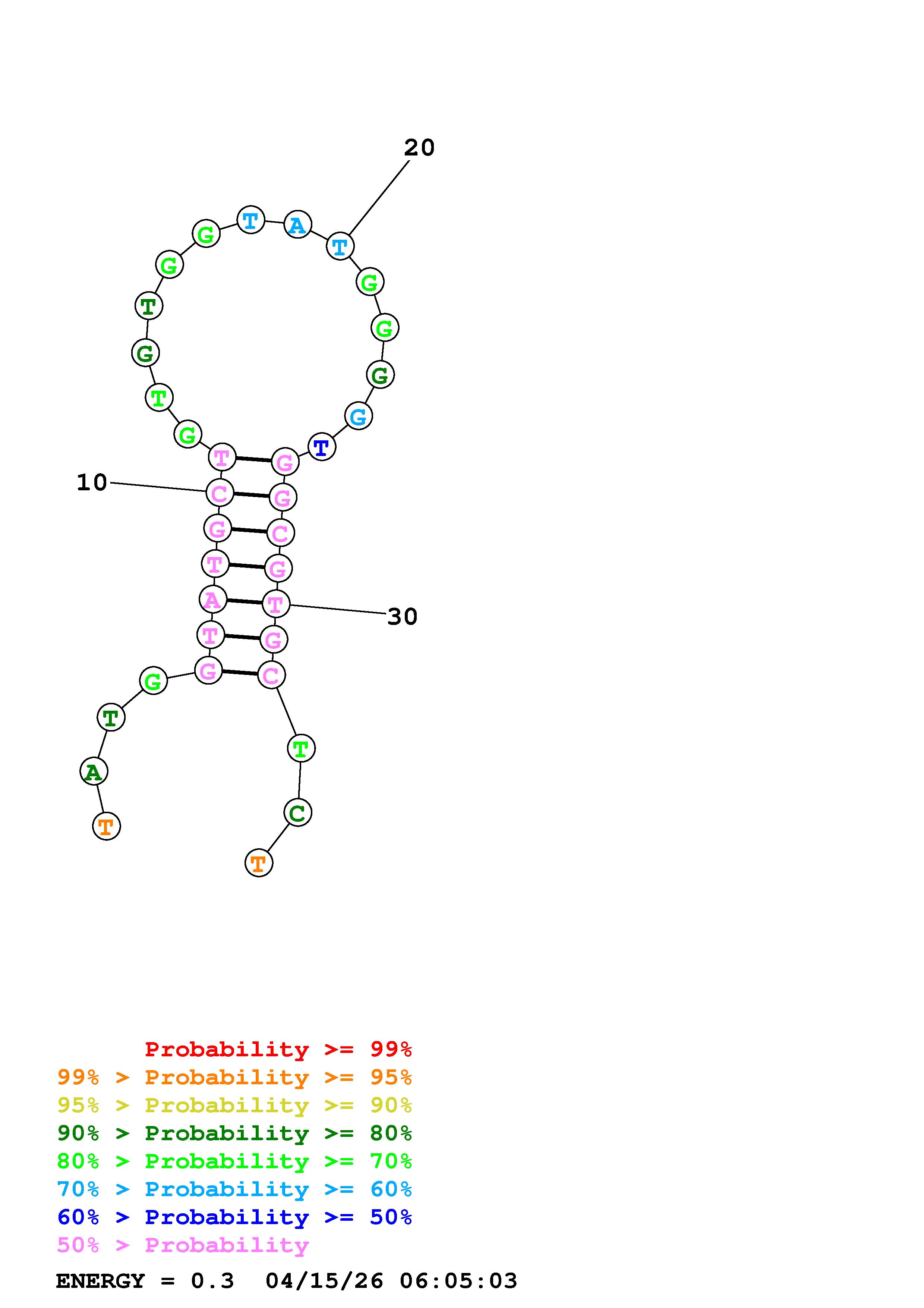 Fold Predict1.fasta Fold.ct --DNA --loop 30 --maximum 20 --percent 10 --temperature 310.15 --window 3