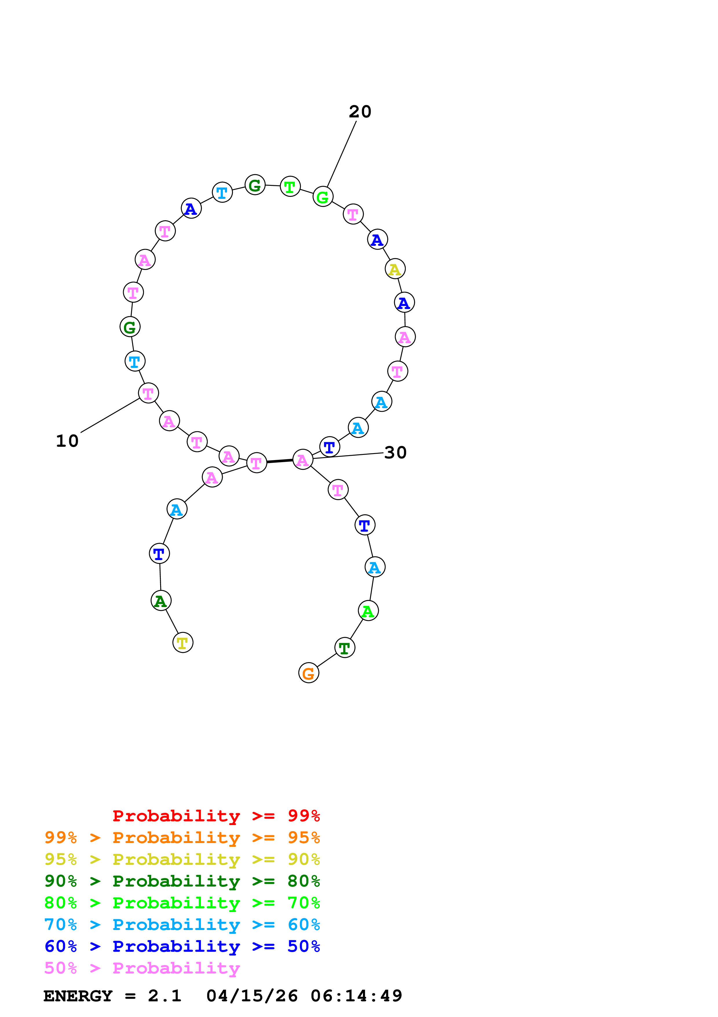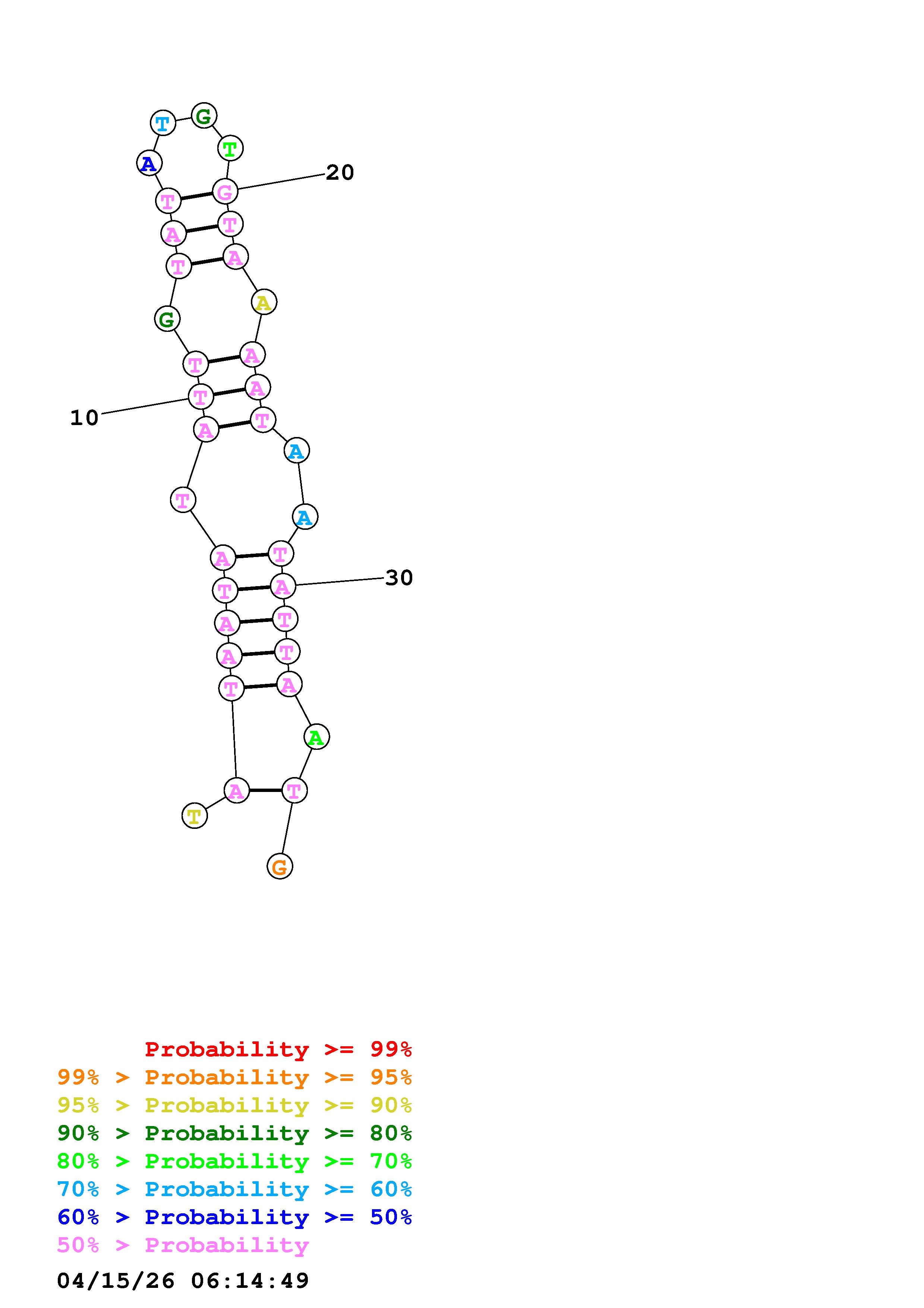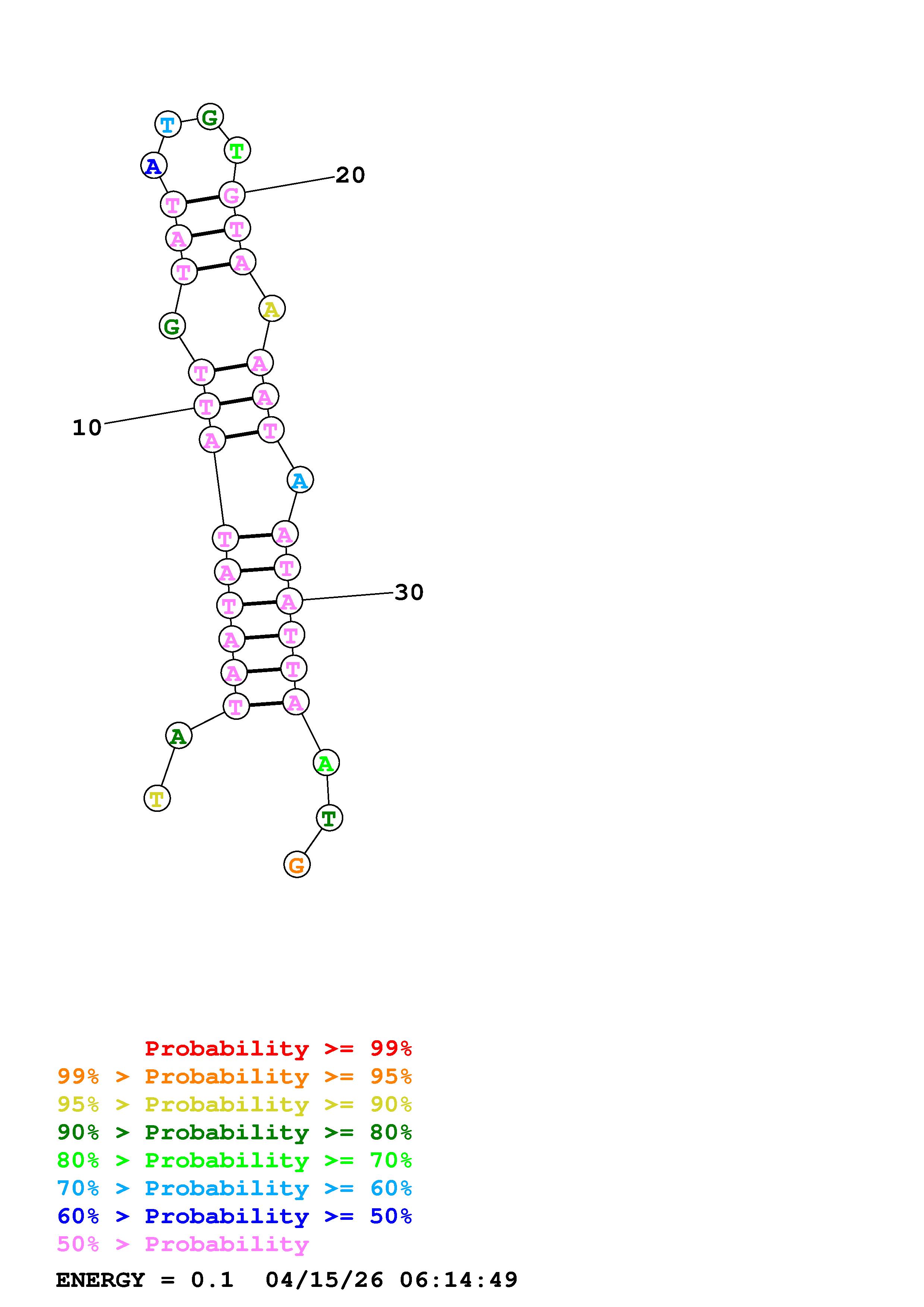 Fold Predict1.fasta Fold.ct --DNA --loop 30 --maximum 20 --percent 10 --temperature 325 --window 3