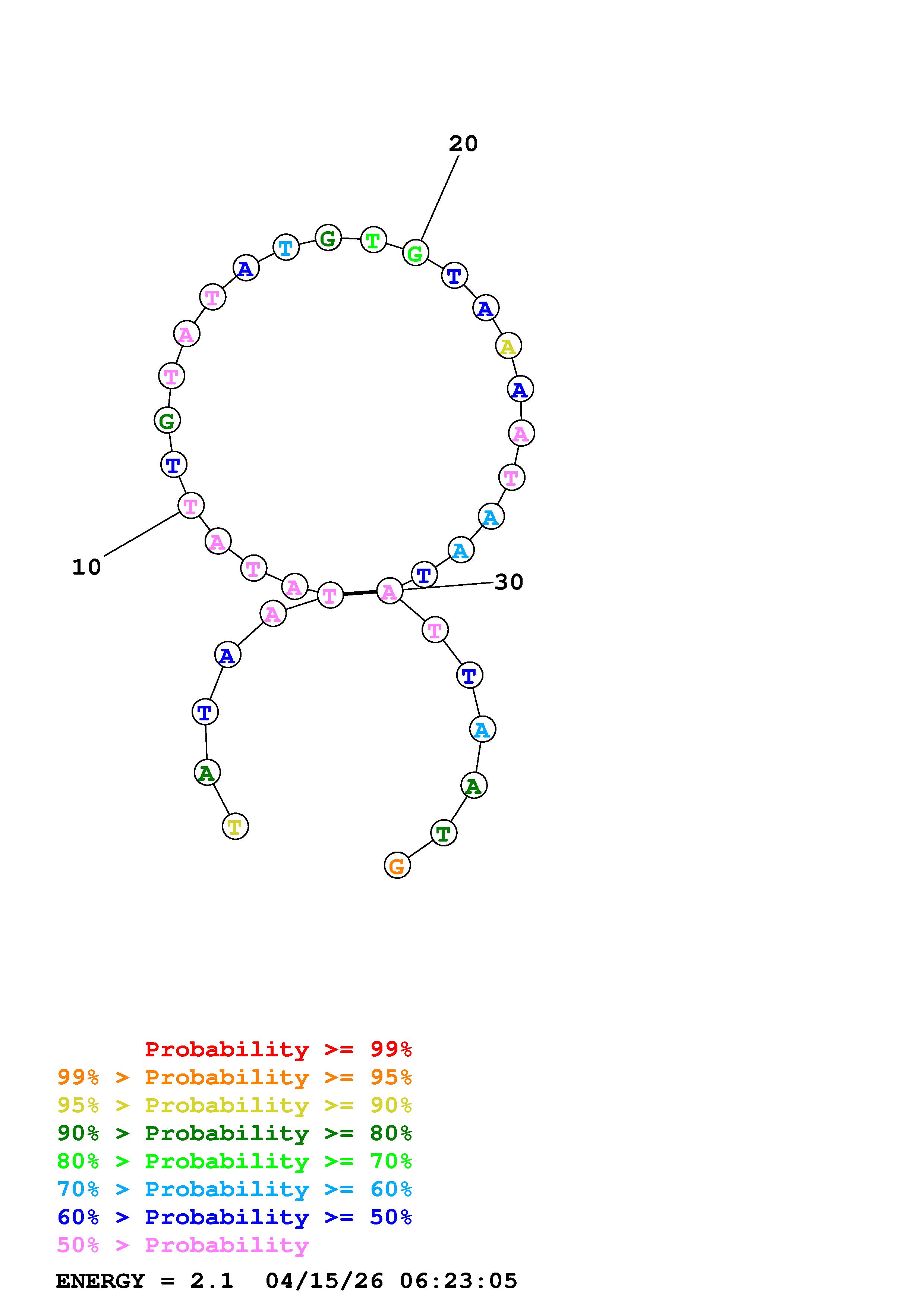 Fold Predict1.fasta Fold.ct --DNA --loop 30 --maximum 20 --percent 10 --temperature 320 --window 3
