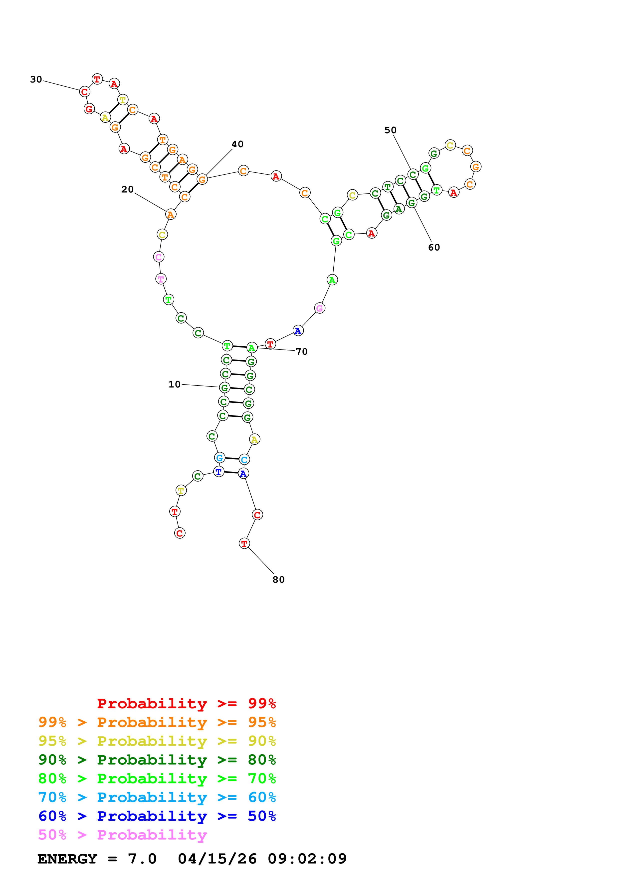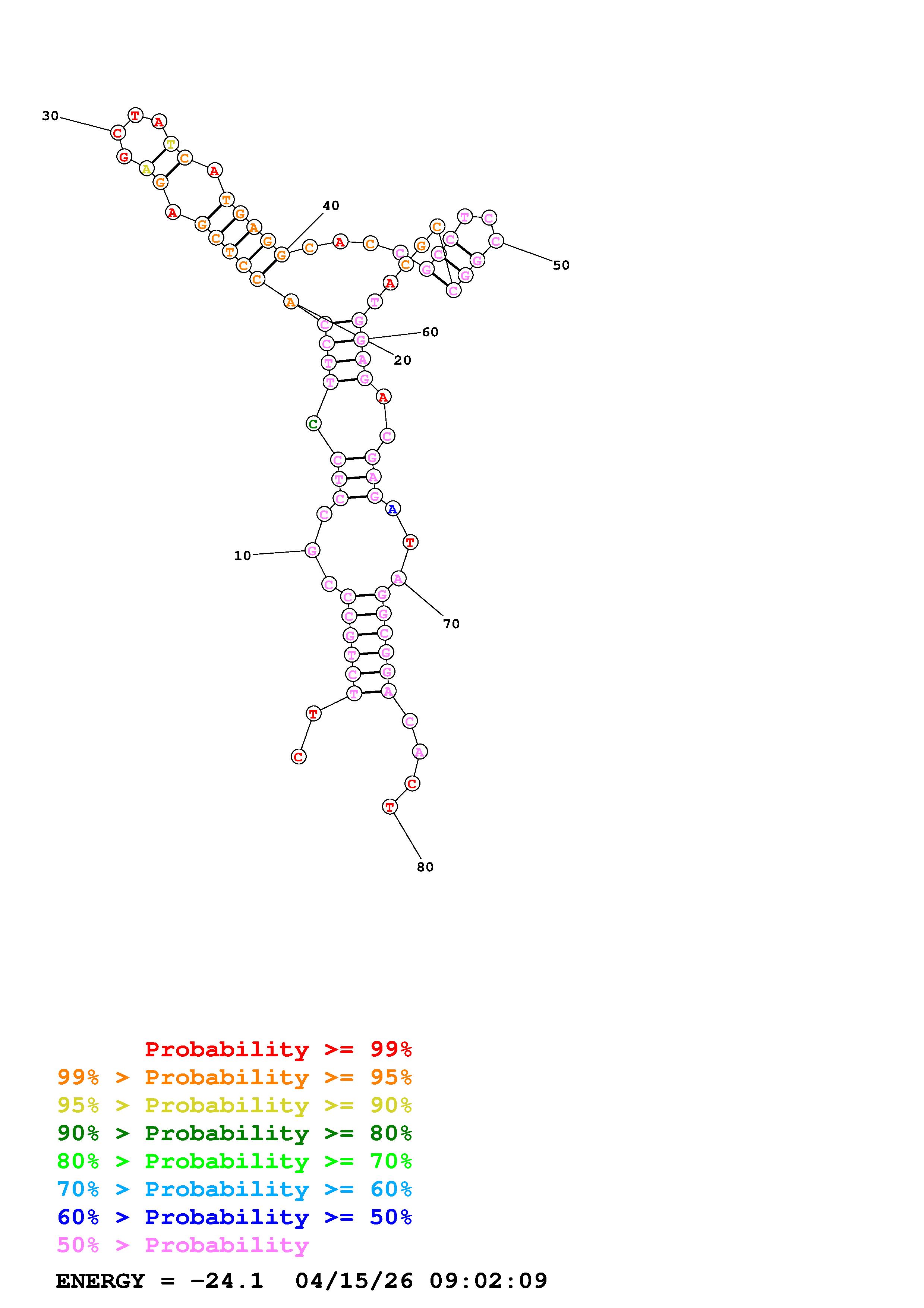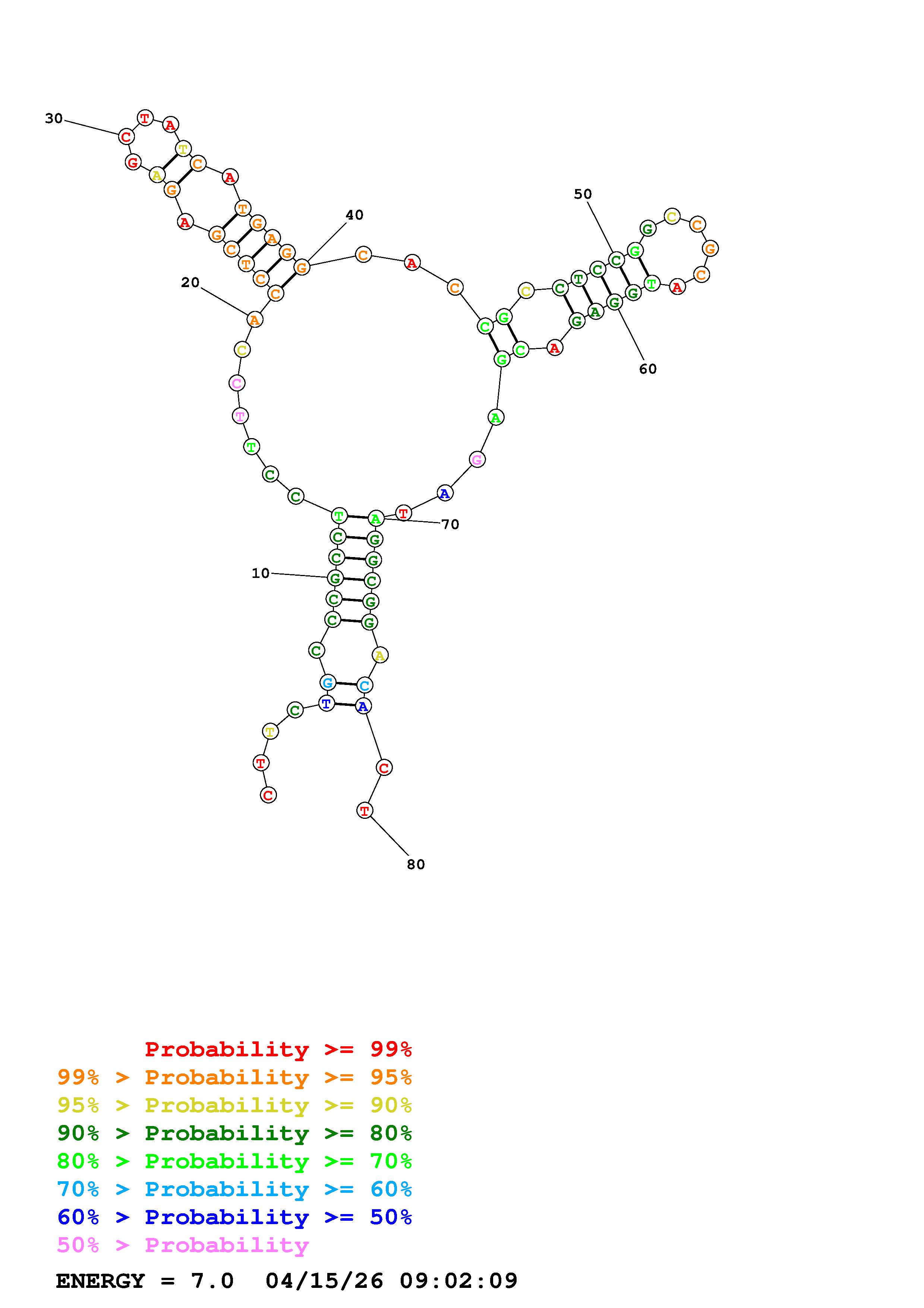 Fold Predict1.fasta Fold.ct --loop 30 --maximum 2 --percent 10 --temperature 310.15 --window 3