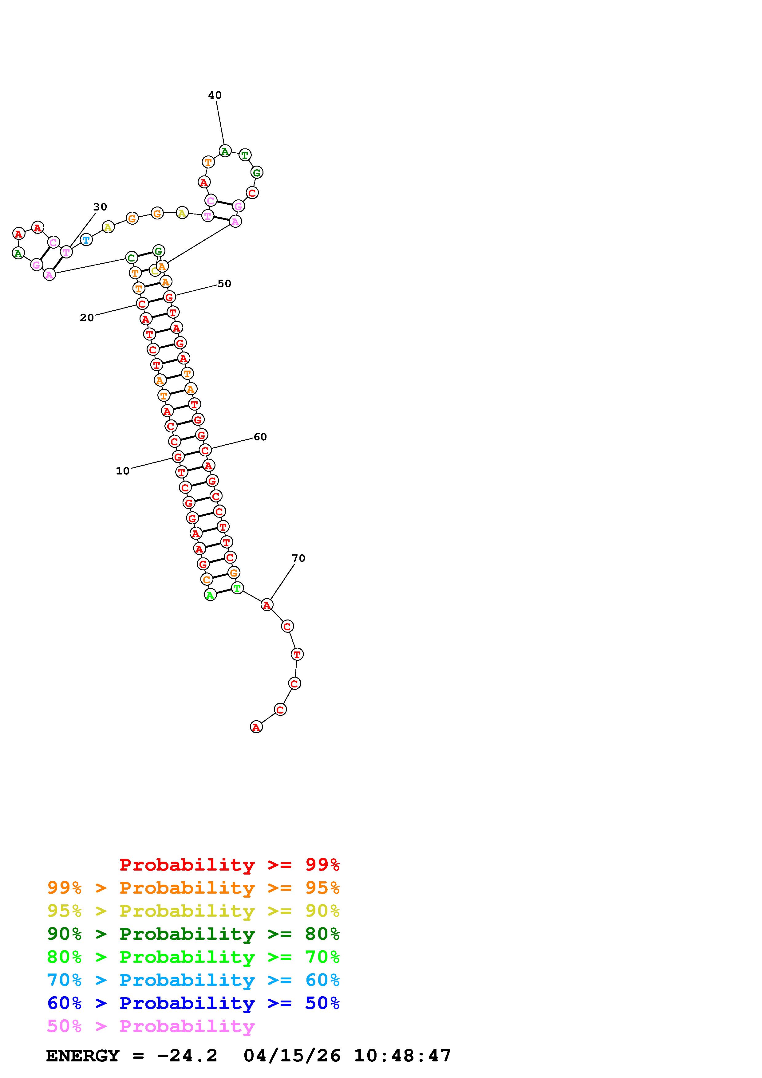 Fold Predict1.fasta Fold.ct --DNA --loop 30 --maximum 20 --percent 10 --temperature 310.15 --window 3