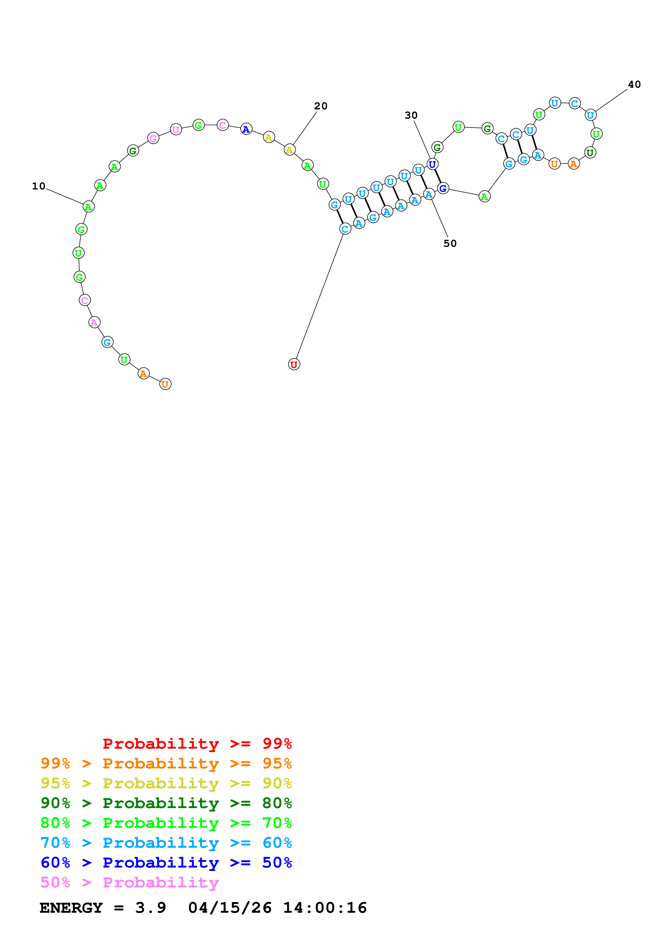 (Generate a structure or structures composed of highly probable base pairs. This is an alternative method for structure prediction that may have higher fidelity in structure prediction.)
