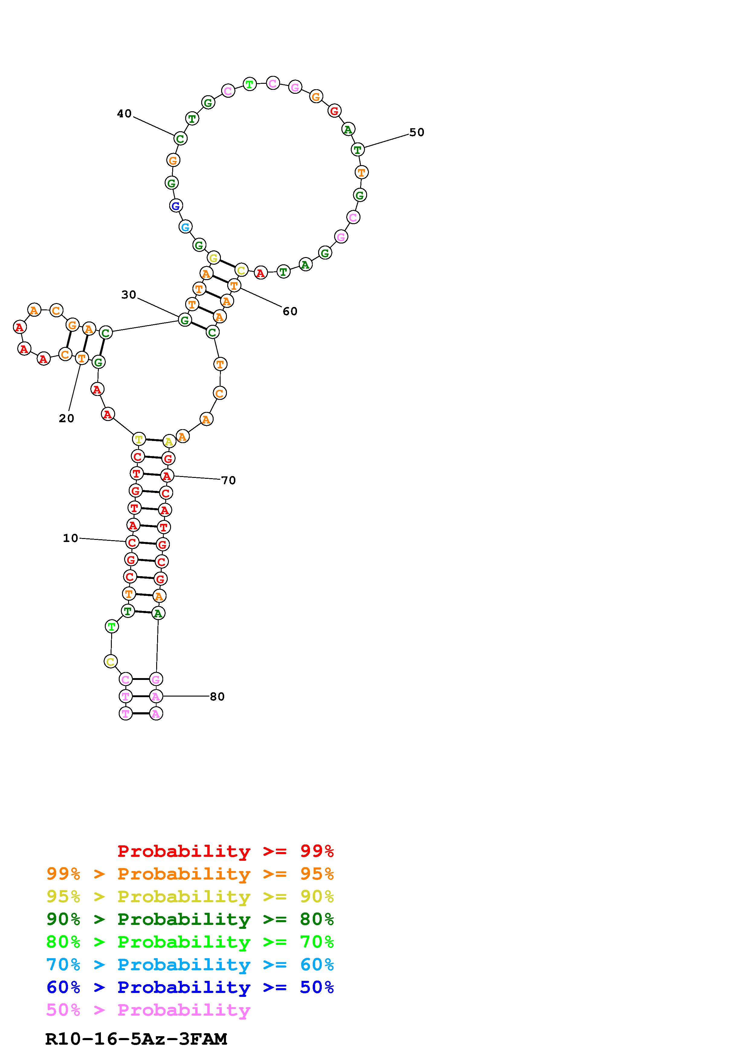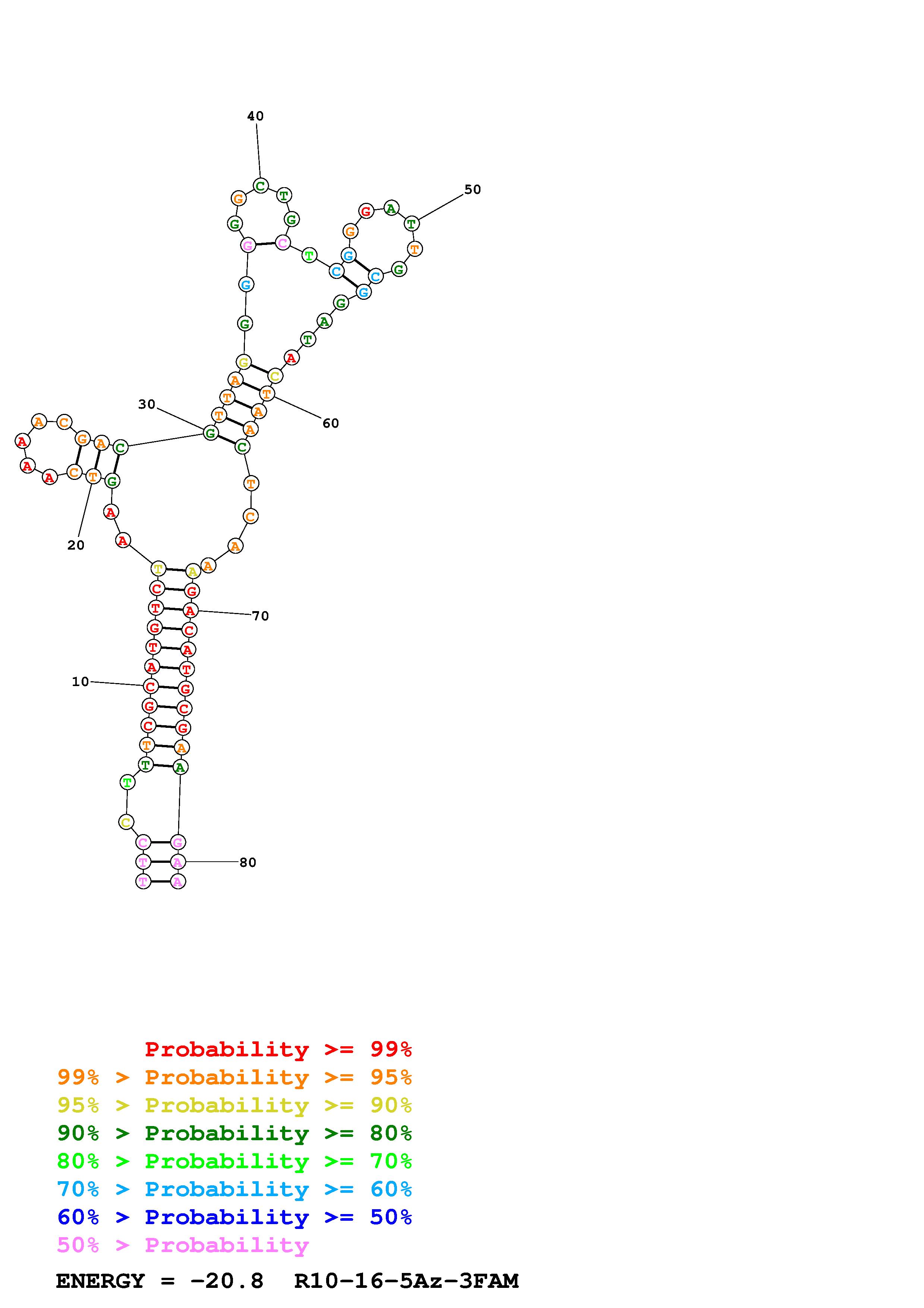 Fold Predict1.fasta Fold.ct --DNA --loop 30 --maximum 20 --percent 10 --temperature 297 --window 3