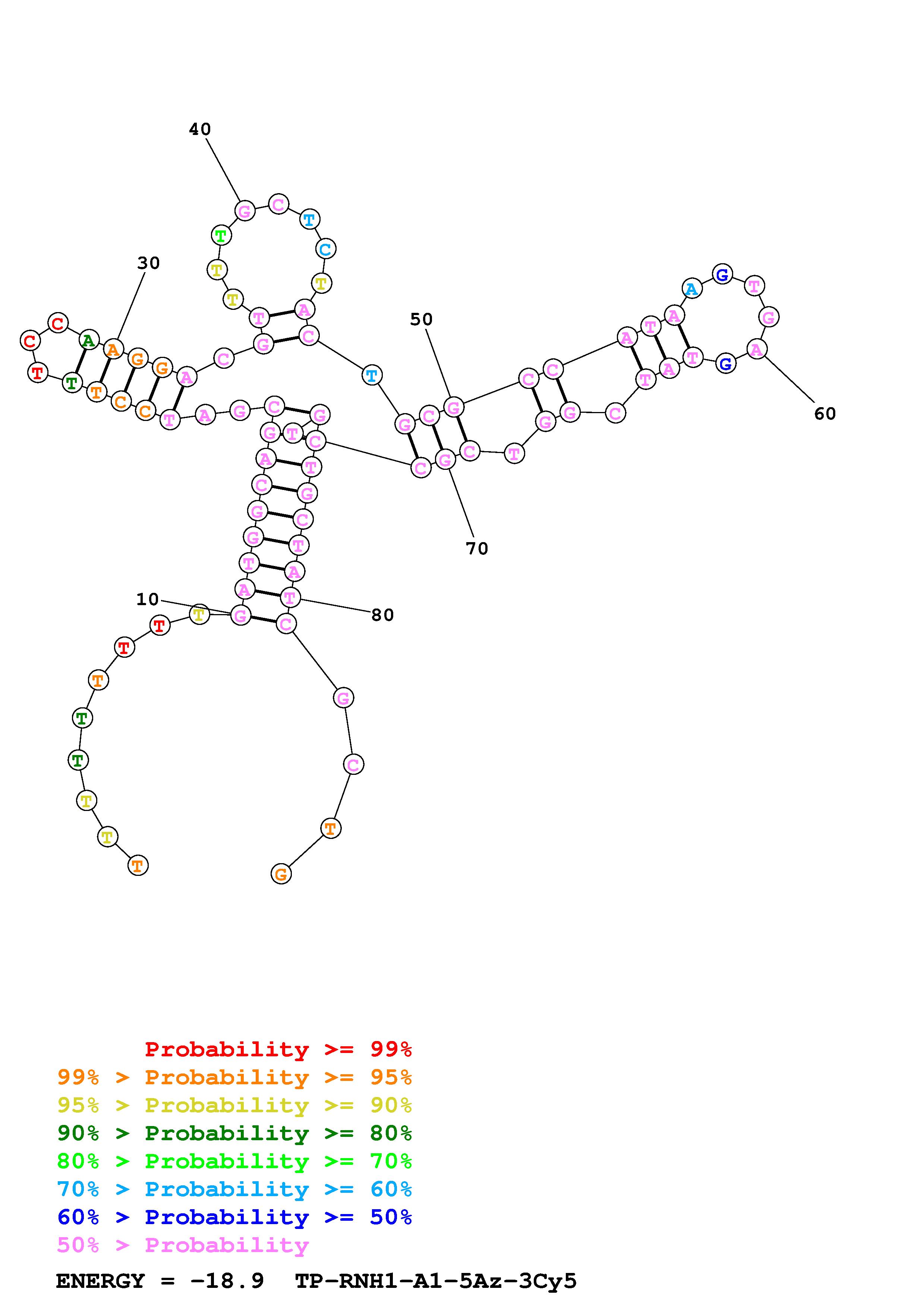 Fold Predict1.fasta Fold.ct --DNA --loop 30 --maximum 20 --percent 10 --temperature 297 --window 3