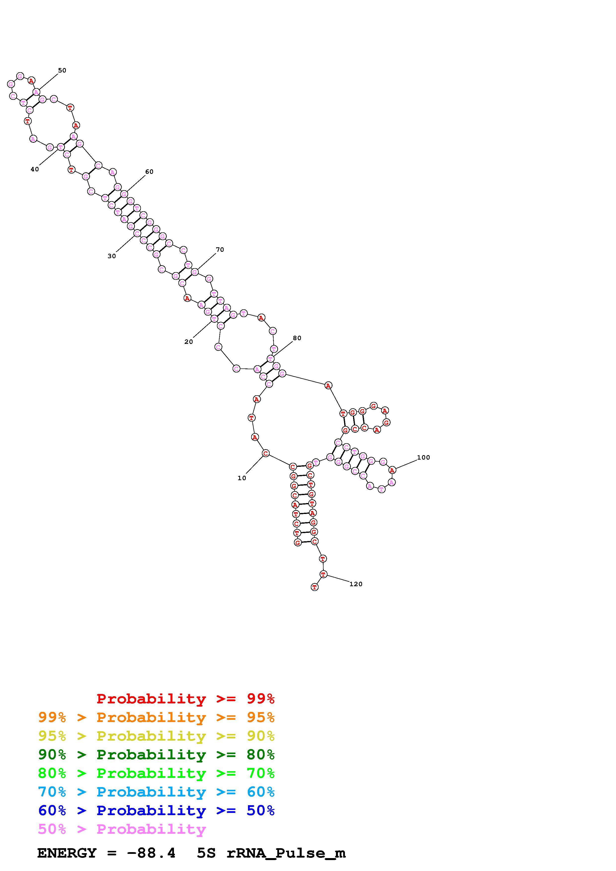 Fold Predict1.fasta Fold.ct --loop 30 --maximum 20 --percent 10 --SHAPE human_5S_mediam.txt --SHAPEintercept -0.6 --SHAPEslope 1.8 --temperature 310.15 --window 3