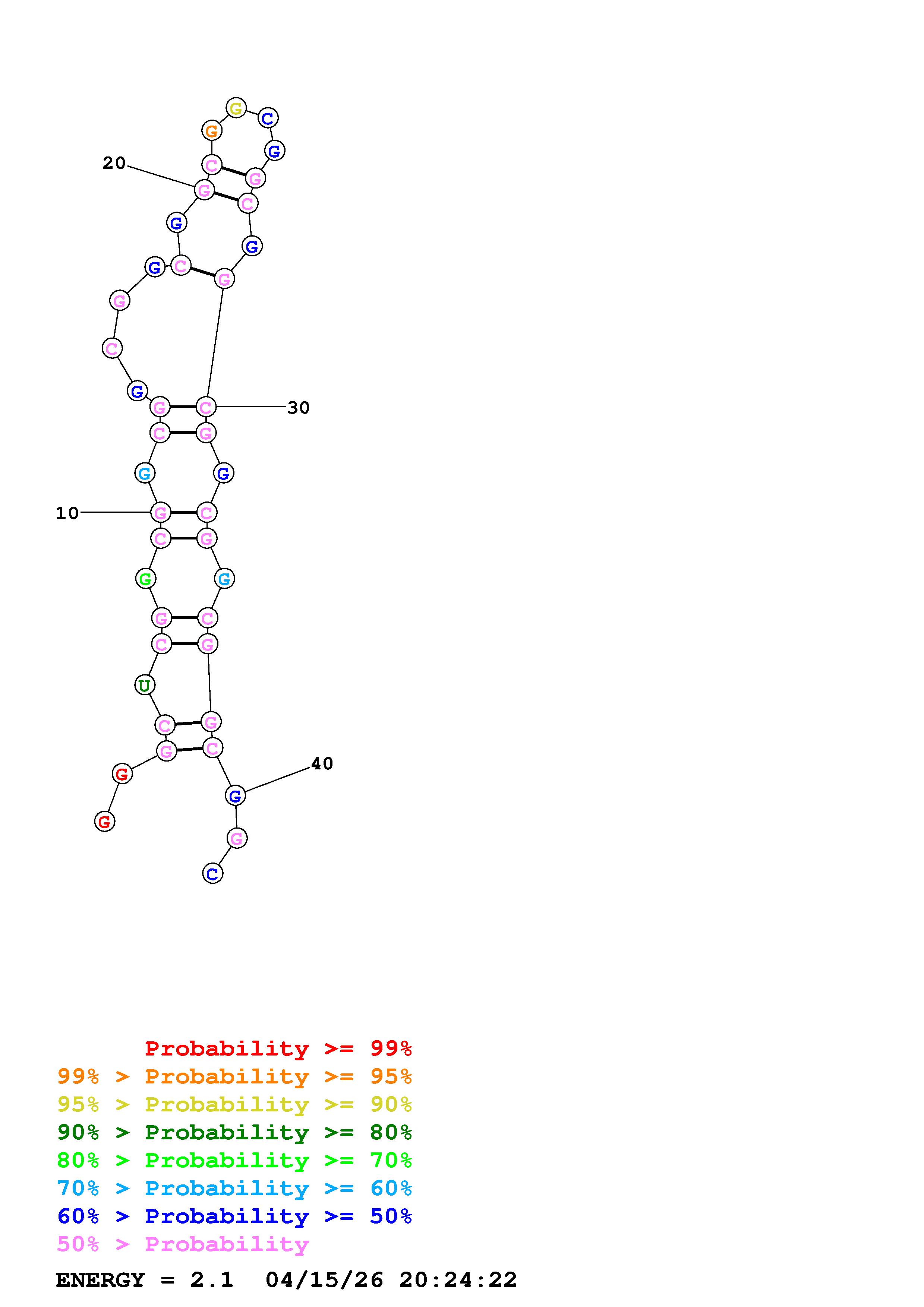 Fold Predict1.fasta Fold.ct --loop 30 --maximum 20 --percent 10 --temperature 310.15 --window 3