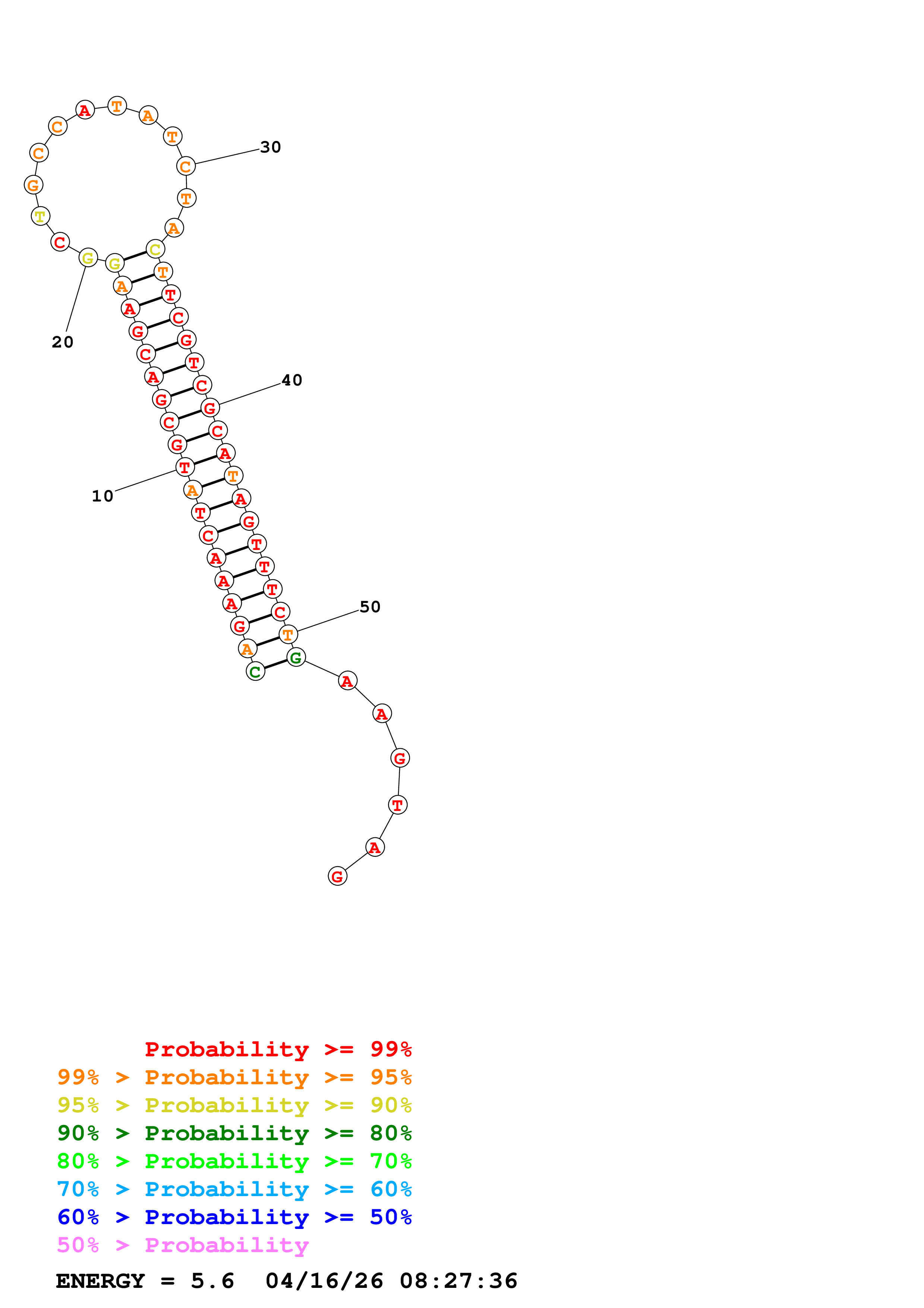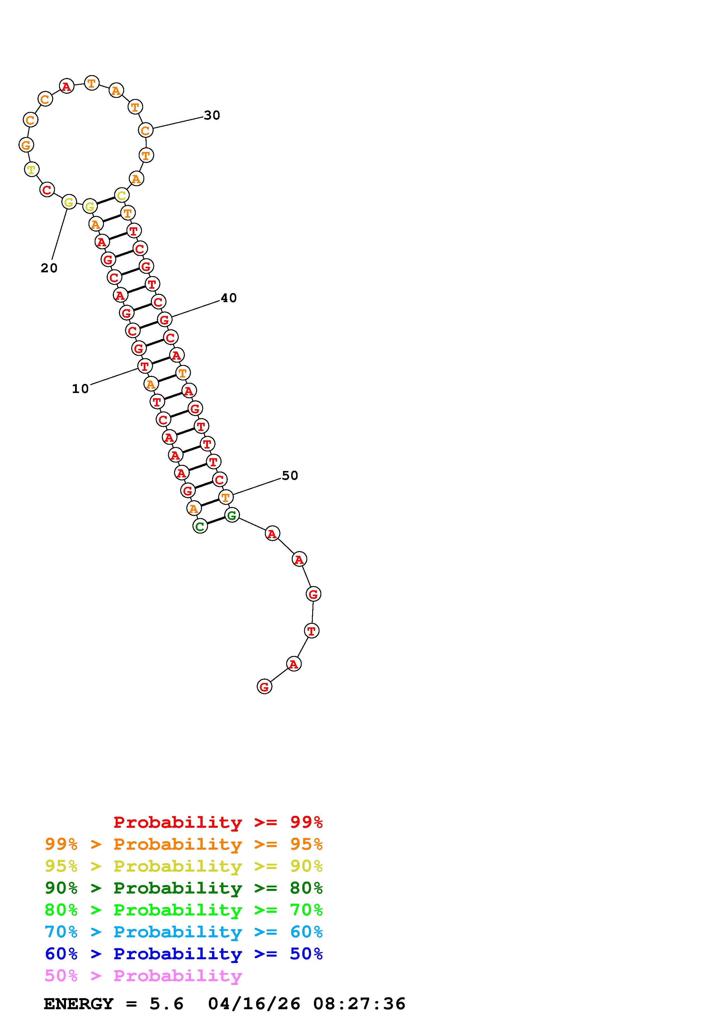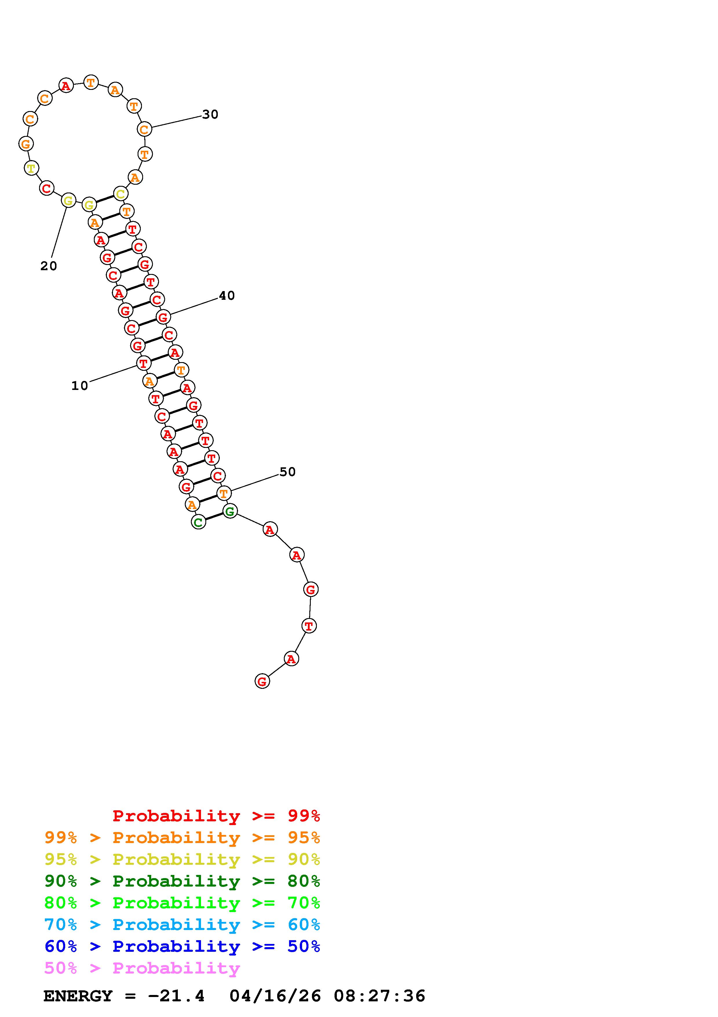 Fold Predict1.fasta Fold.ct --DNA --loop 30 --maximum 20 --percent 10 --temperature 310.15 --window 3