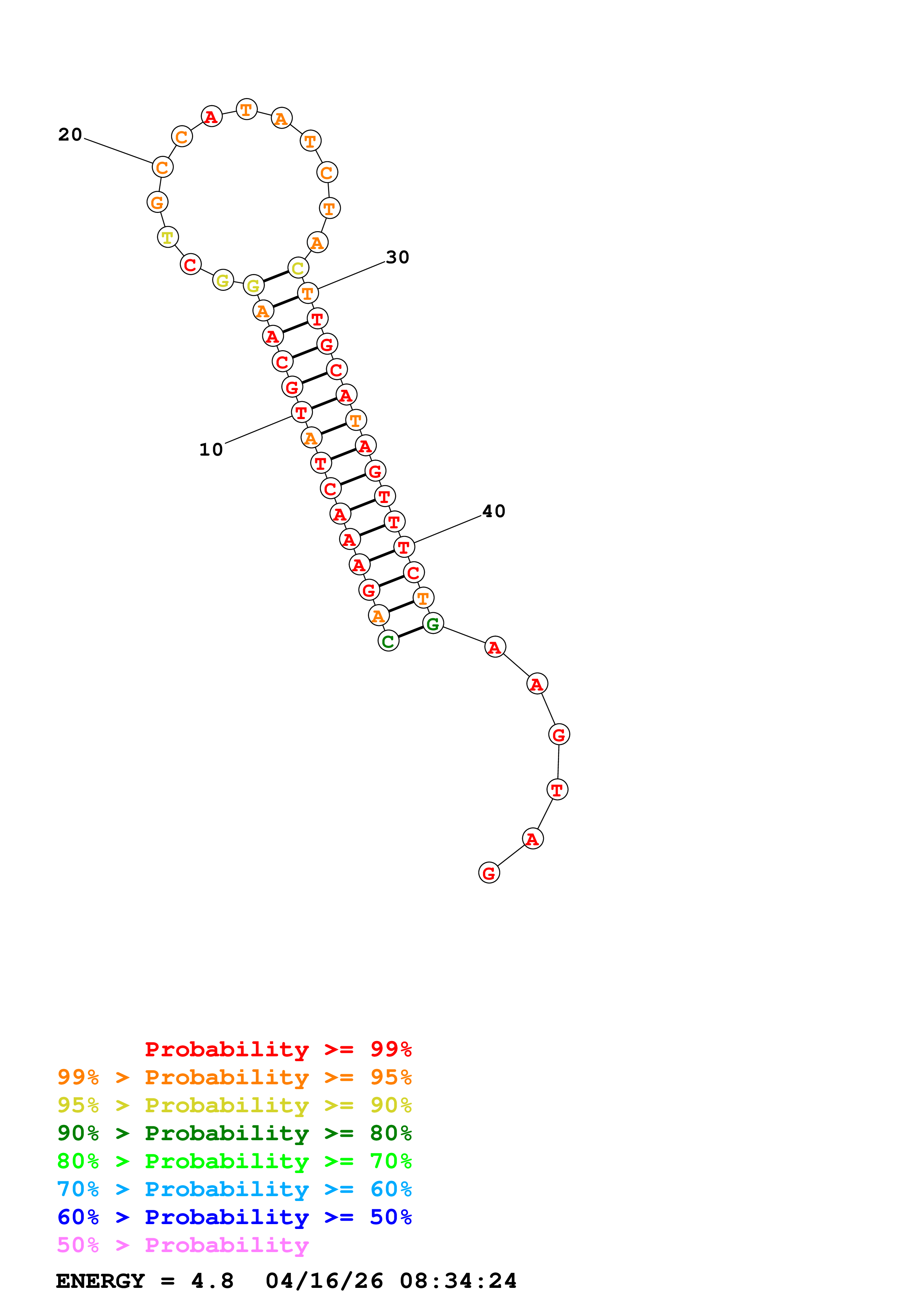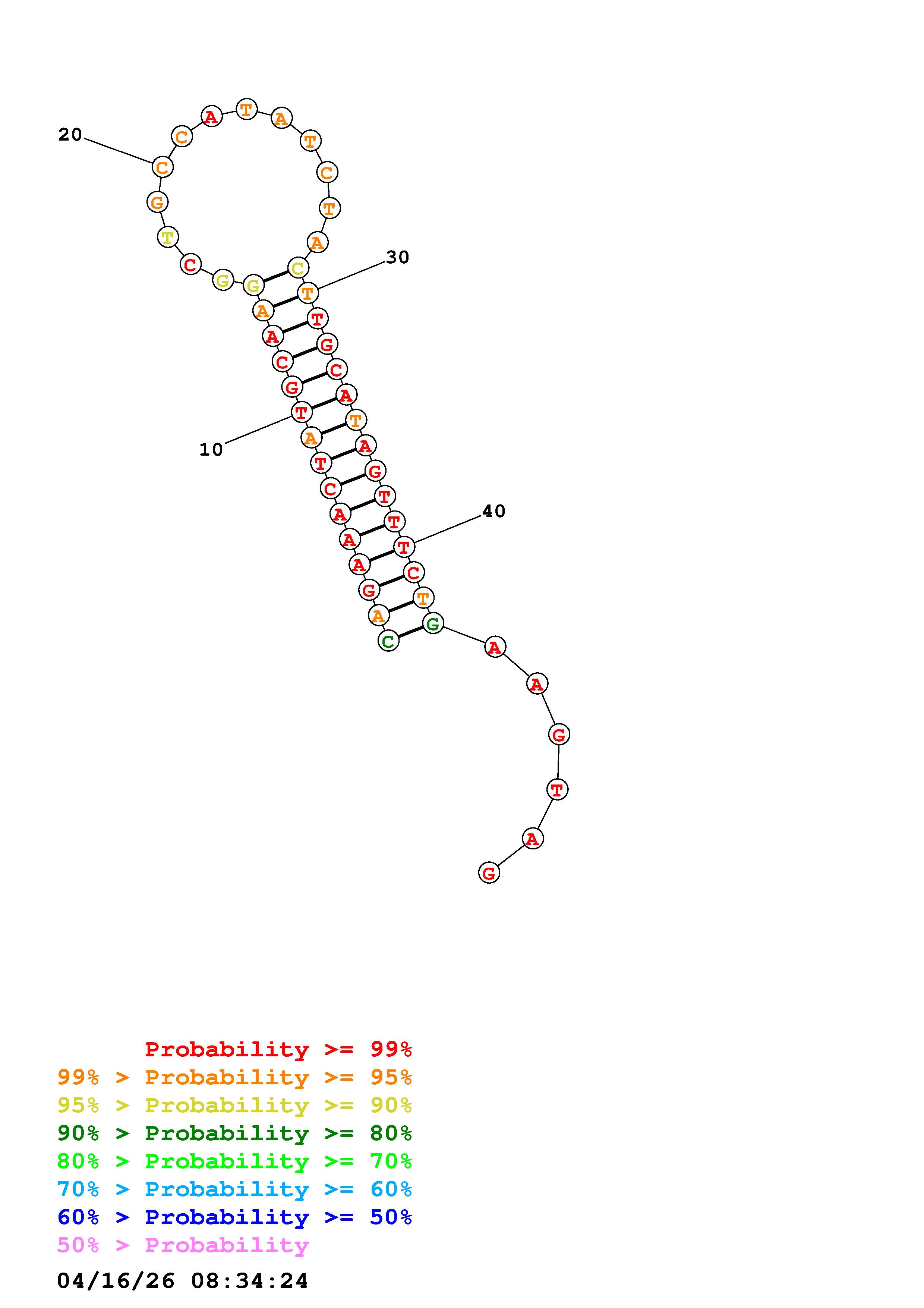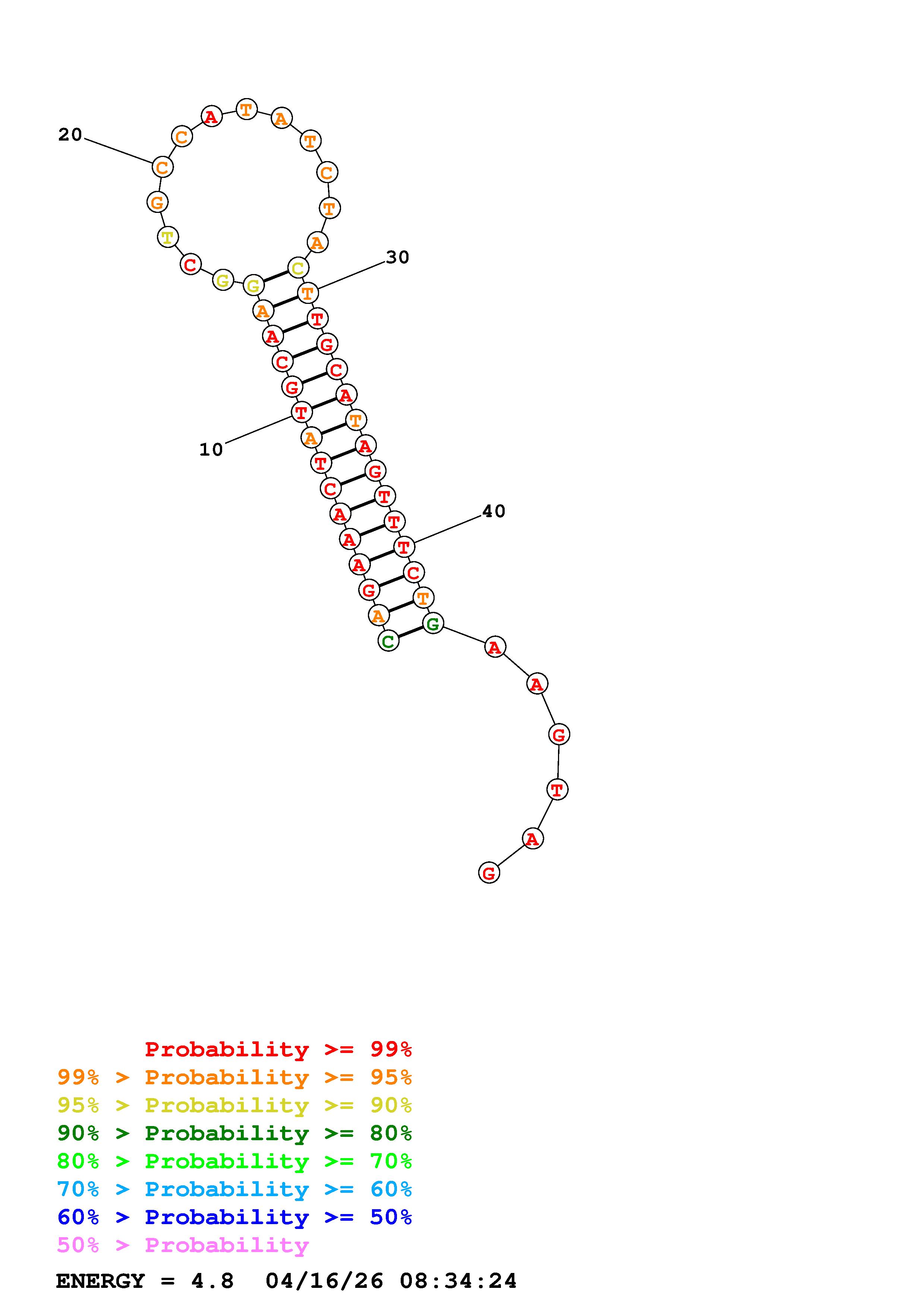 Fold Predict1.fasta Fold.ct --DNA --loop 30 --maximum 20 --percent 10 --temperature 310.15 --window 3
