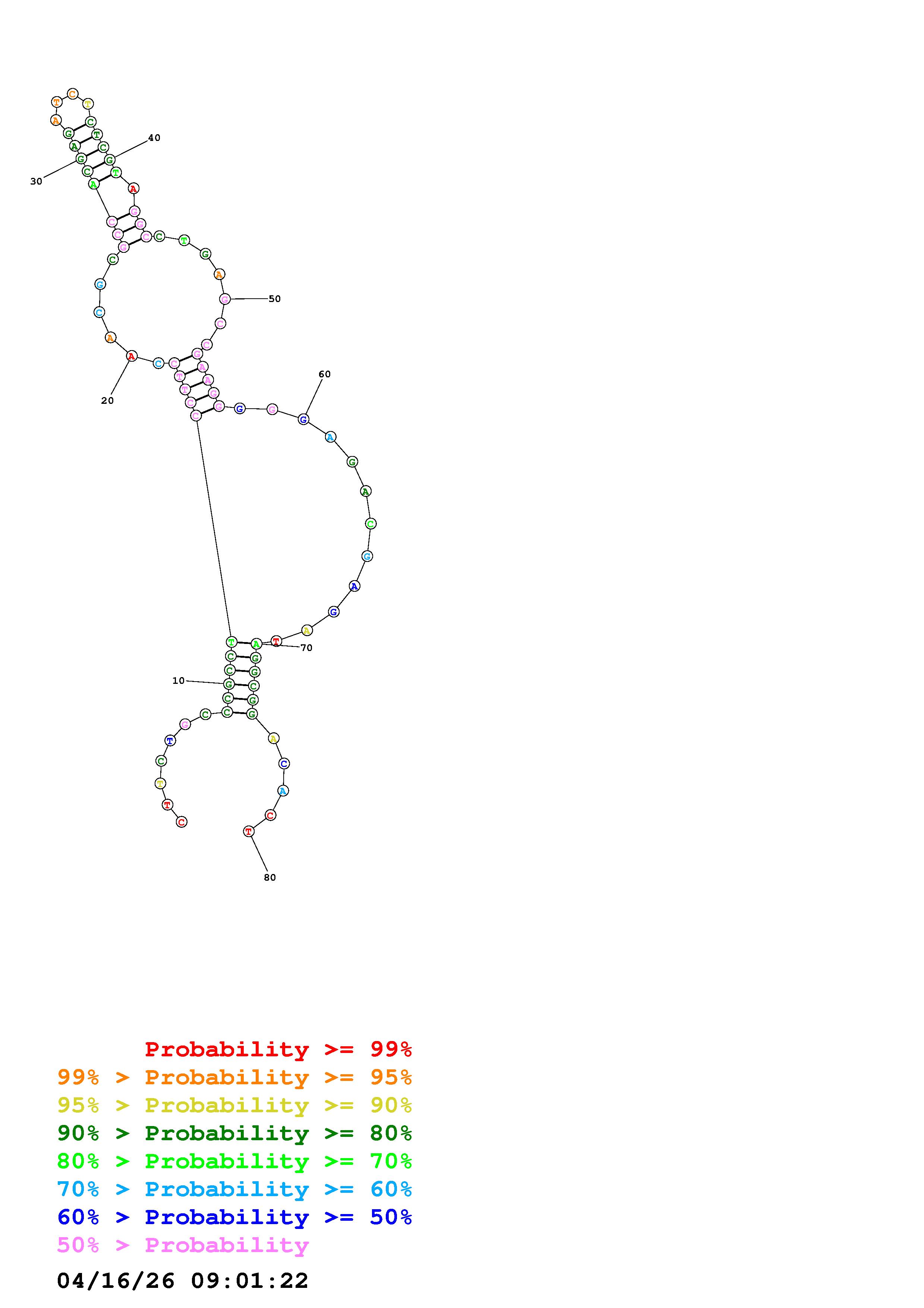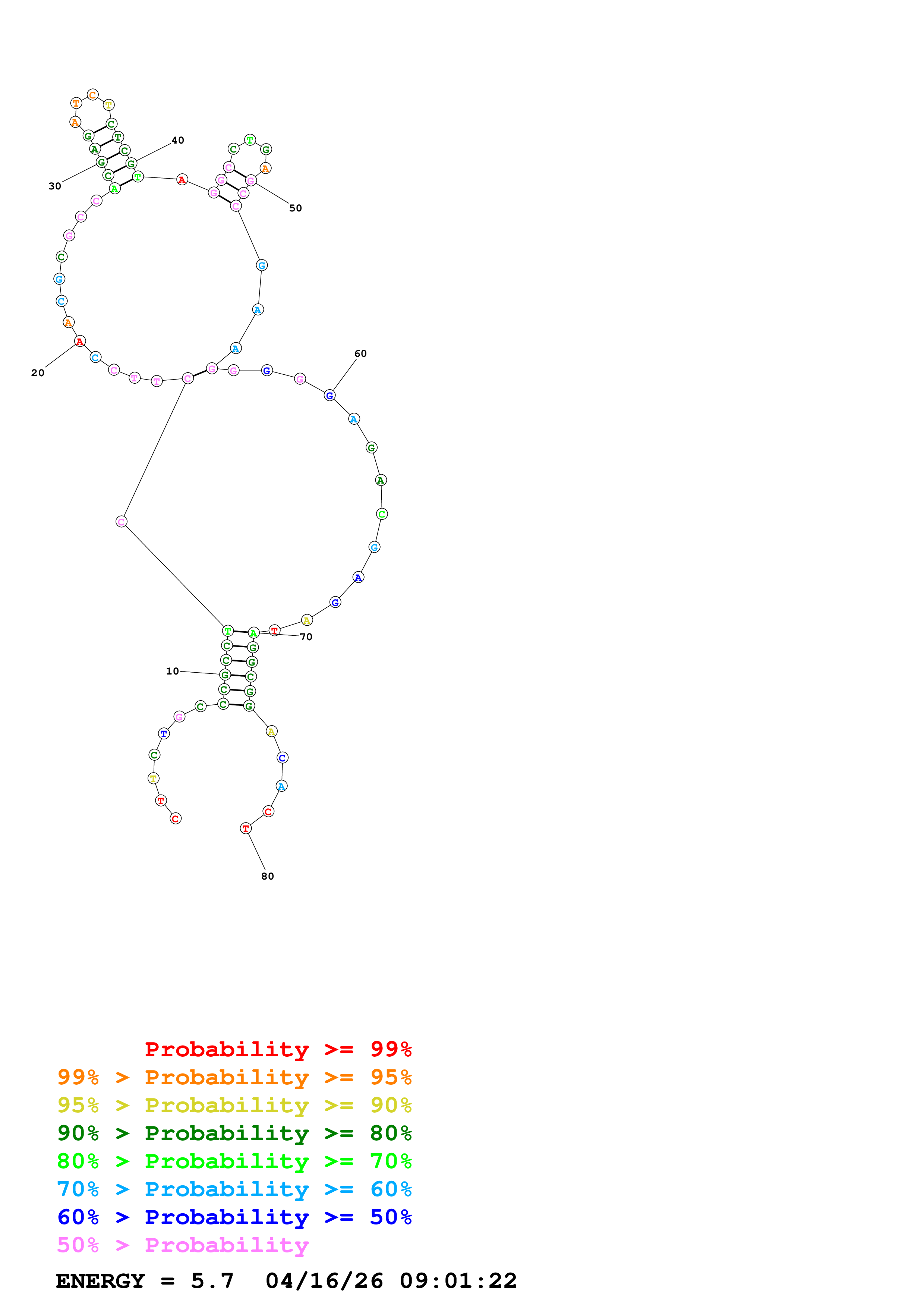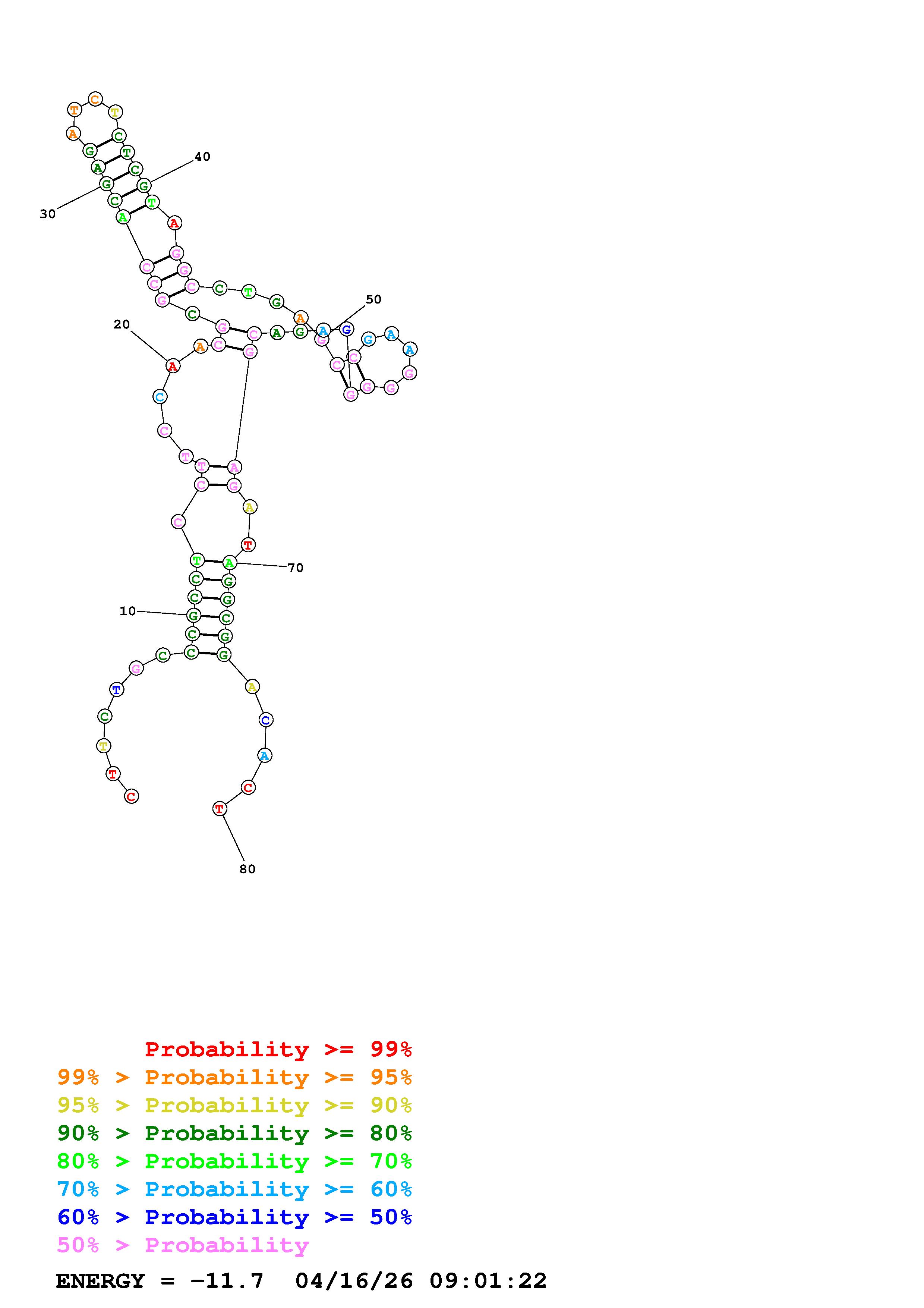 Fold Predict1.fasta Fold.ct --DNA --loop 30 --maximum 20 --percent 10 --temperature 310.15 --window 3