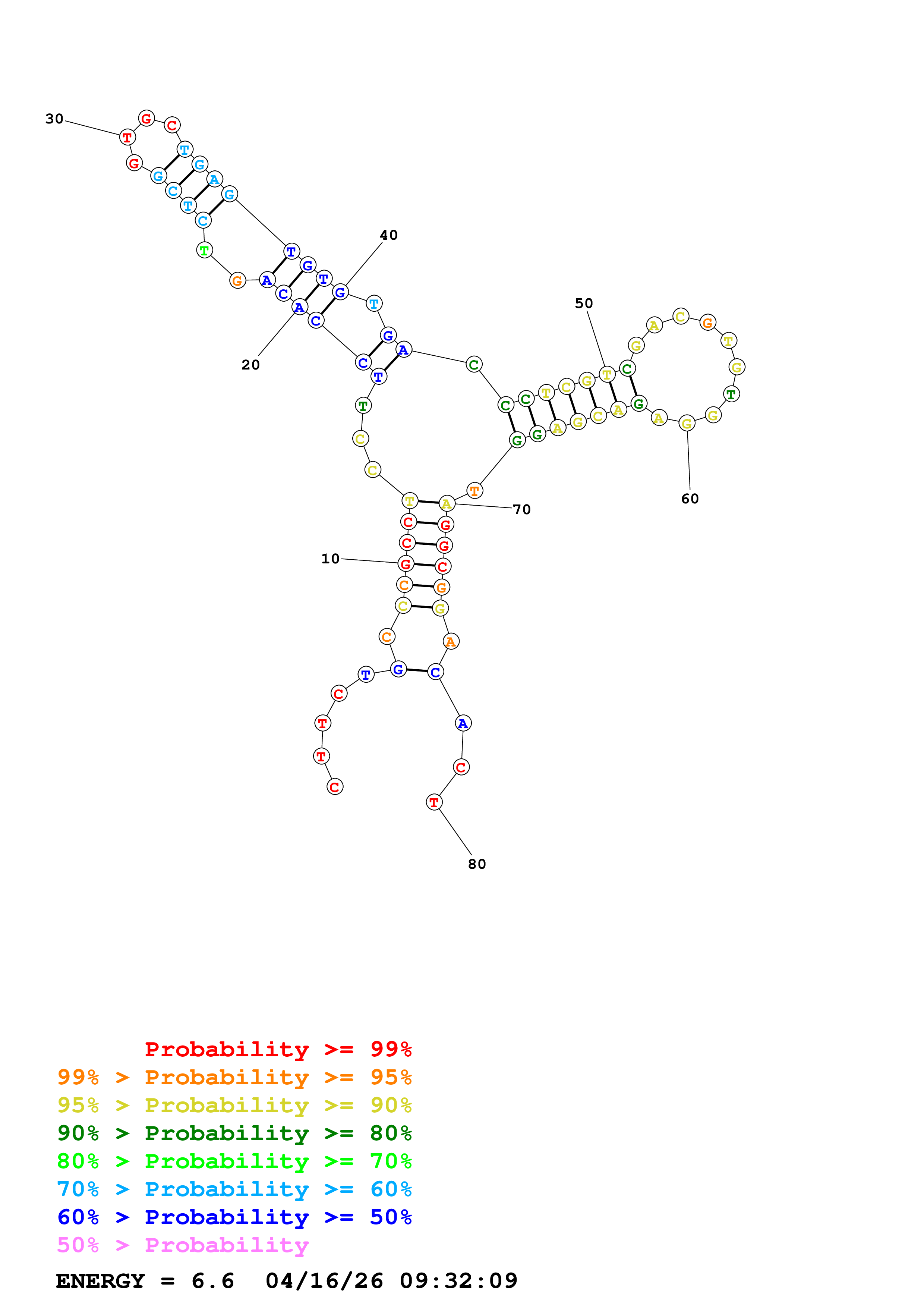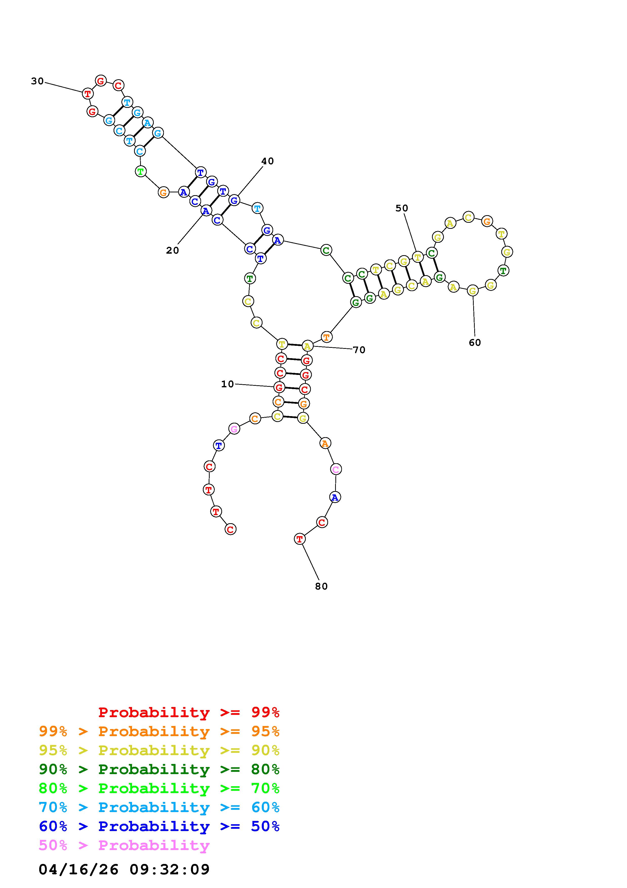 Fold Predict1.fasta Fold.ct --DNA --loop 30 --maximum 20 --percent 10 --temperature 310.15 --window 3