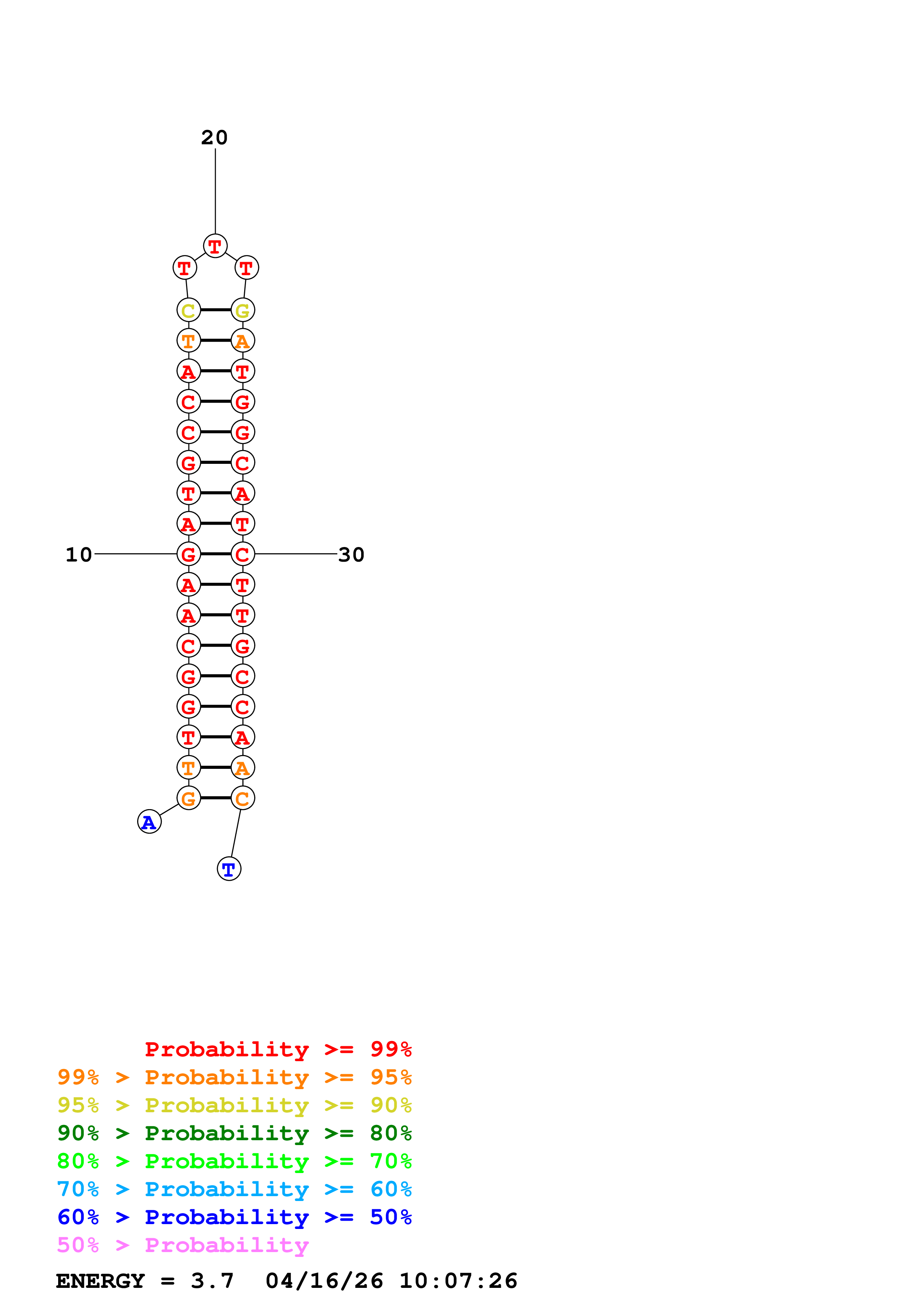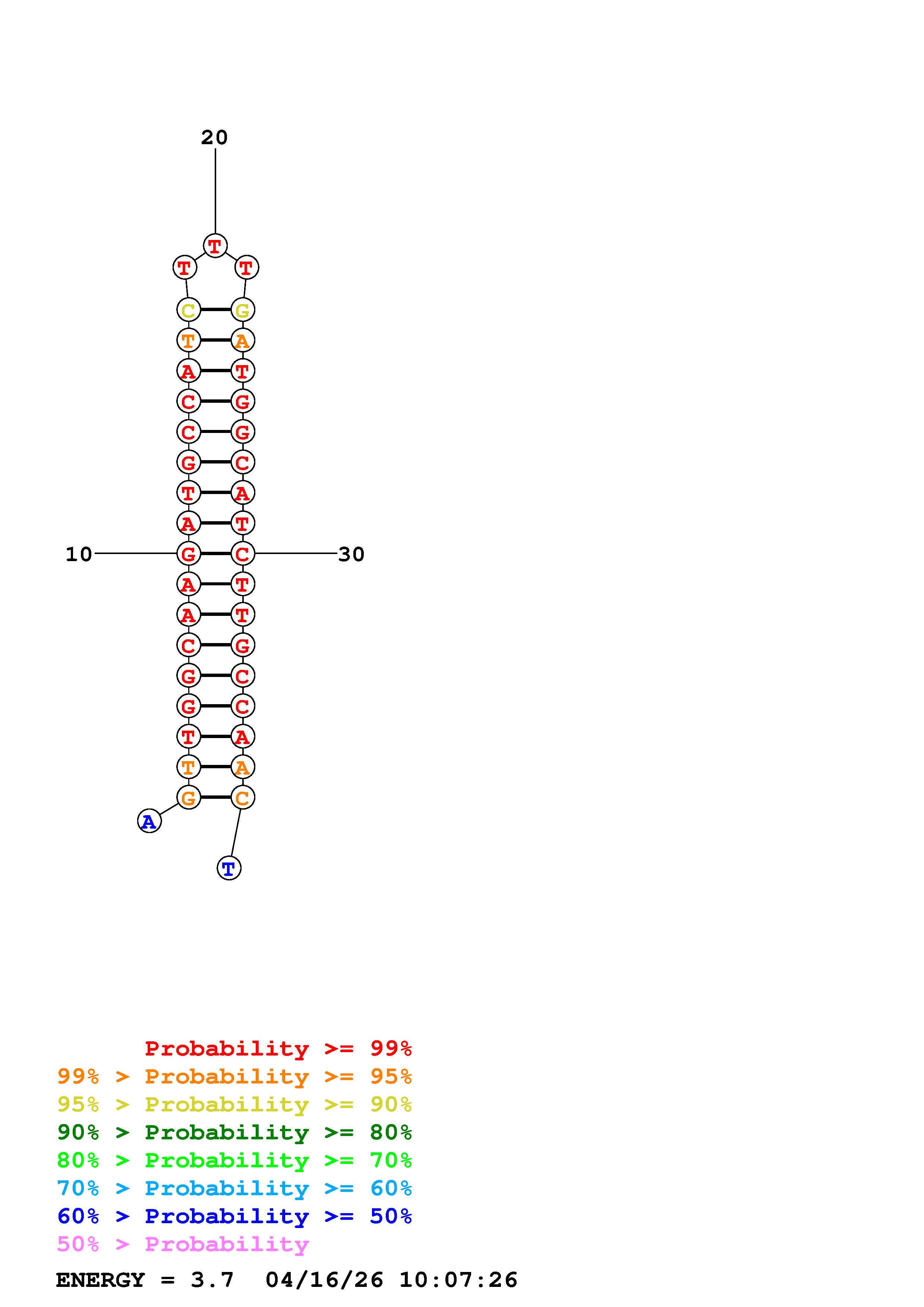 Fold Predict1.fasta Fold.ct --DNA --loop 30 --maximum 20 --percent 10 --temperature 310.15 --window 3