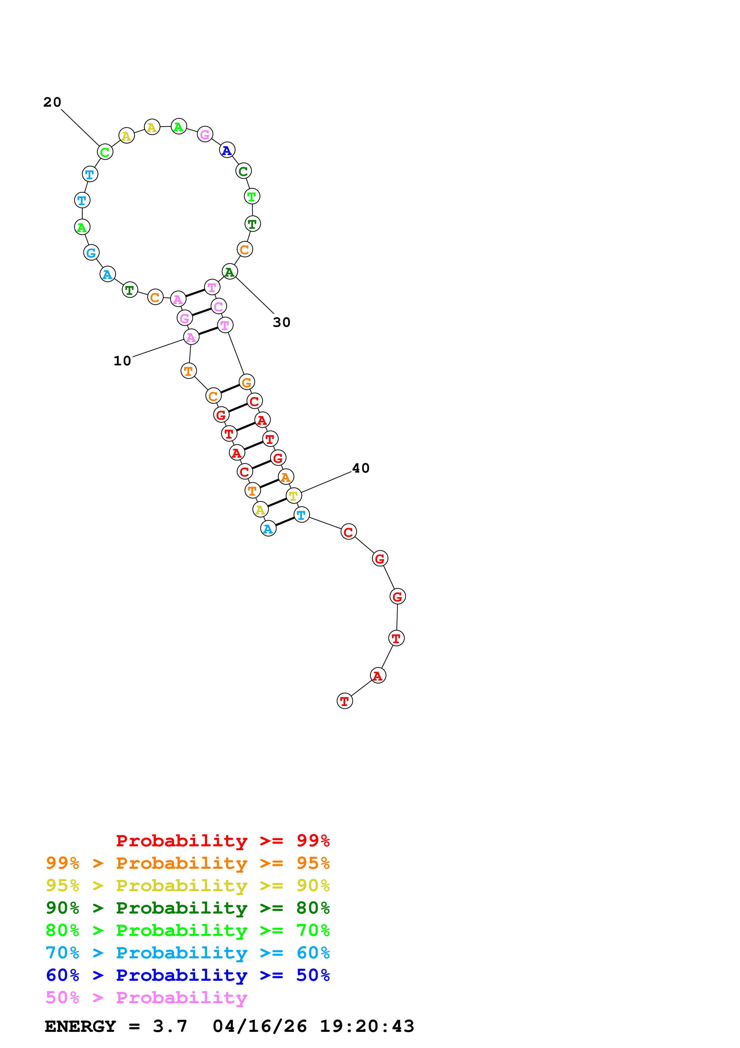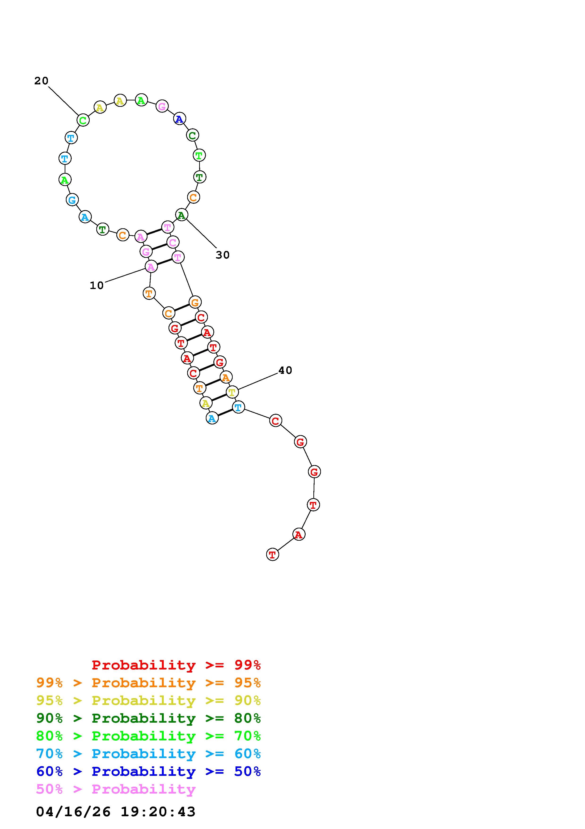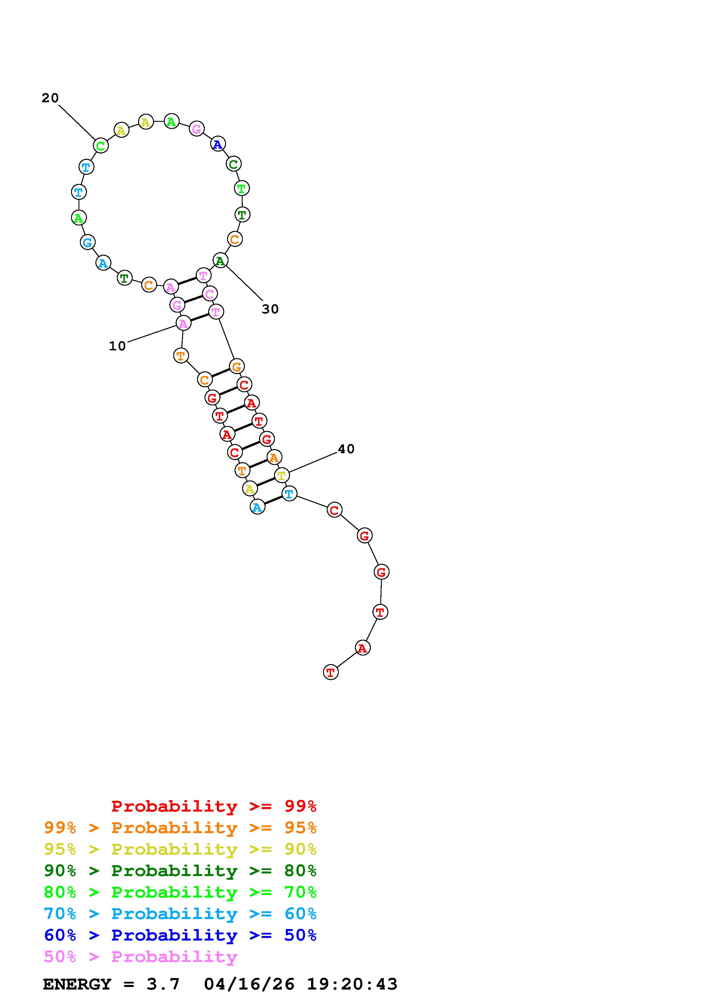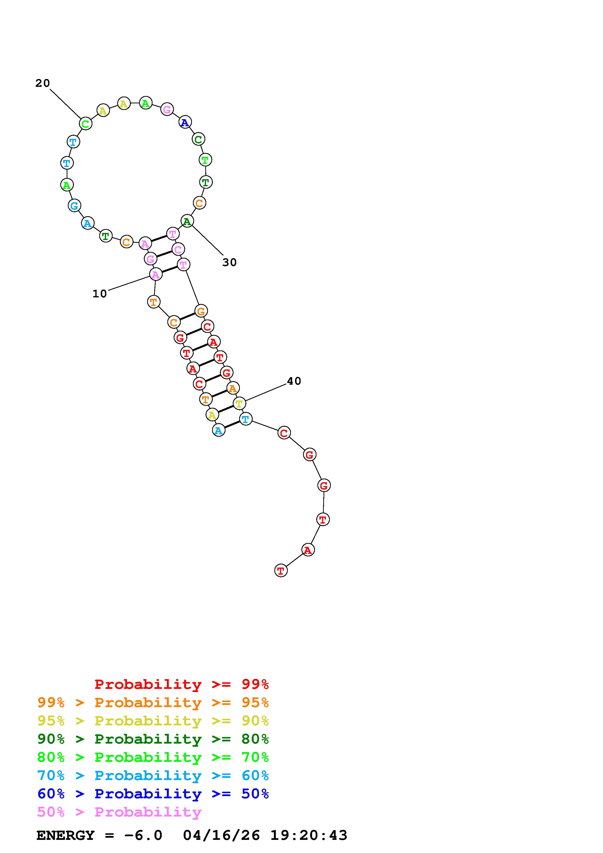 Fold Predict1.fasta Fold.ct --DNA --loop 30 --maximum 20 --percent 10 --temperature 310.15 --window 3