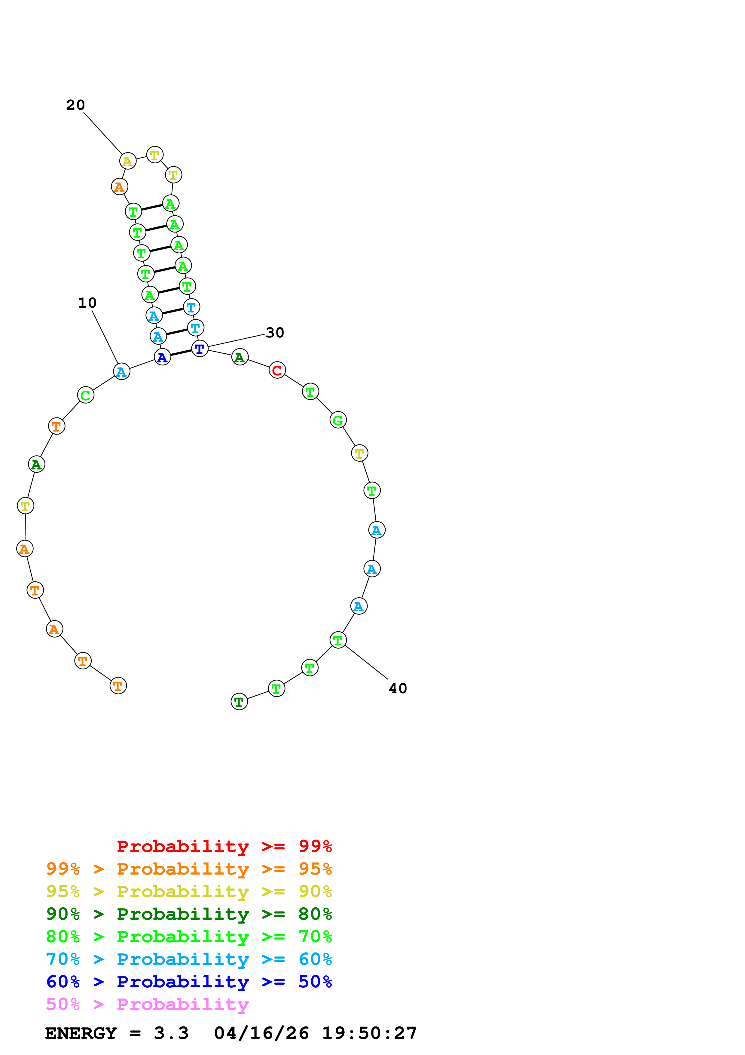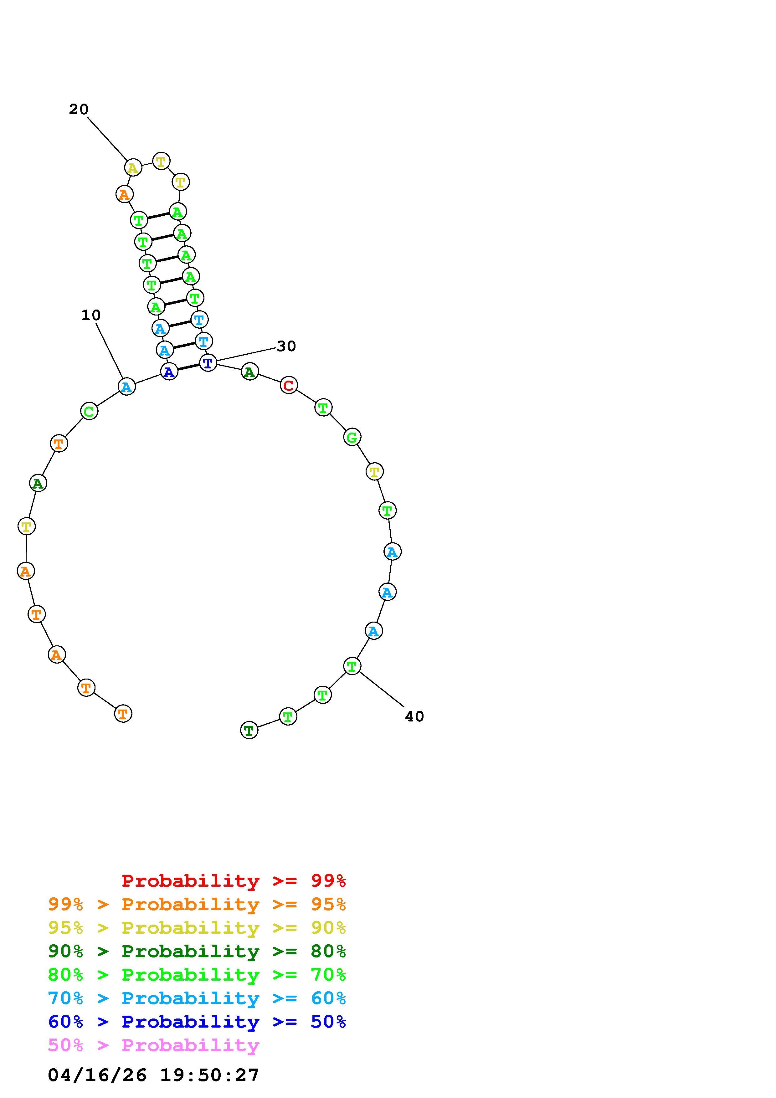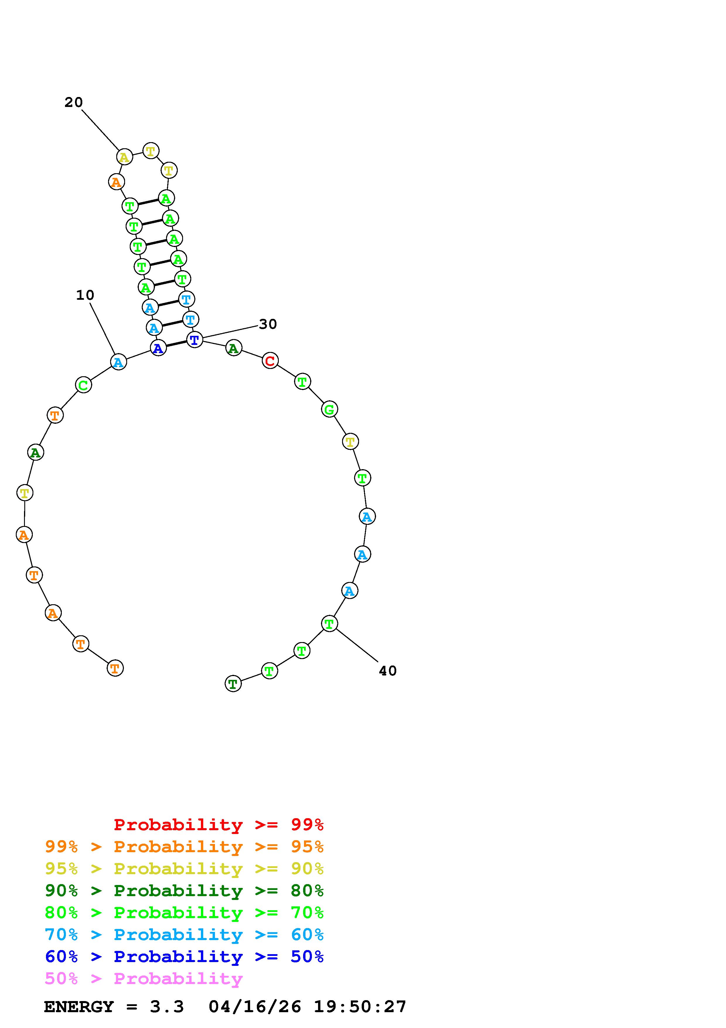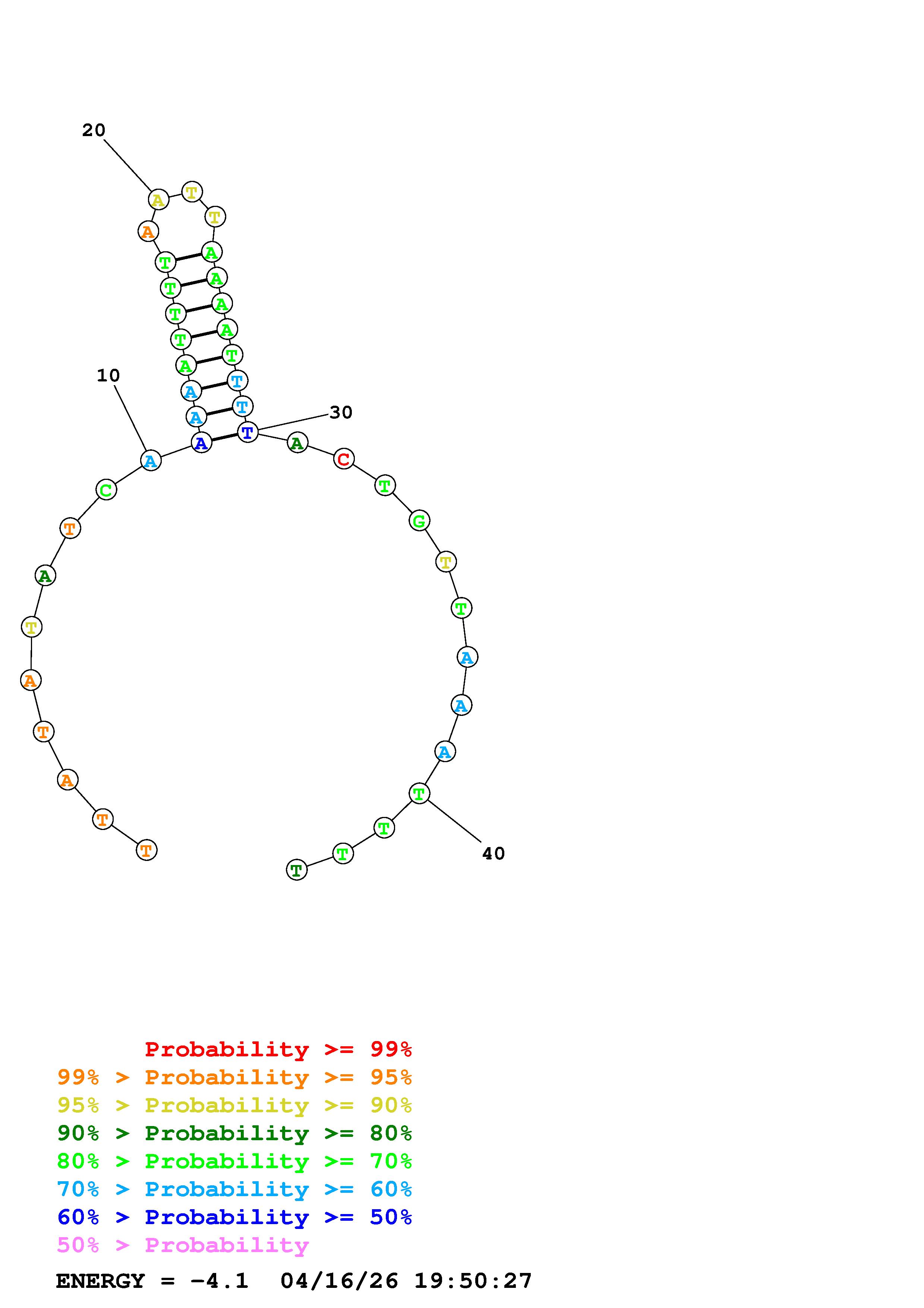 Fold Predict1.fasta Fold.ct --DNA --loop 30 --maximum 20 --percent 10 --temperature 310.15 --window 3