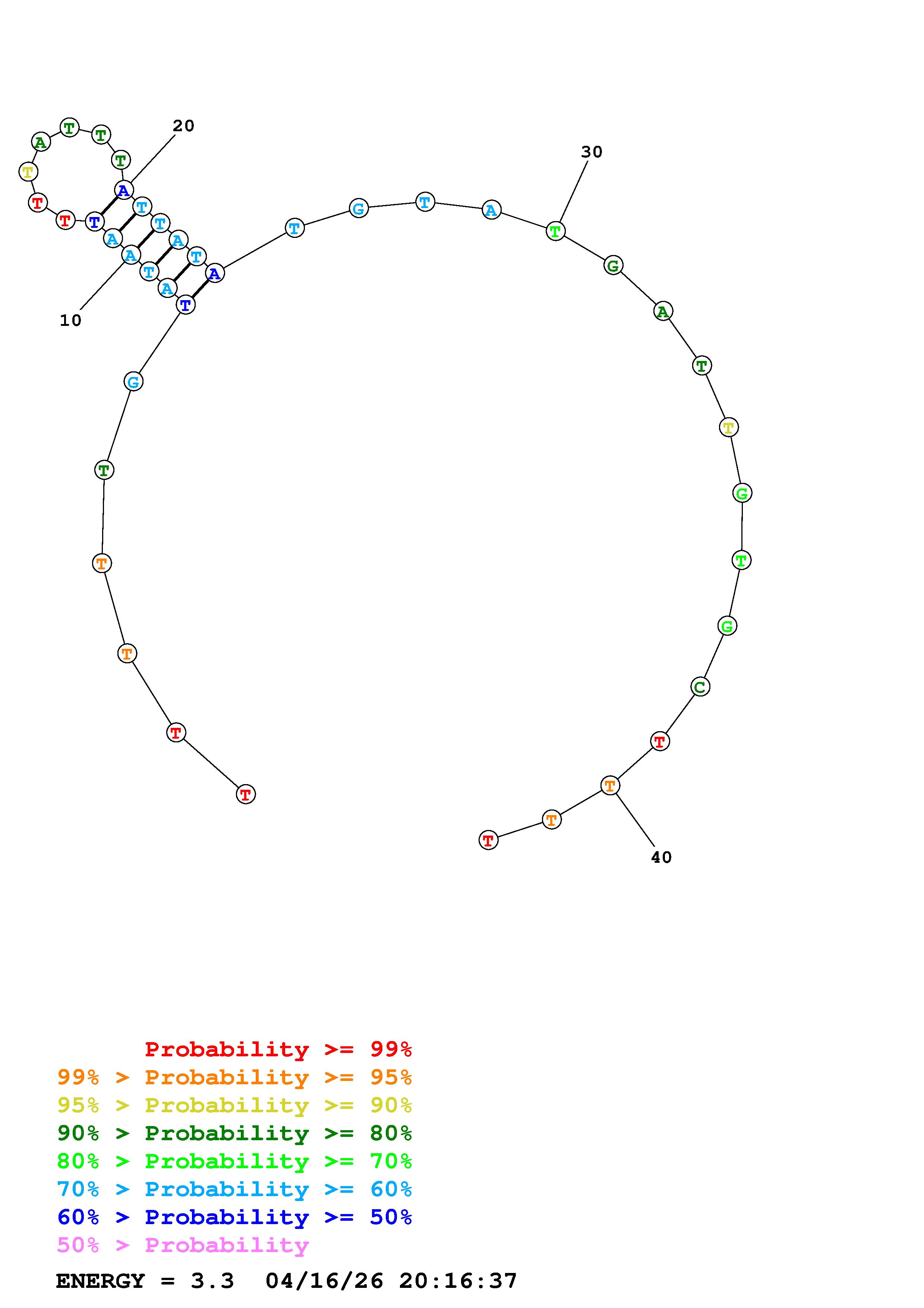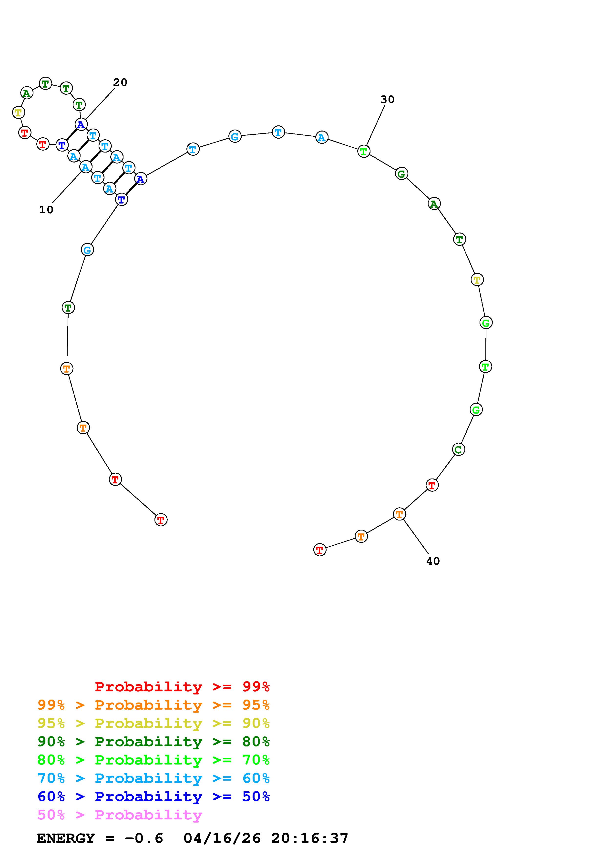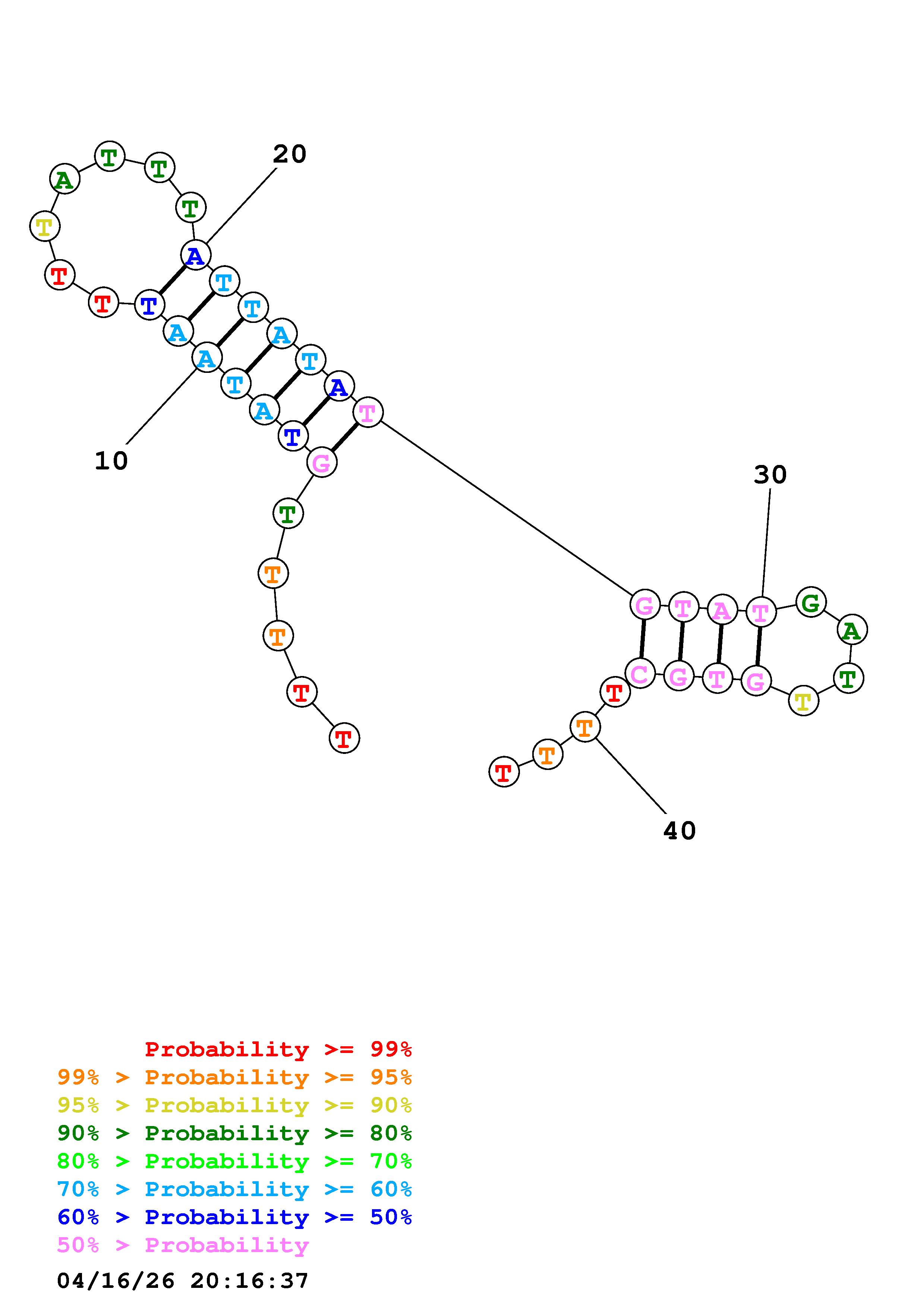 Fold Predict1.fasta Fold.ct --DNA --loop 30 --maximum 20 --percent 10 --temperature 310.15 --window 3