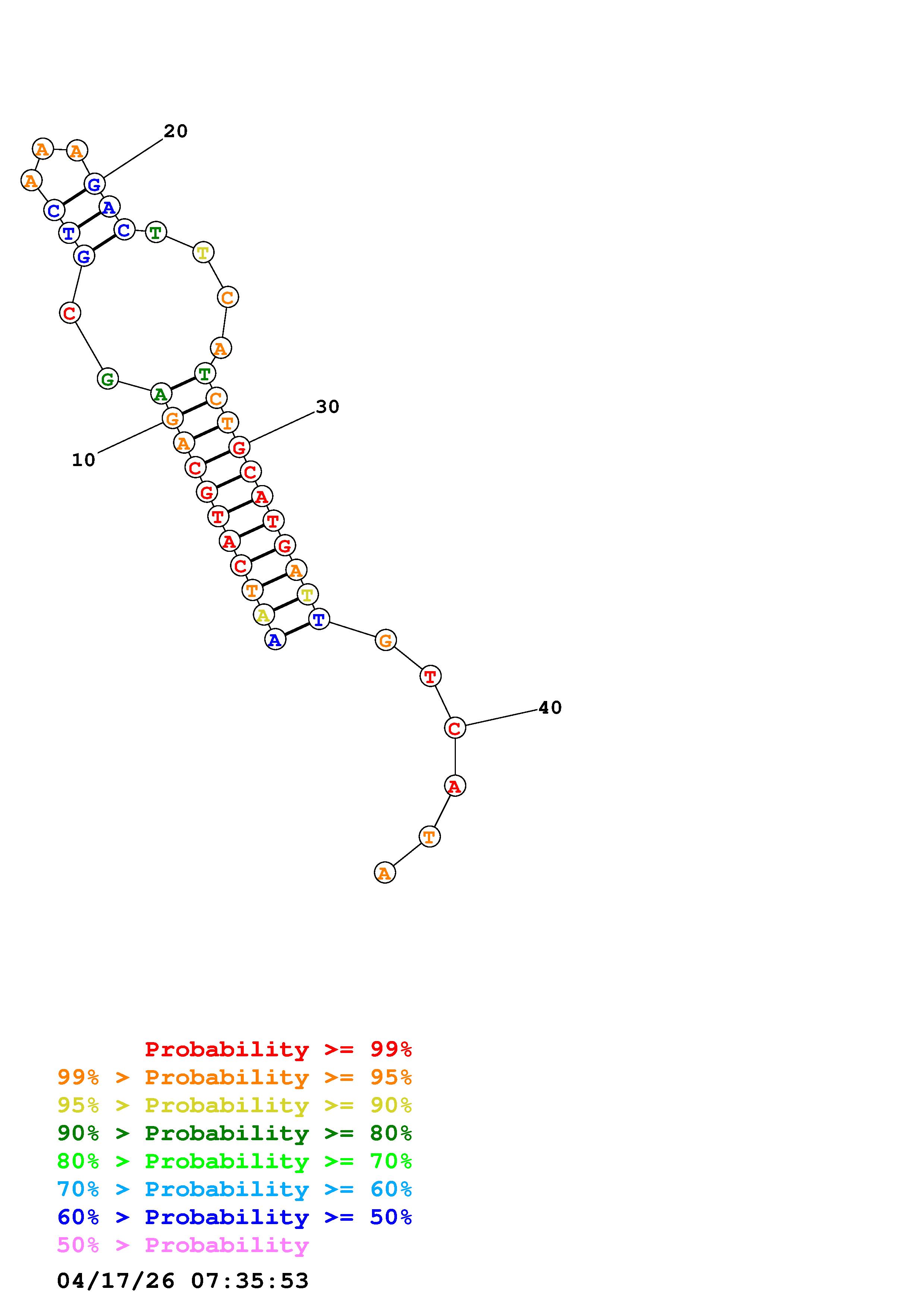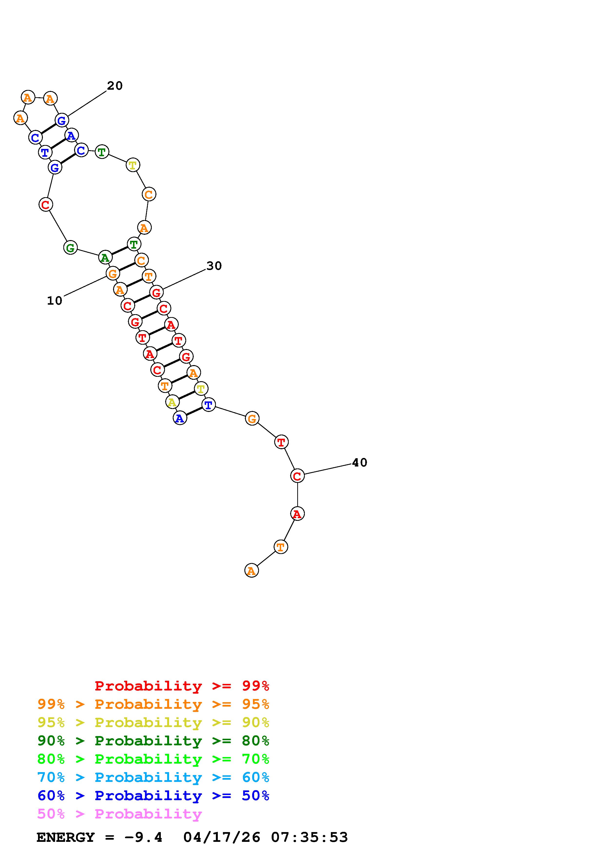 Fold Predict1.fasta Fold.ct --DNA --loop 30 --maximum 20 --percent 10 --temperature 310.15 --window 3
