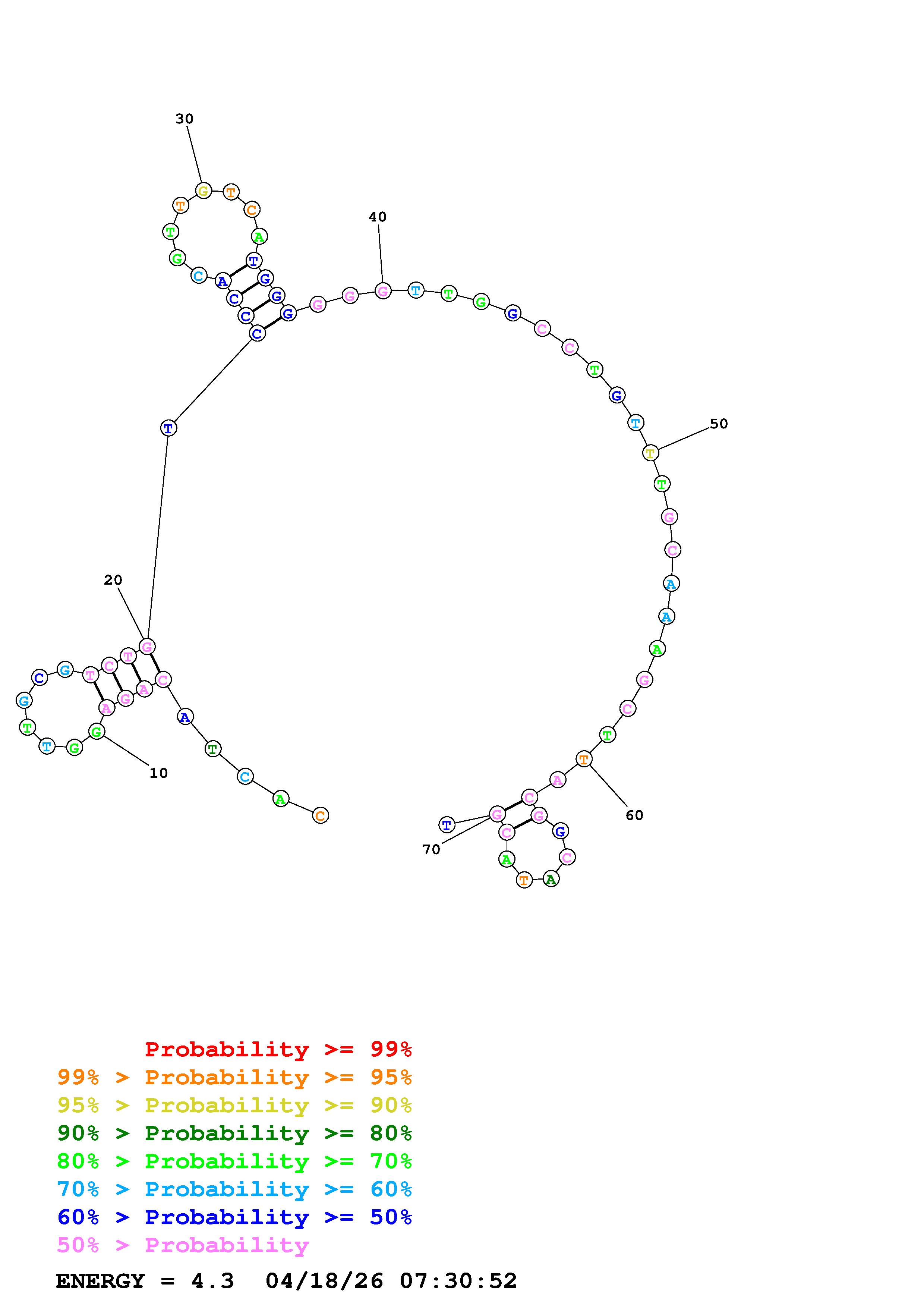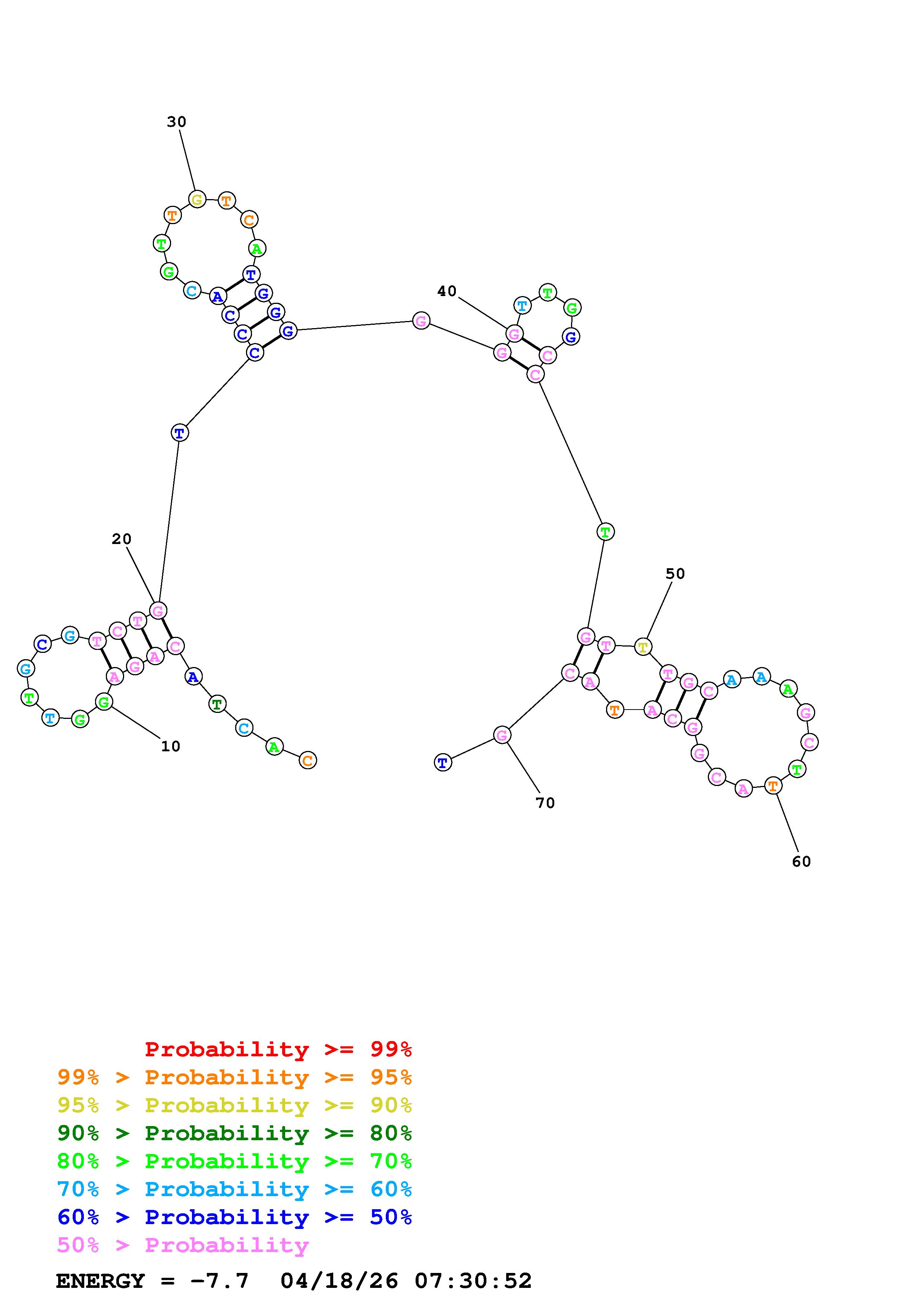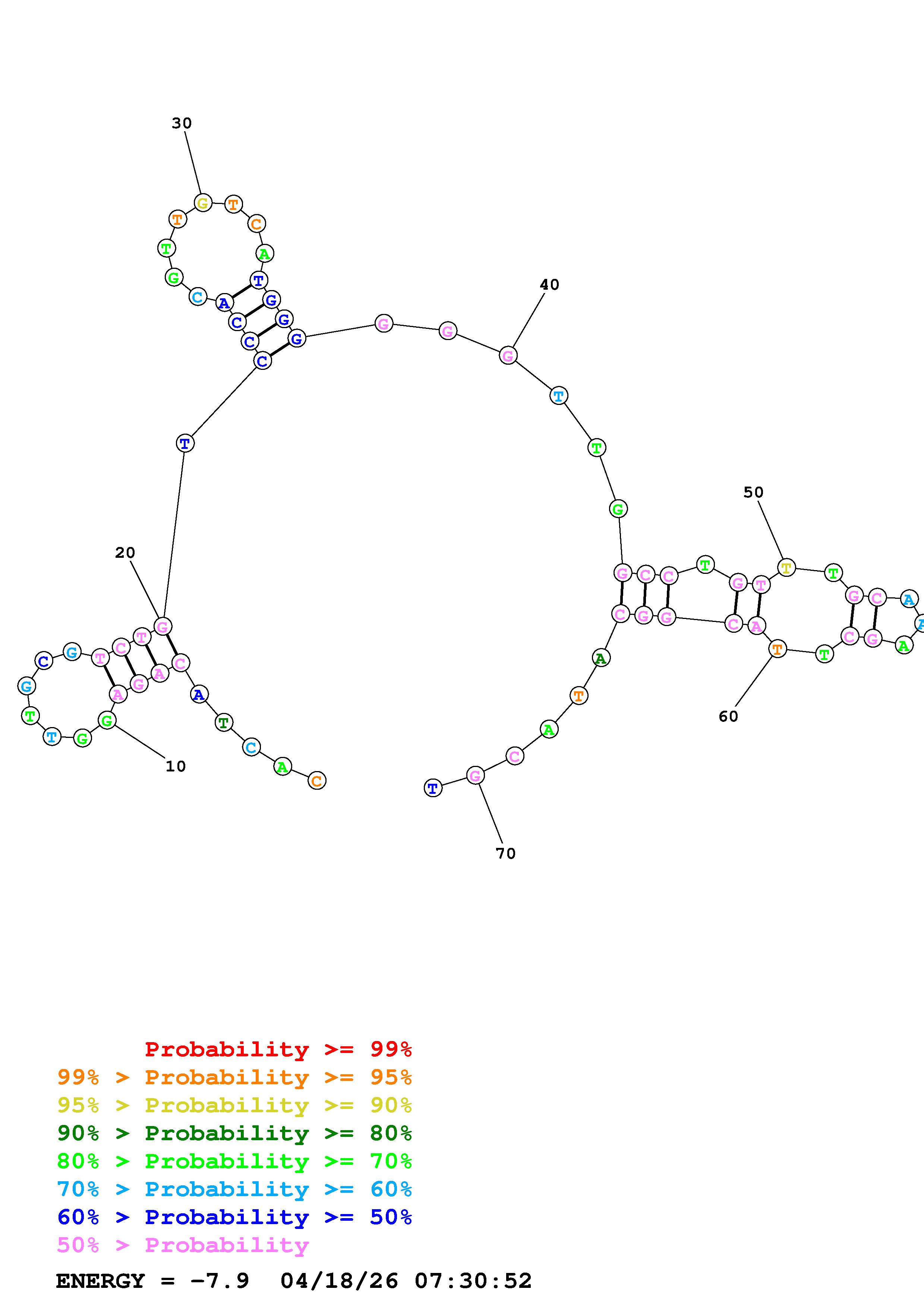 Fold Predict1.fasta Fold.ct --DNA --loop 30 --maximum 20 --percent 10 --temperature 310.15 --window 3