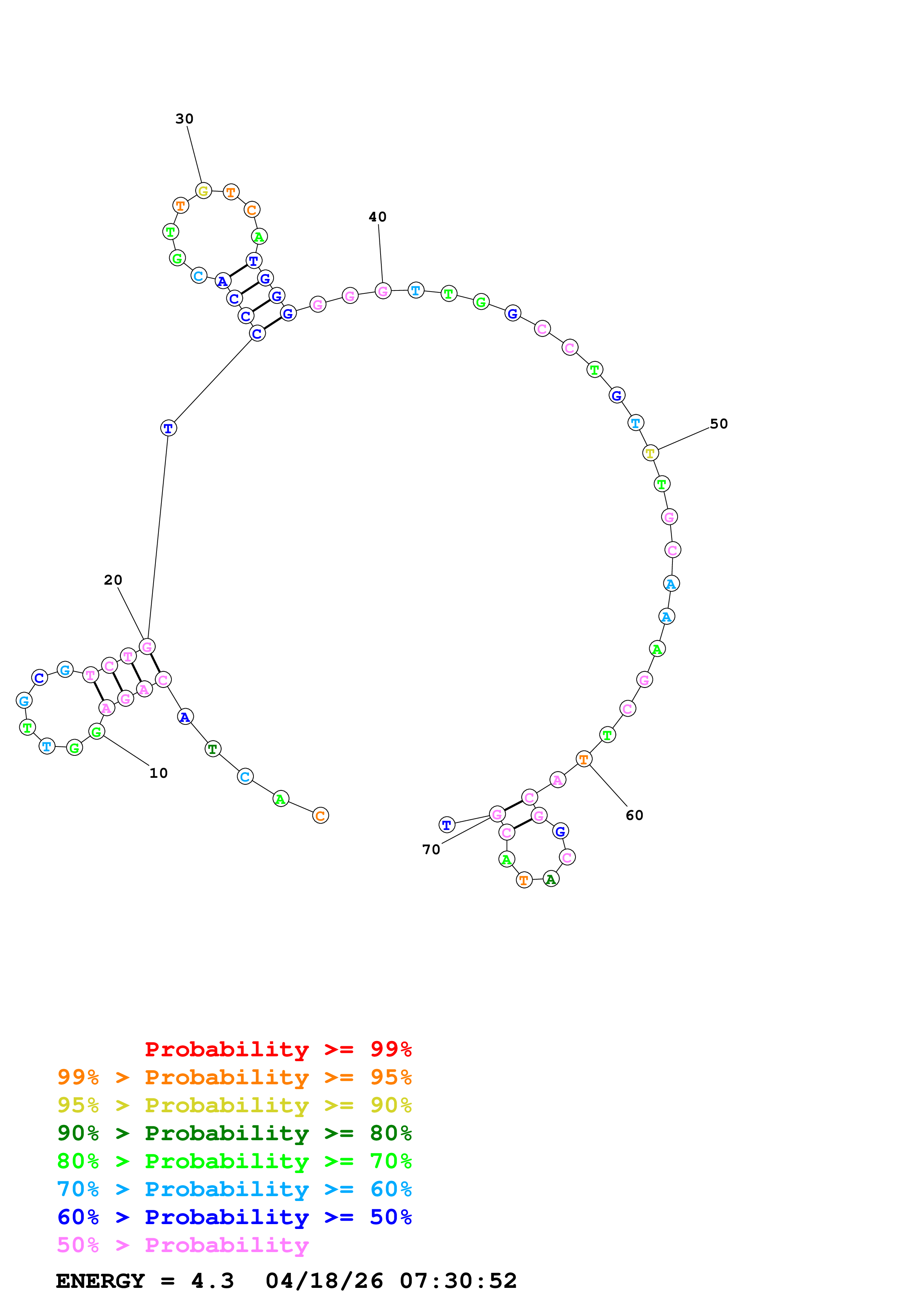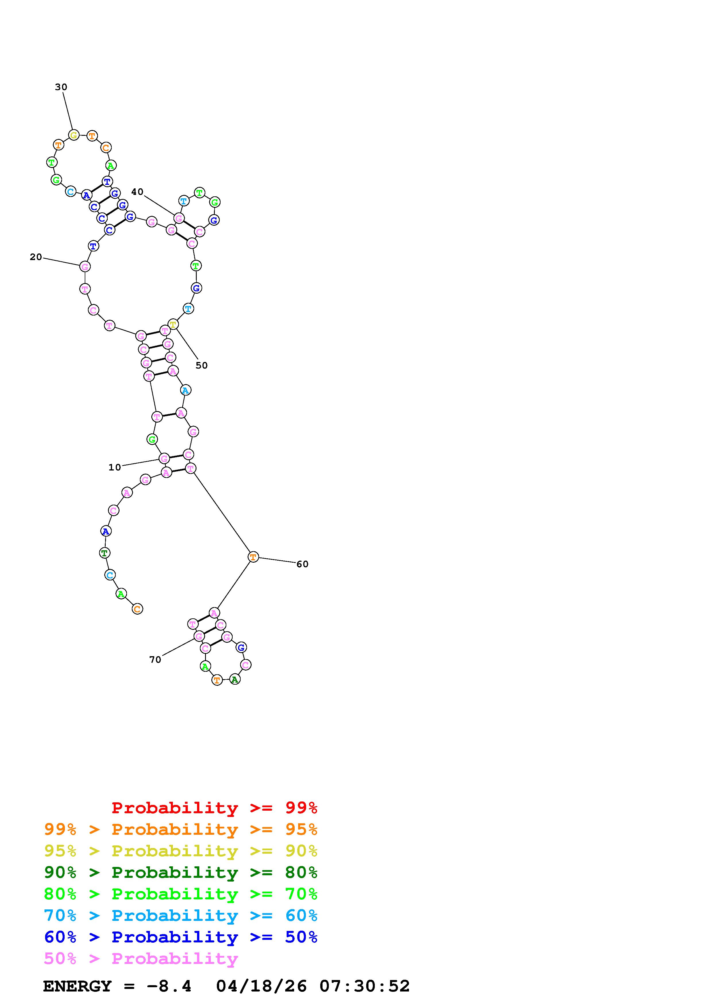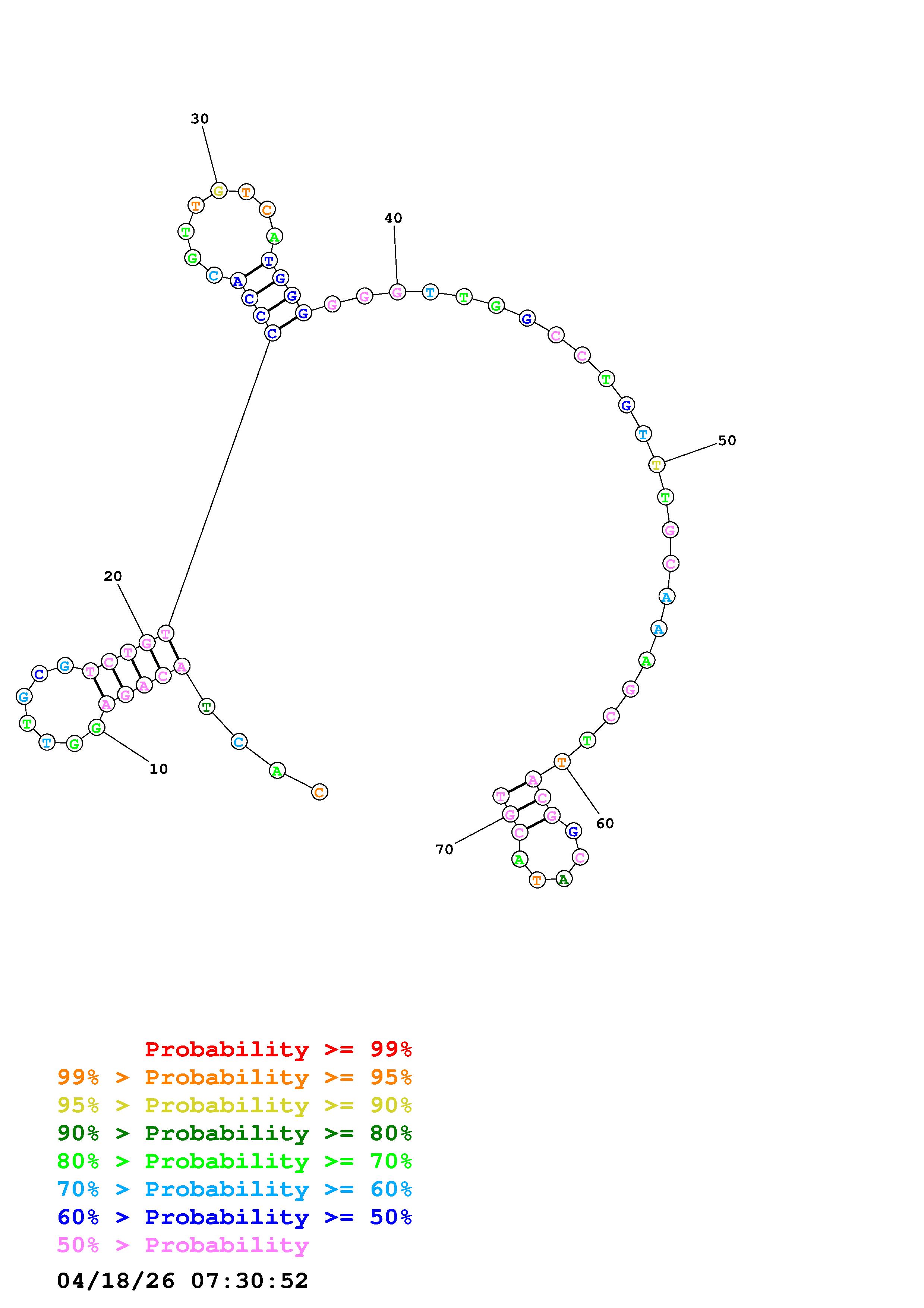 Fold Predict1.fasta Fold.ct --DNA --loop 30 --maximum 20 --percent 10 --temperature 310.15 --window 3