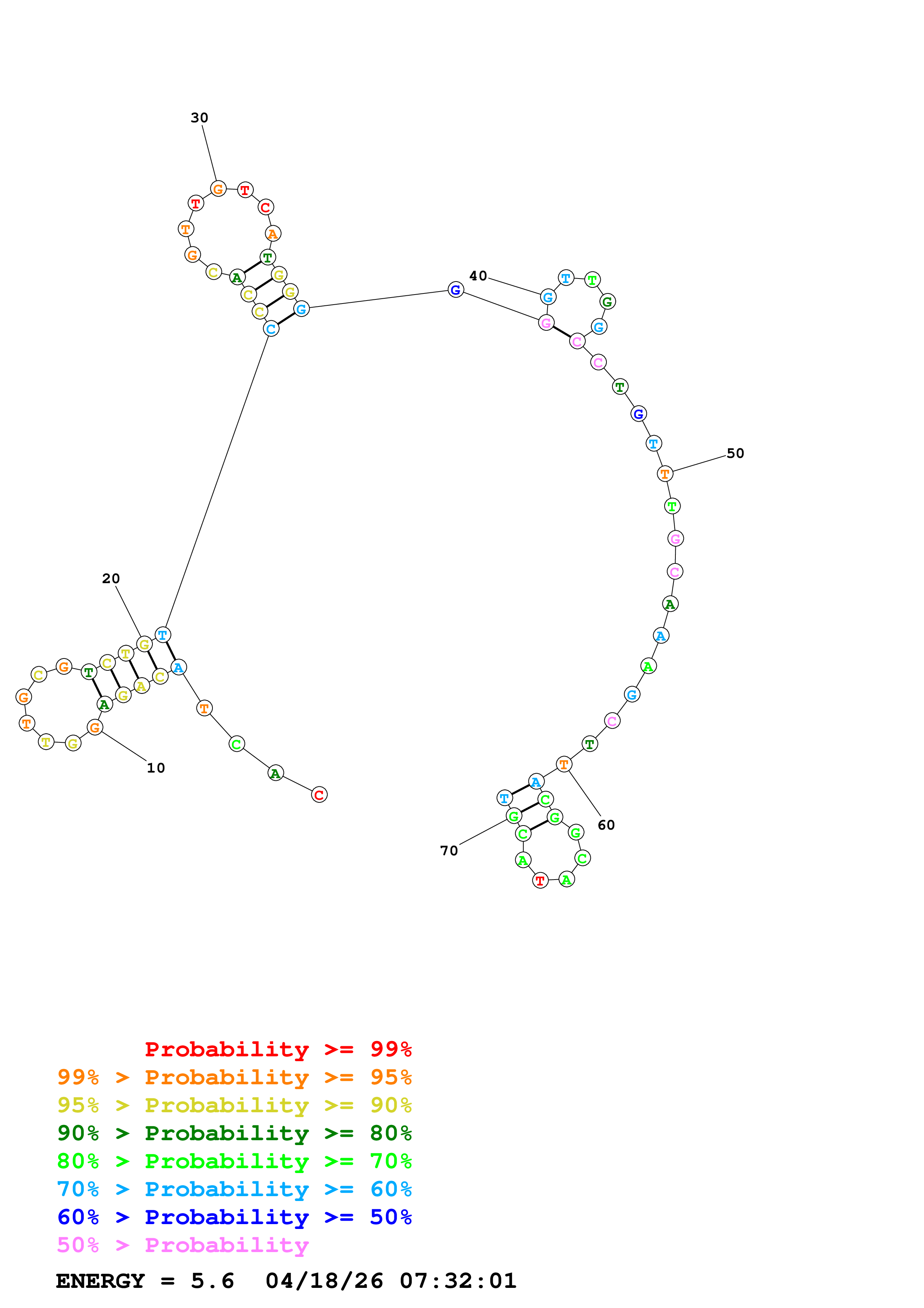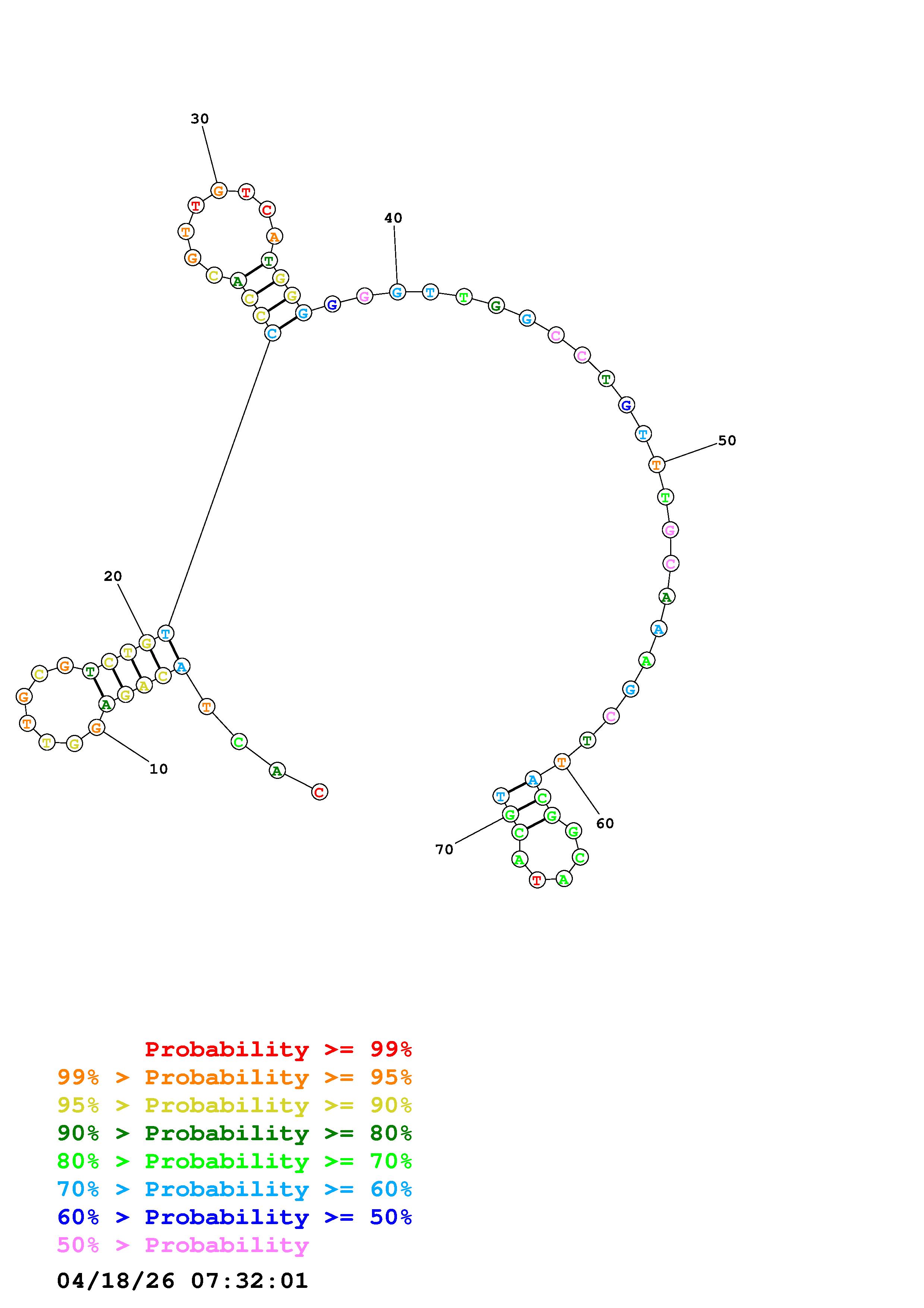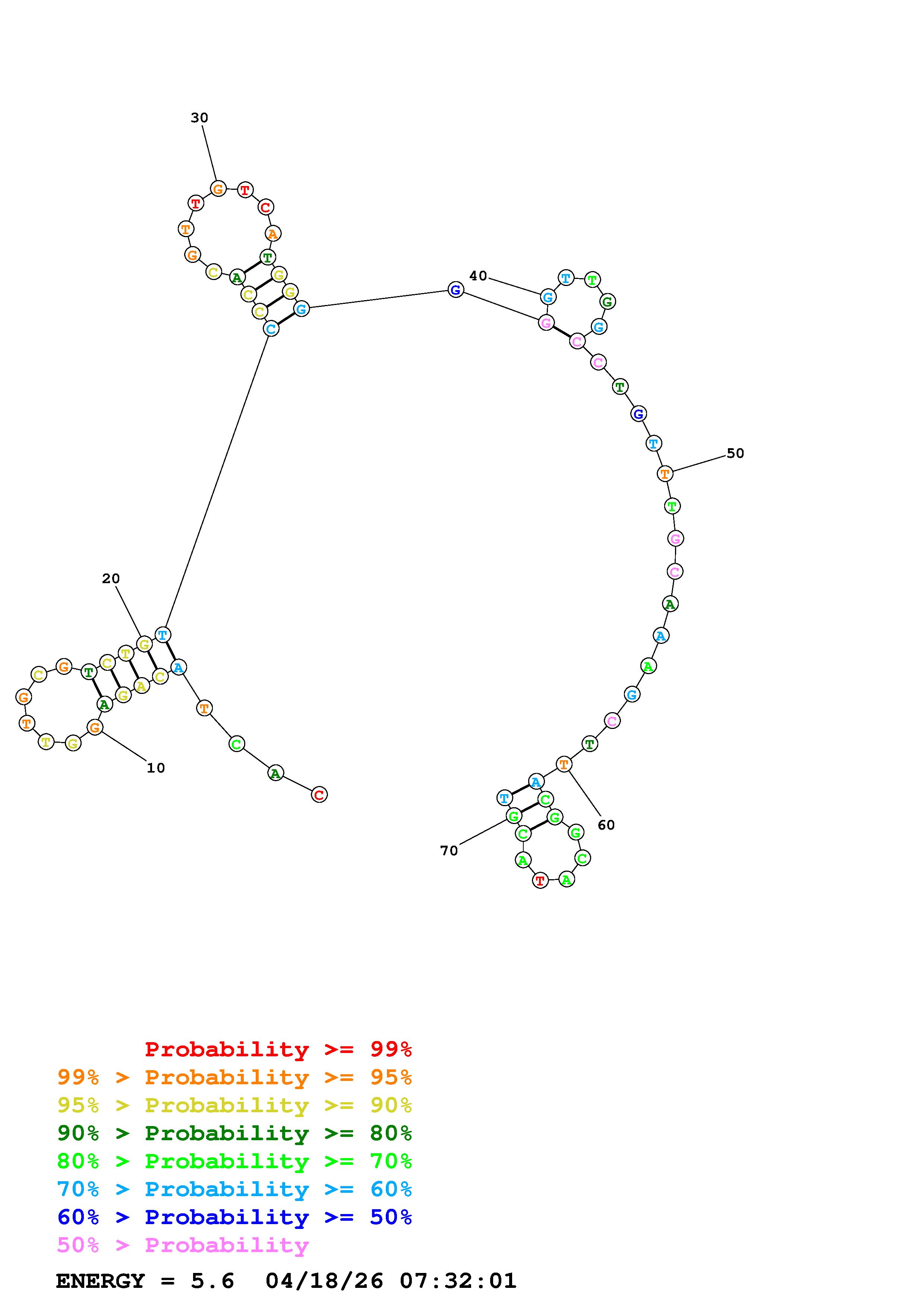 Fold Predict1.fasta Fold.ct --DNA --loop 30 --maximum 20 --percent 10 --temperature 280.15 --window 3