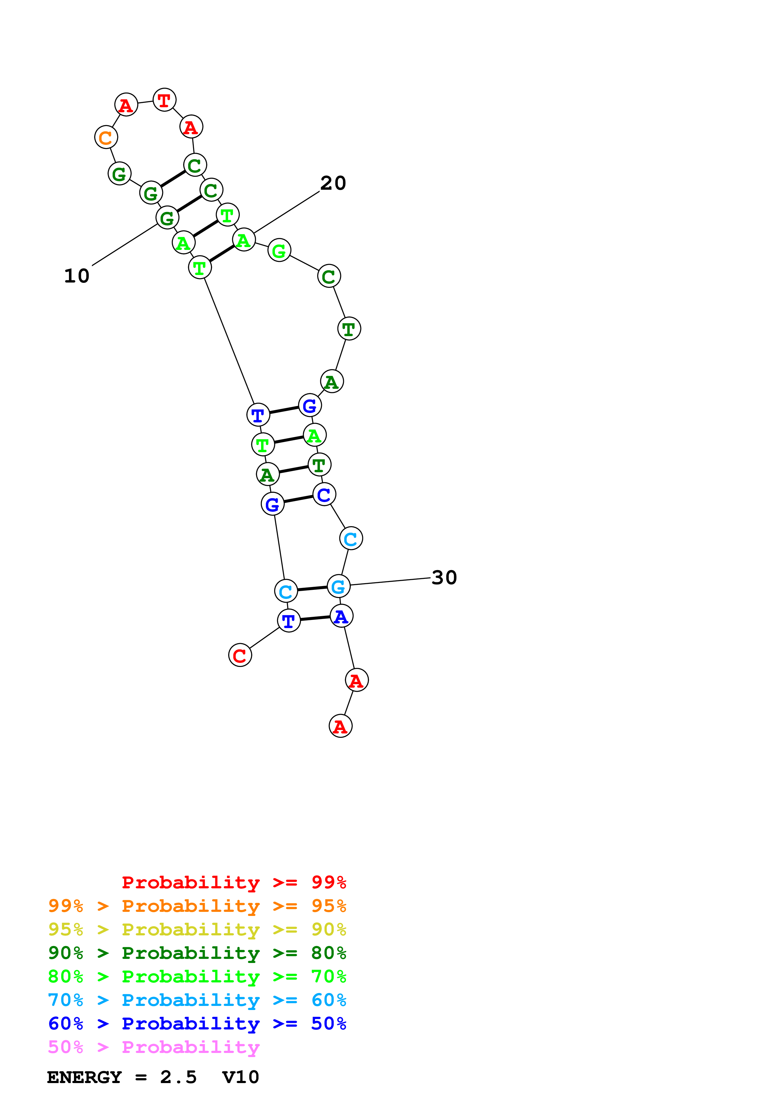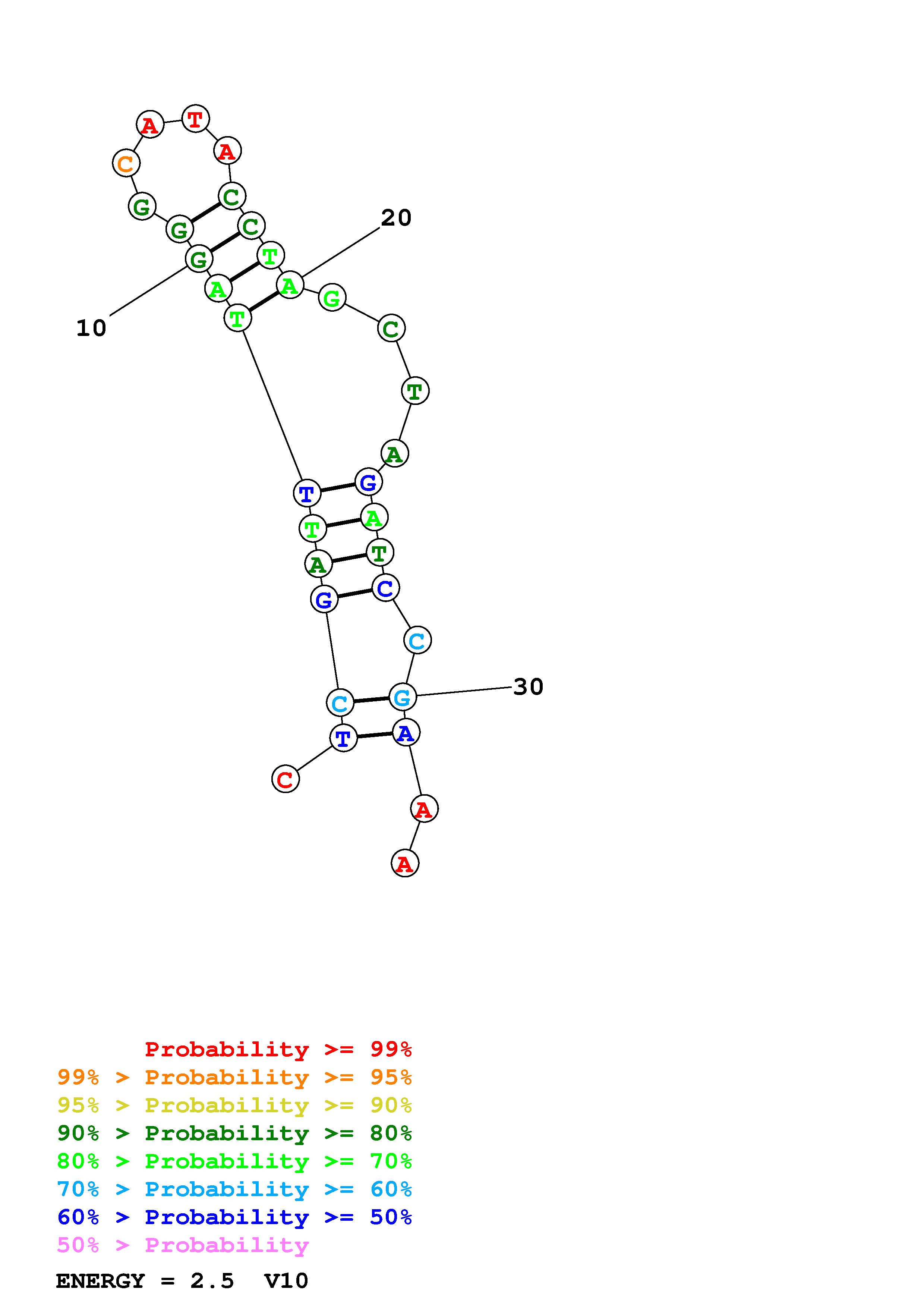 Fold Predict1.fasta Fold.ct --DNA --loop 30 --maximum 20 --percent 10 --temperature 298.15 --window 3