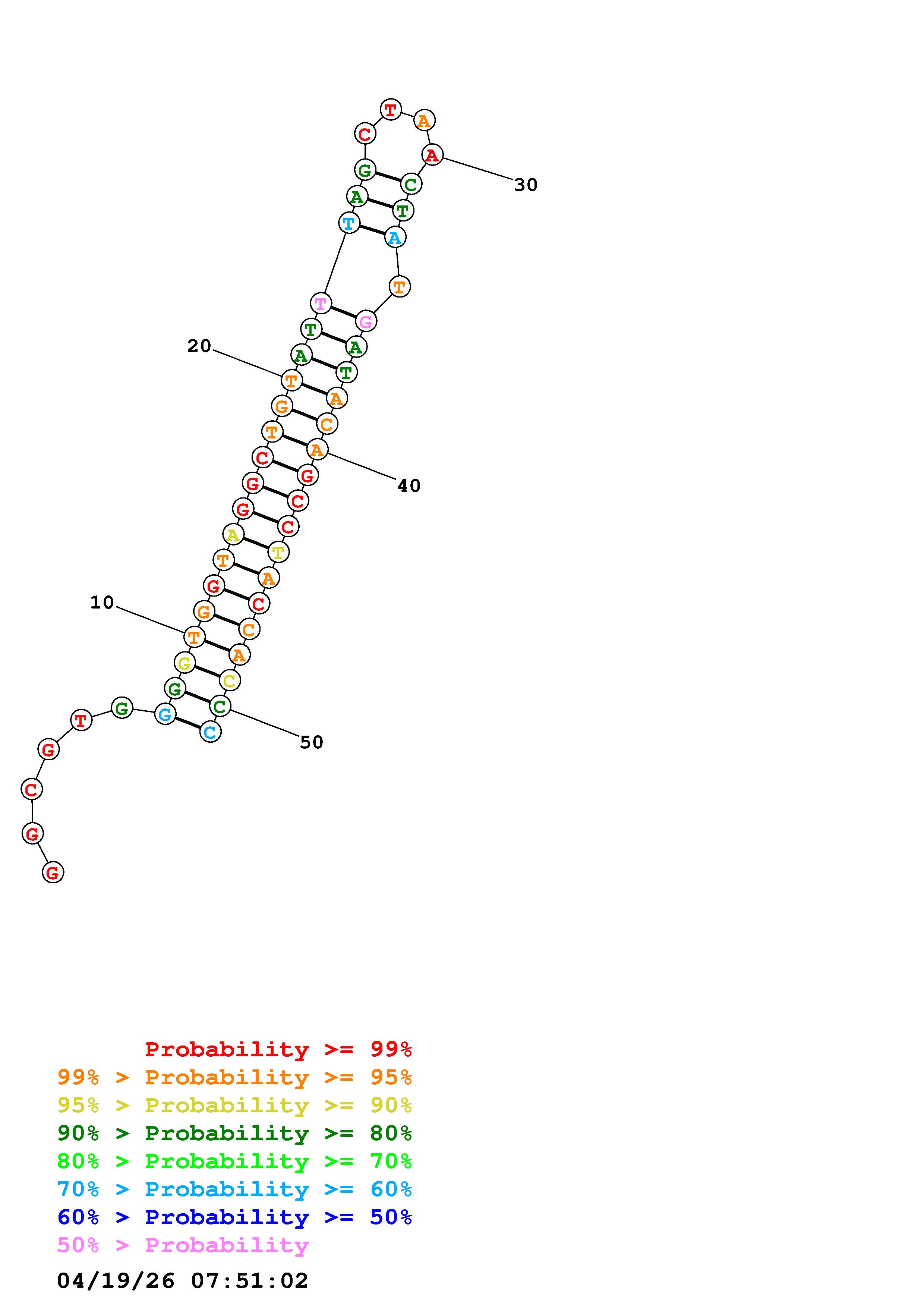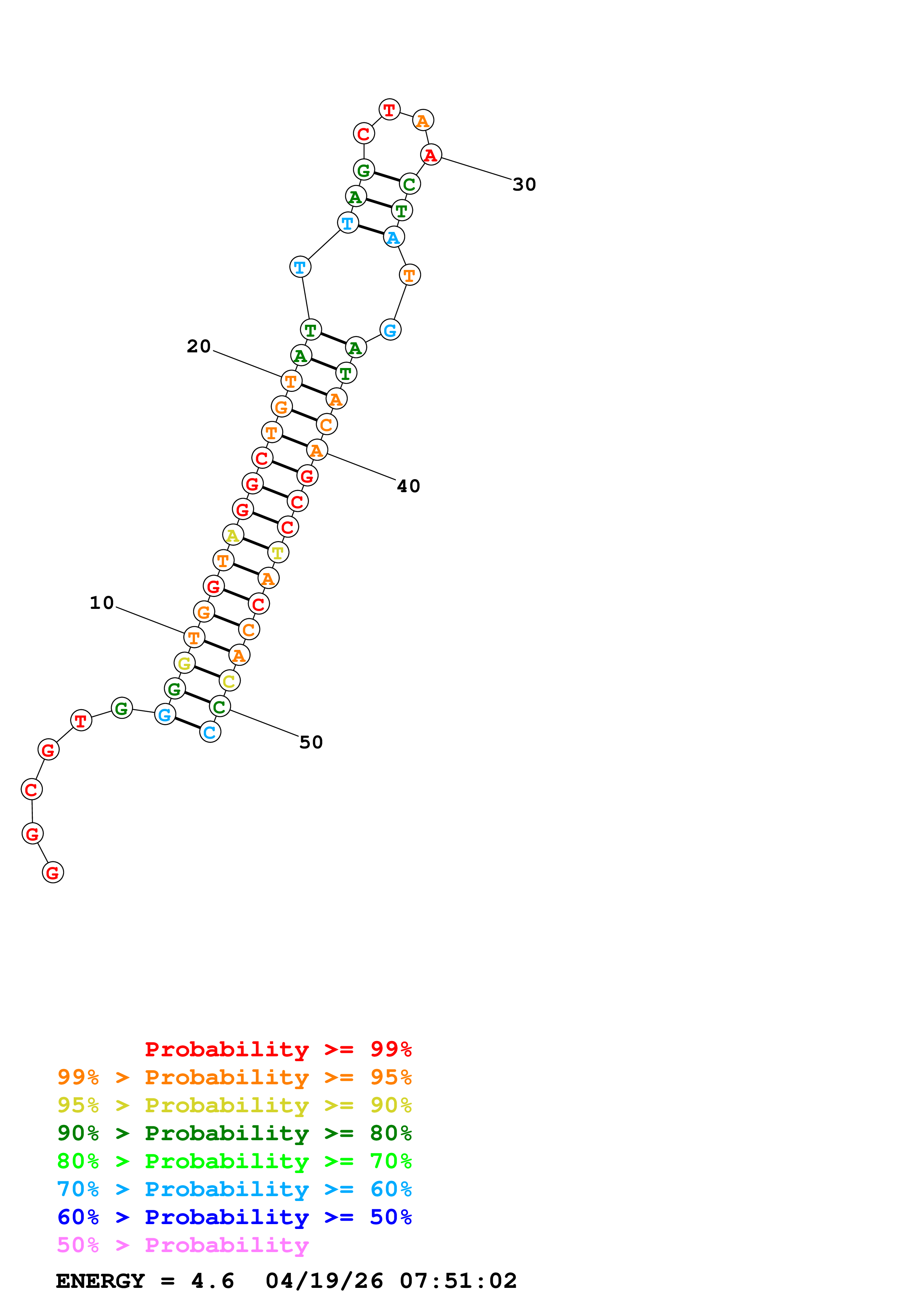 Fold Predict1.fasta Fold.ct --DNA --loop 30 --maximum 20 --percent 10 --temperature 330.15 --window 3