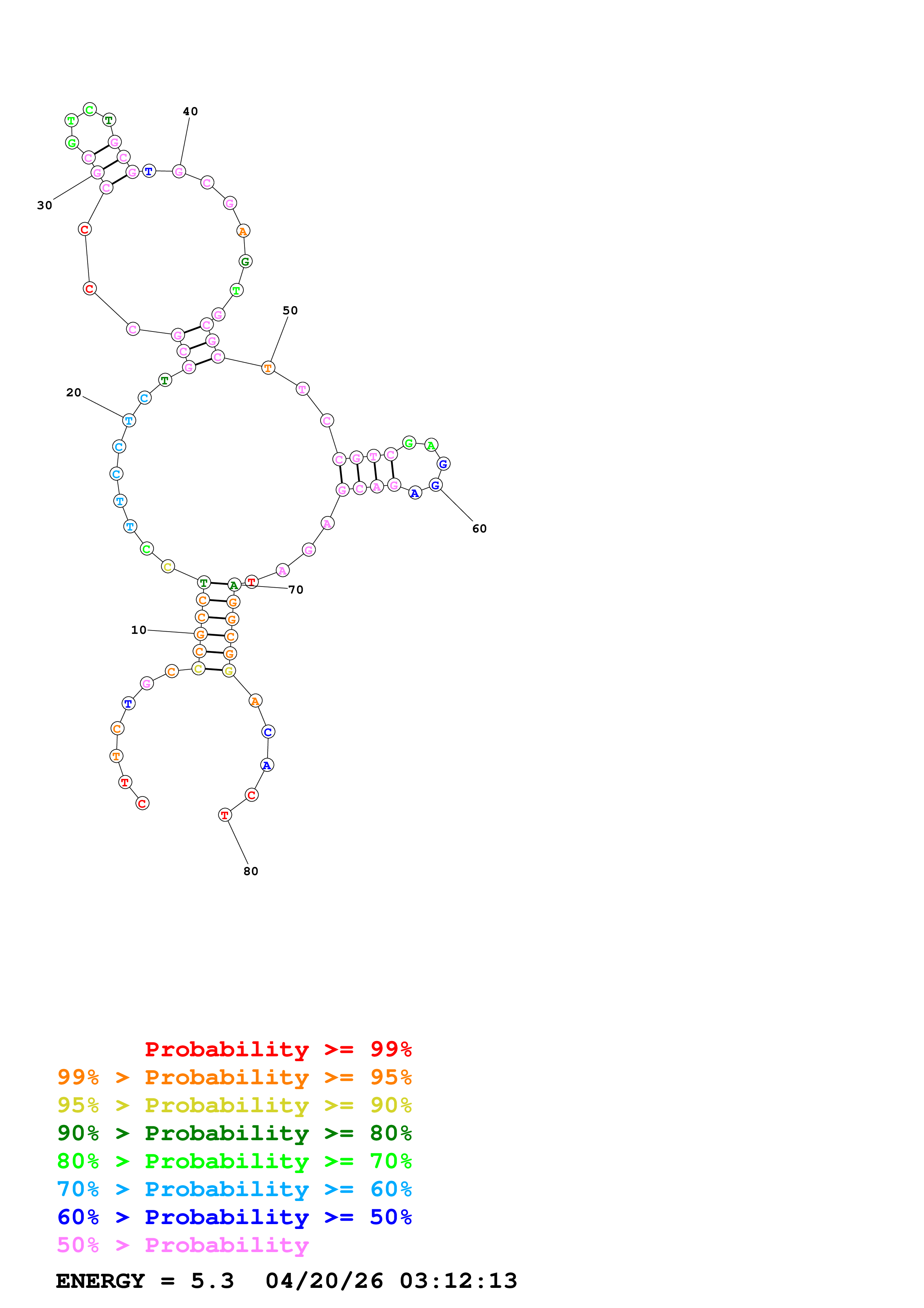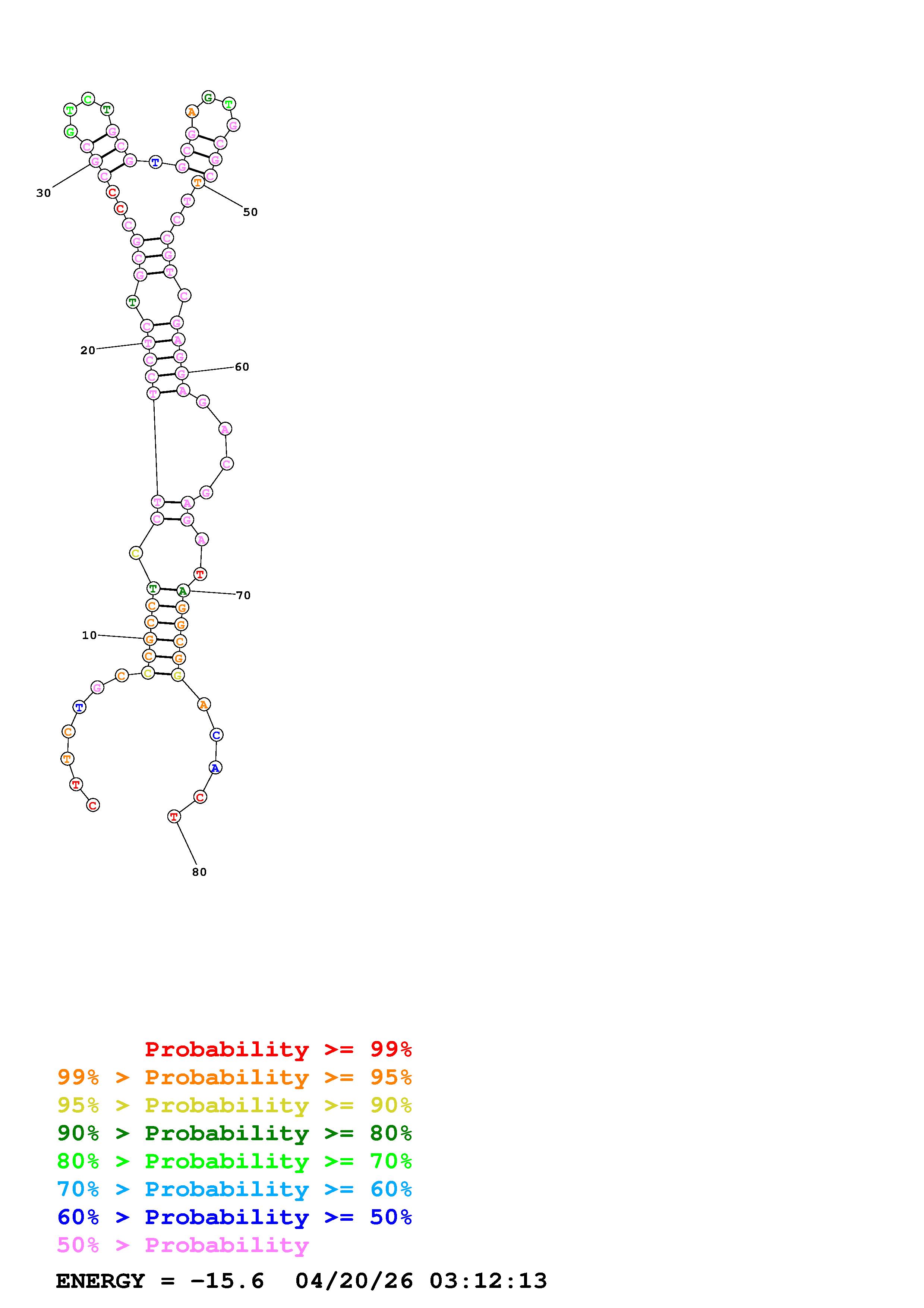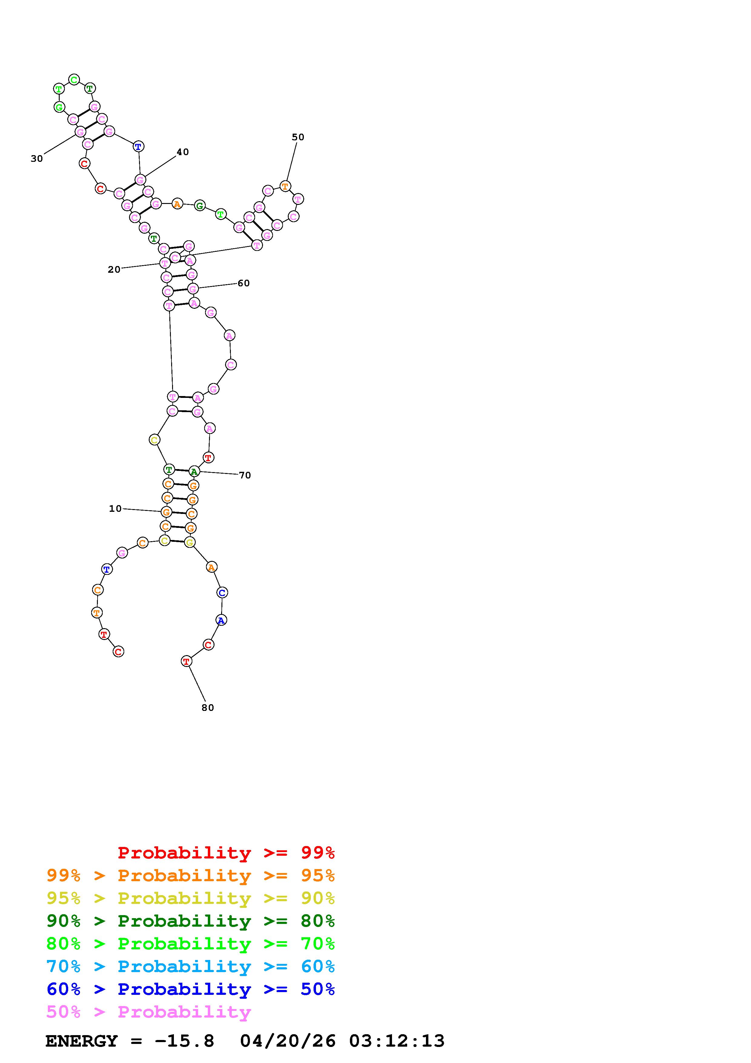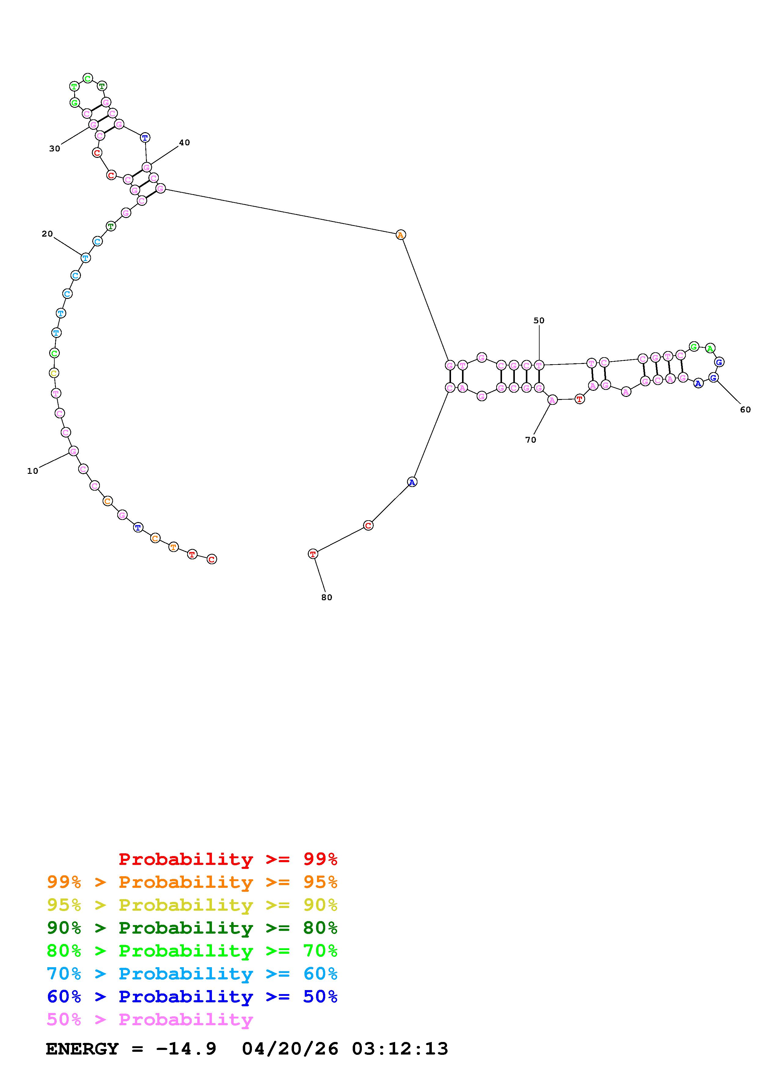 Fold Predict1.fasta Fold.ct --DNA --loop 30 --maximum 20 --percent 10 --temperature 310.15 --window 3