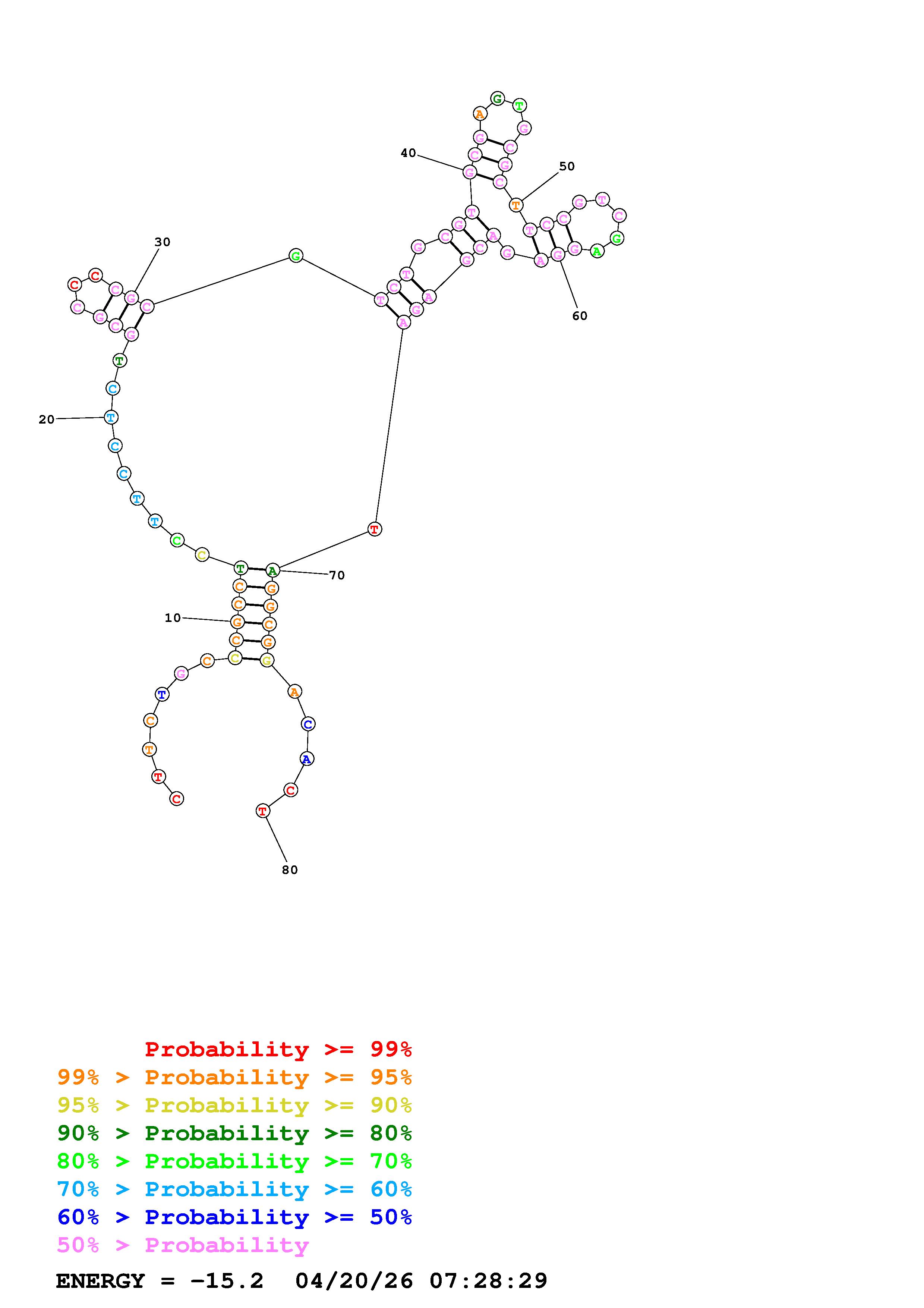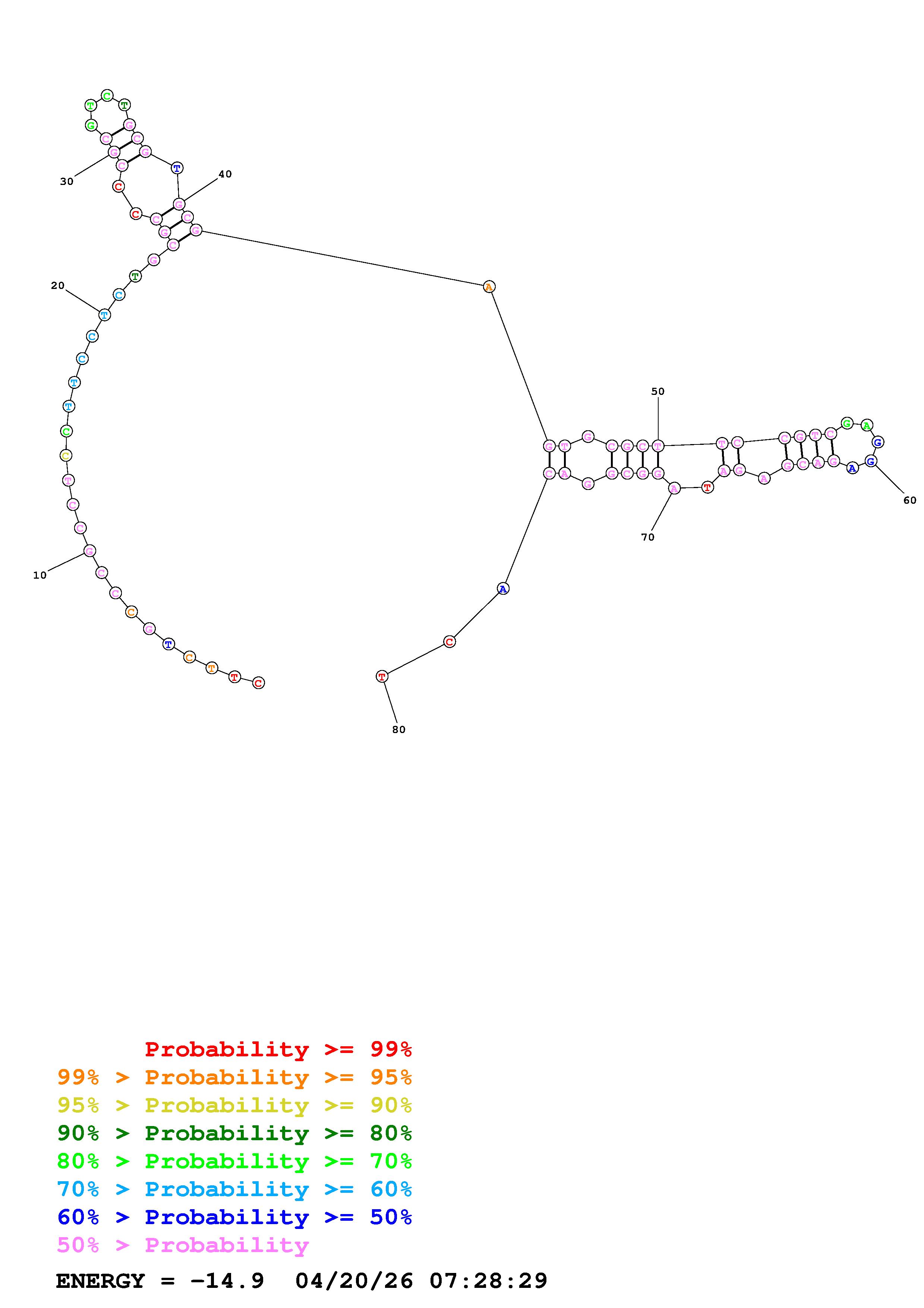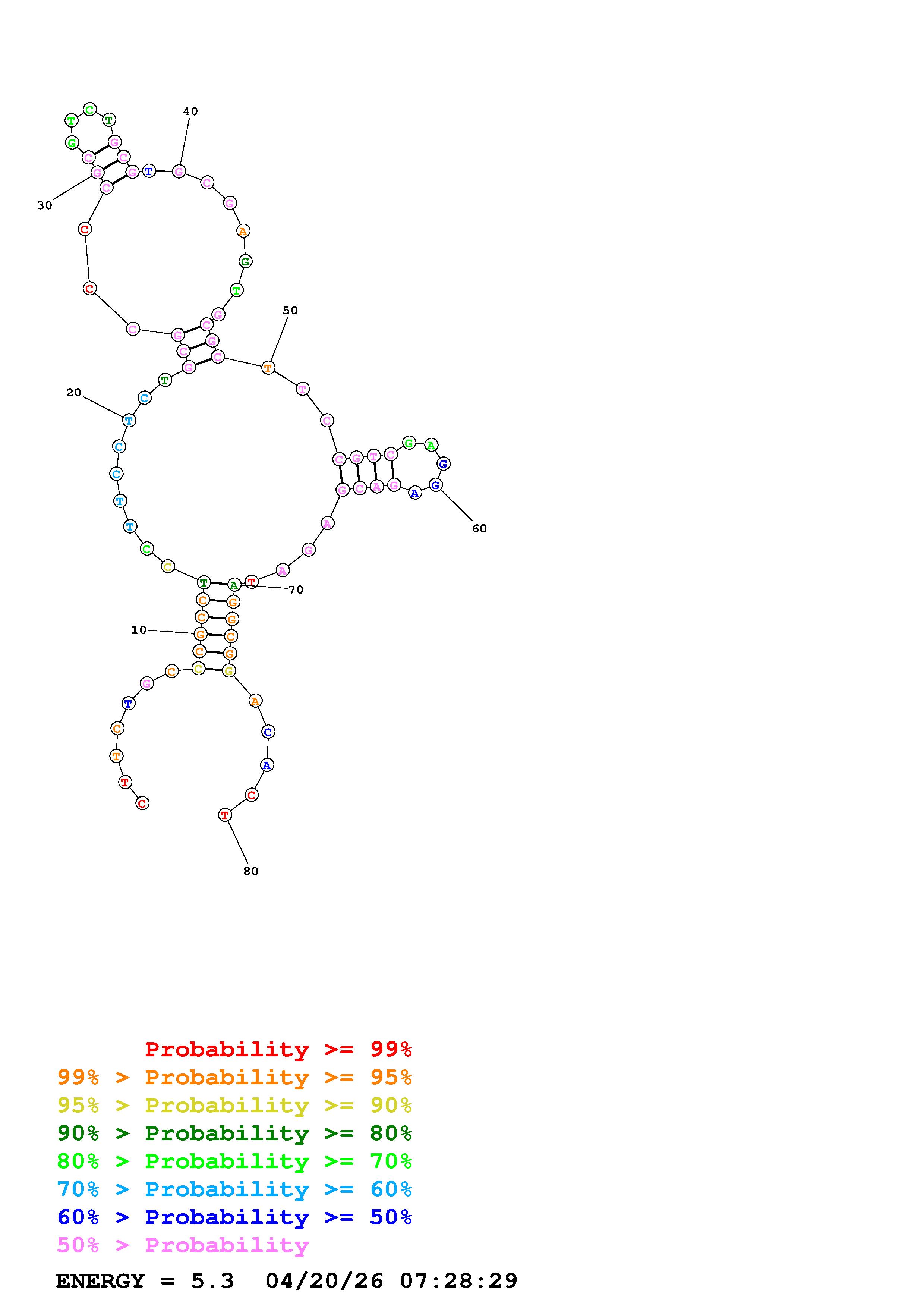 Fold Predict1.fasta Fold.ct --DNA --loop 30 --maximum 20 --percent 10 --temperature 310.15 --window 3