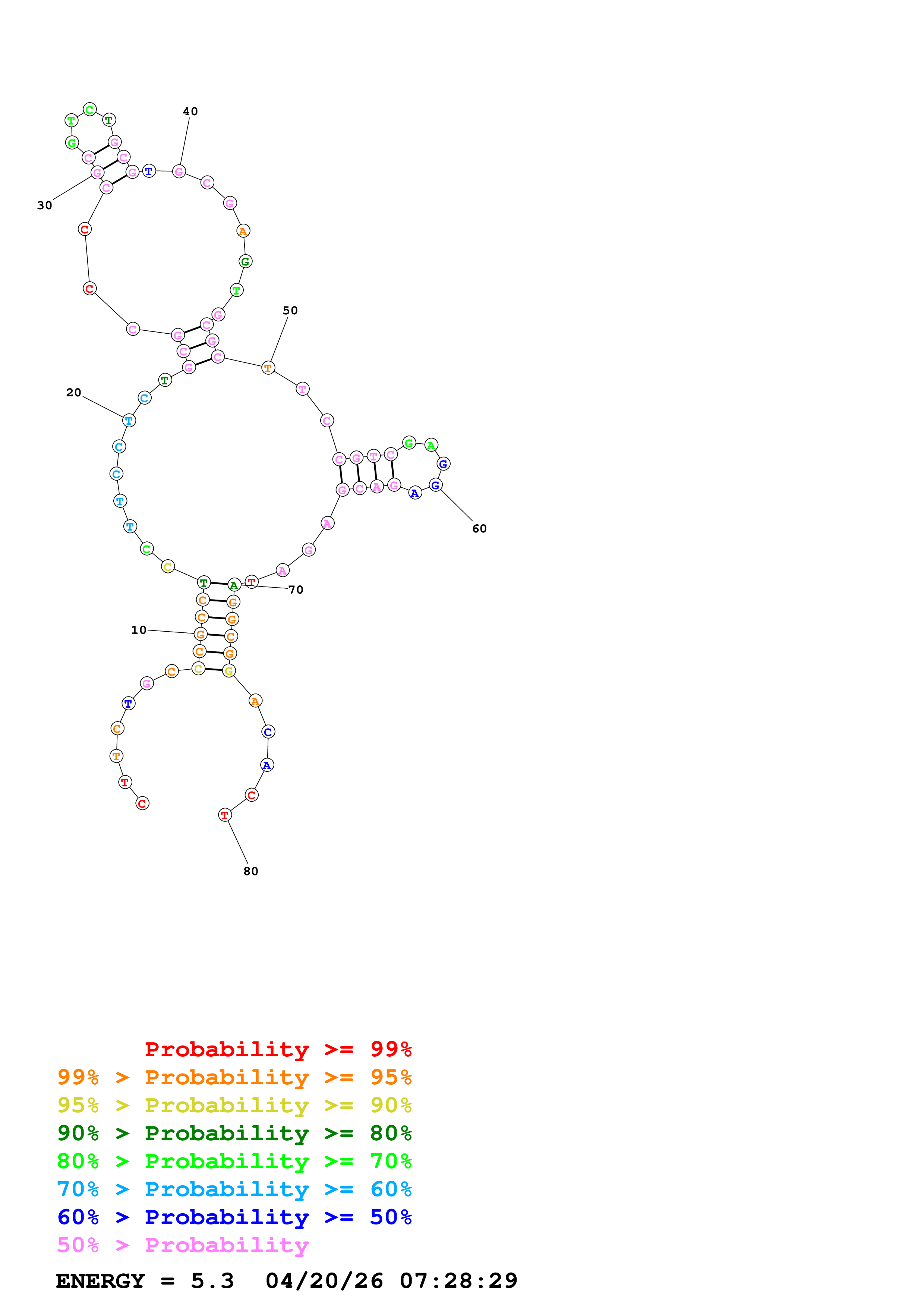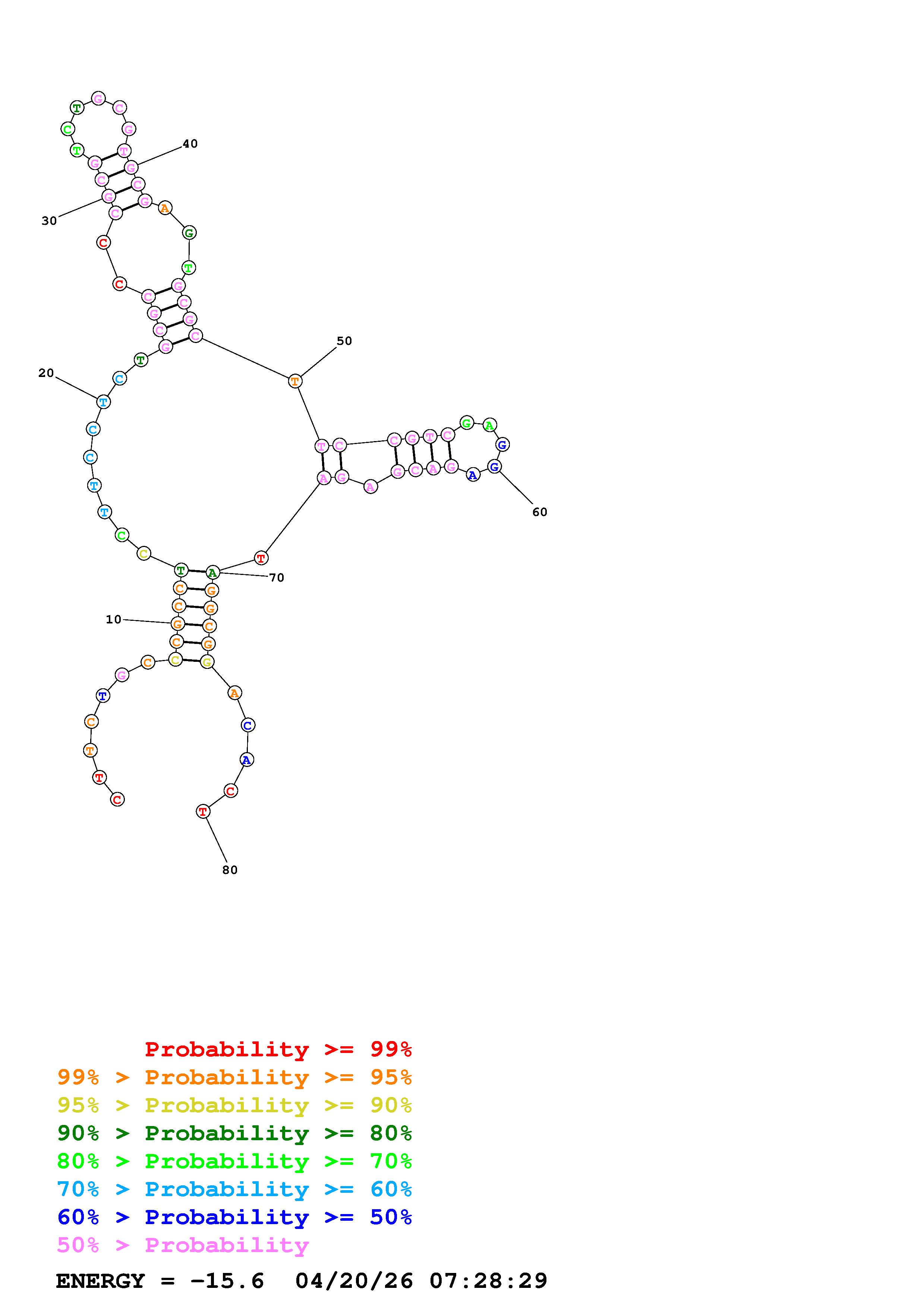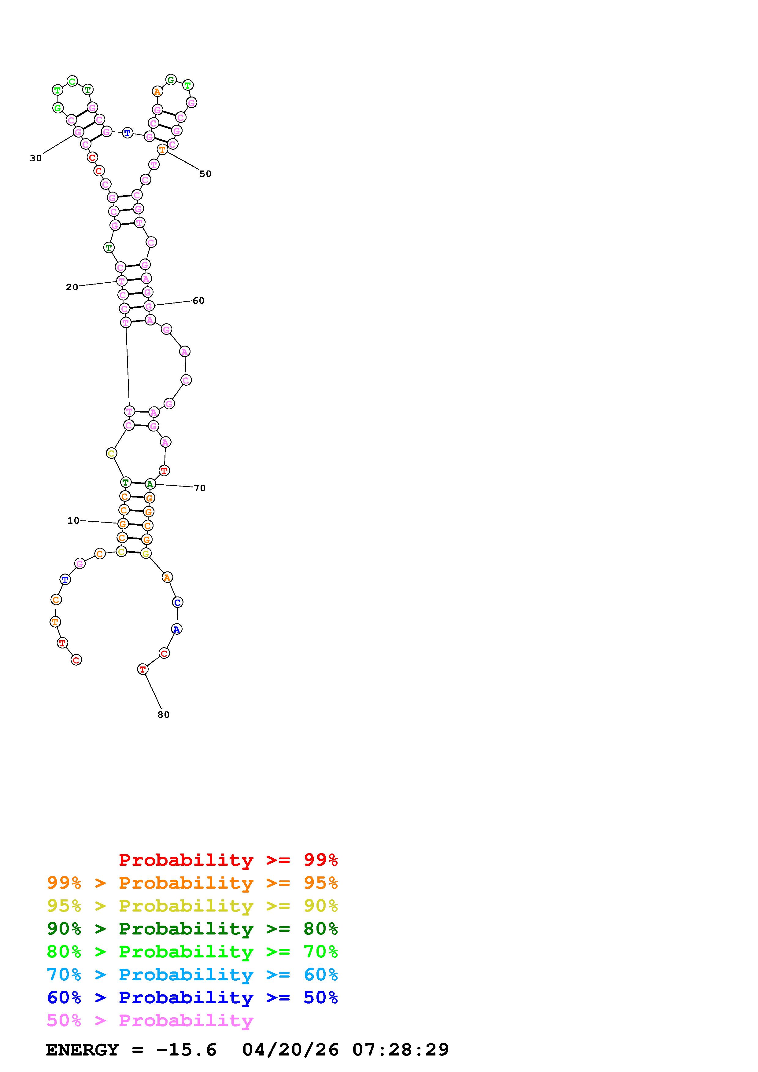 Fold Predict1.fasta Fold.ct --DNA --loop 30 --maximum 20 --percent 10 --temperature 310.15 --window 3