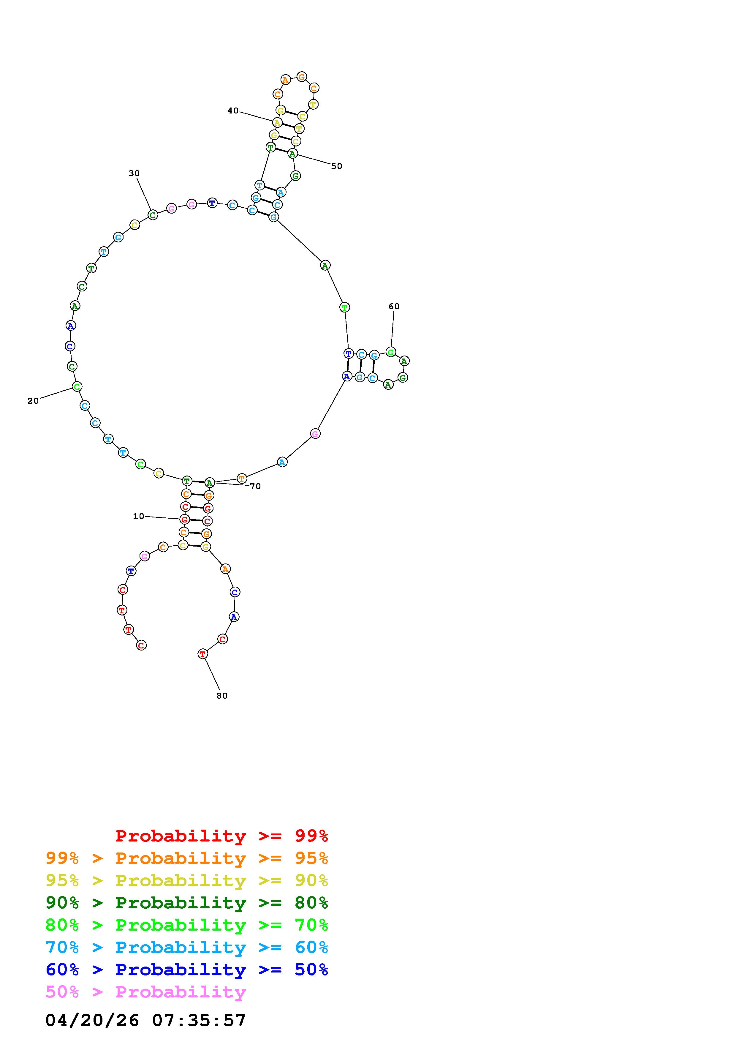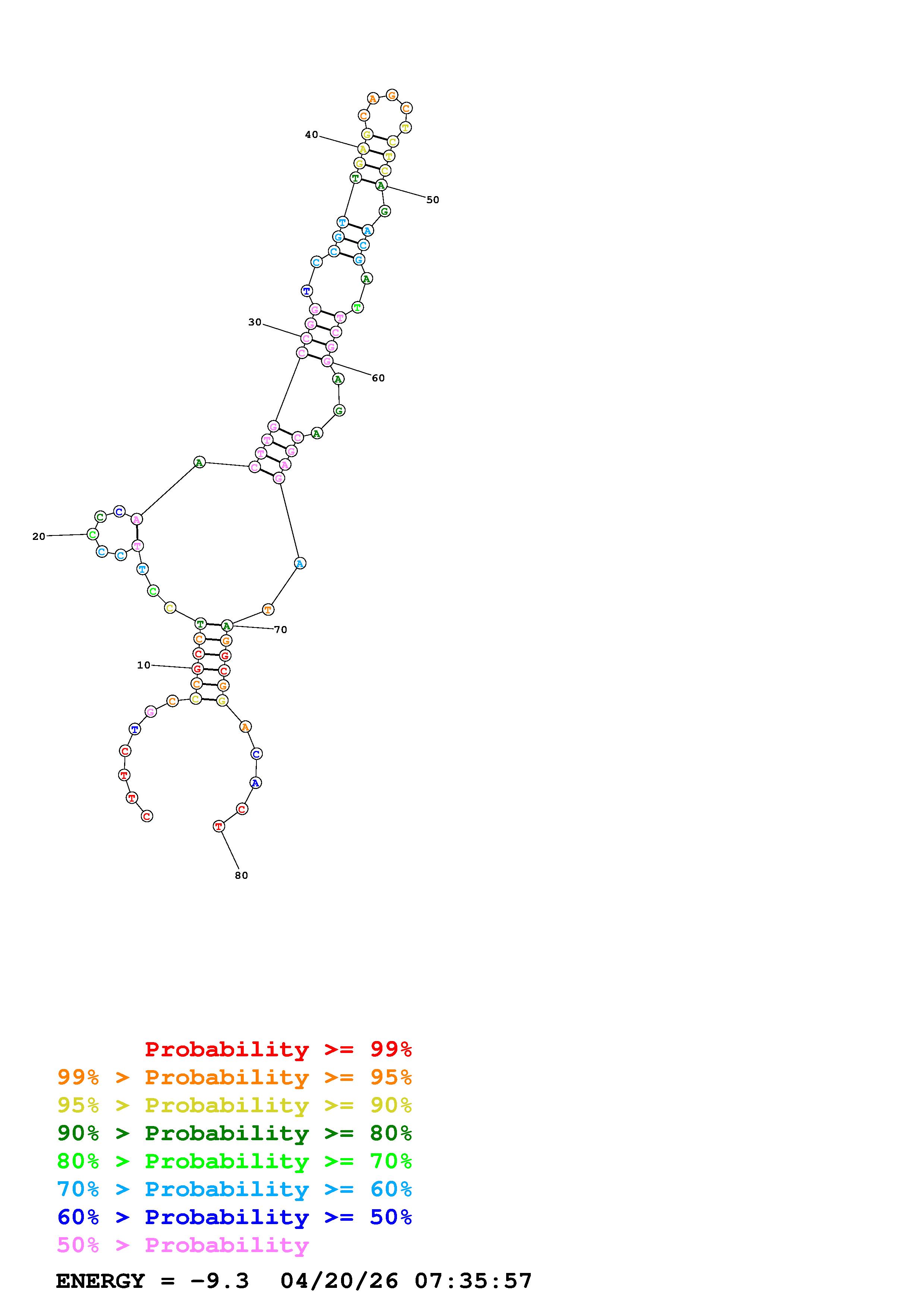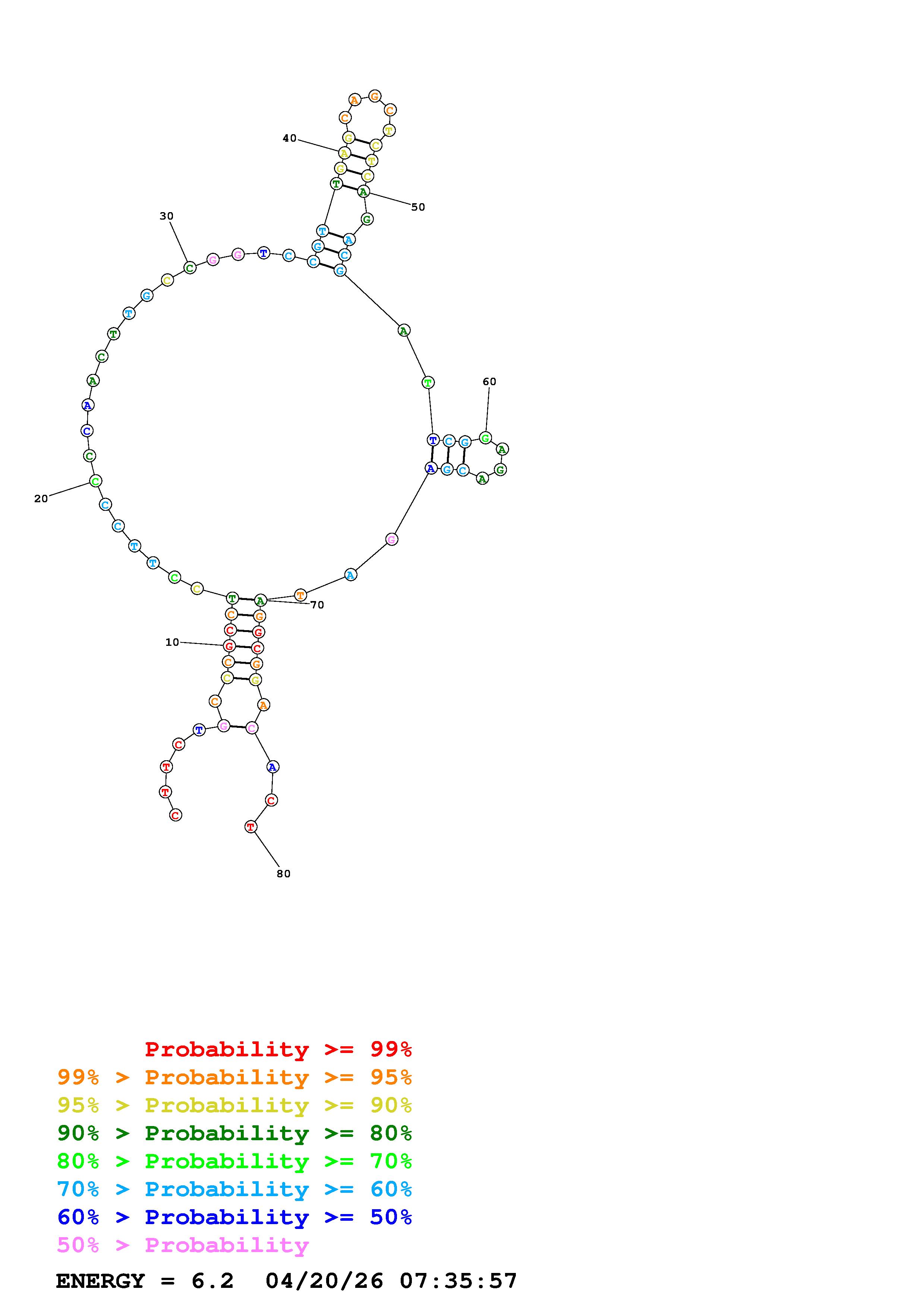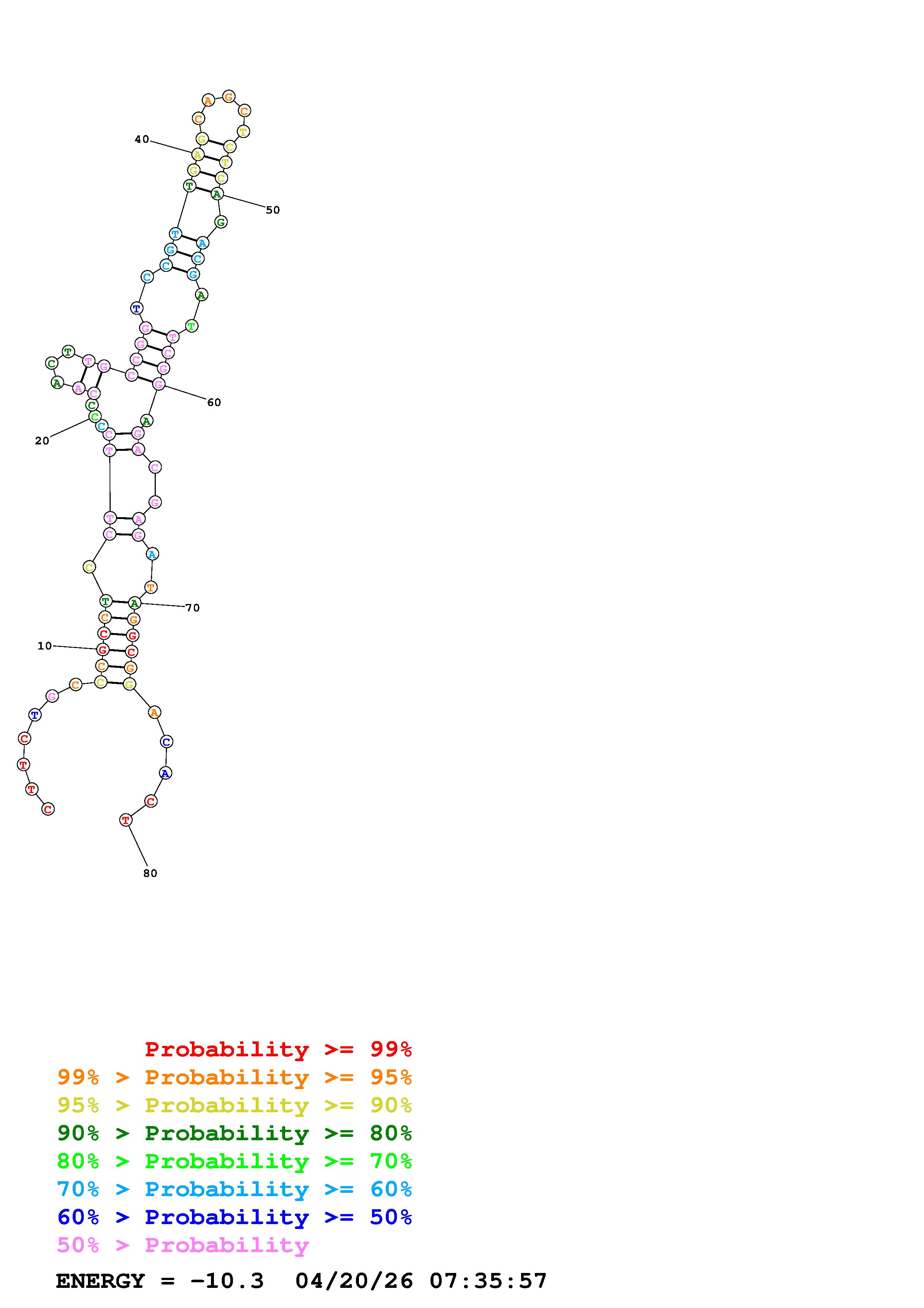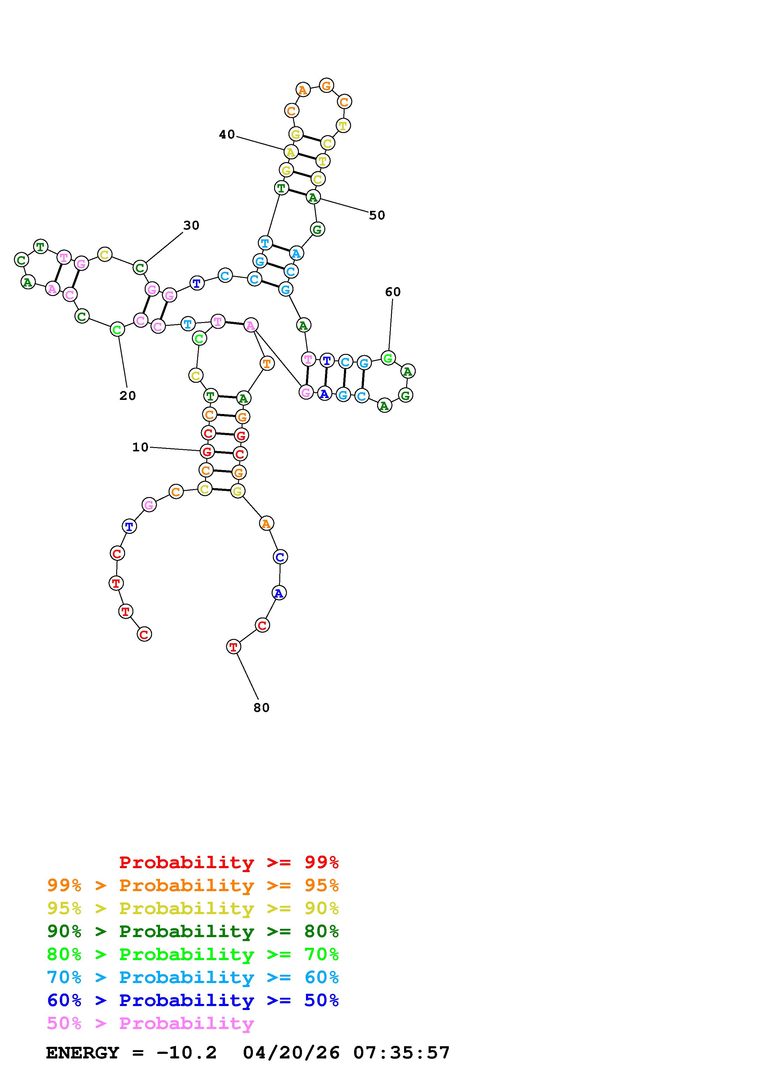 Fold Predict1.fasta Fold.ct --DNA --loop 30 --maximum 20 --percent 10 --temperature 310.15 --window 3