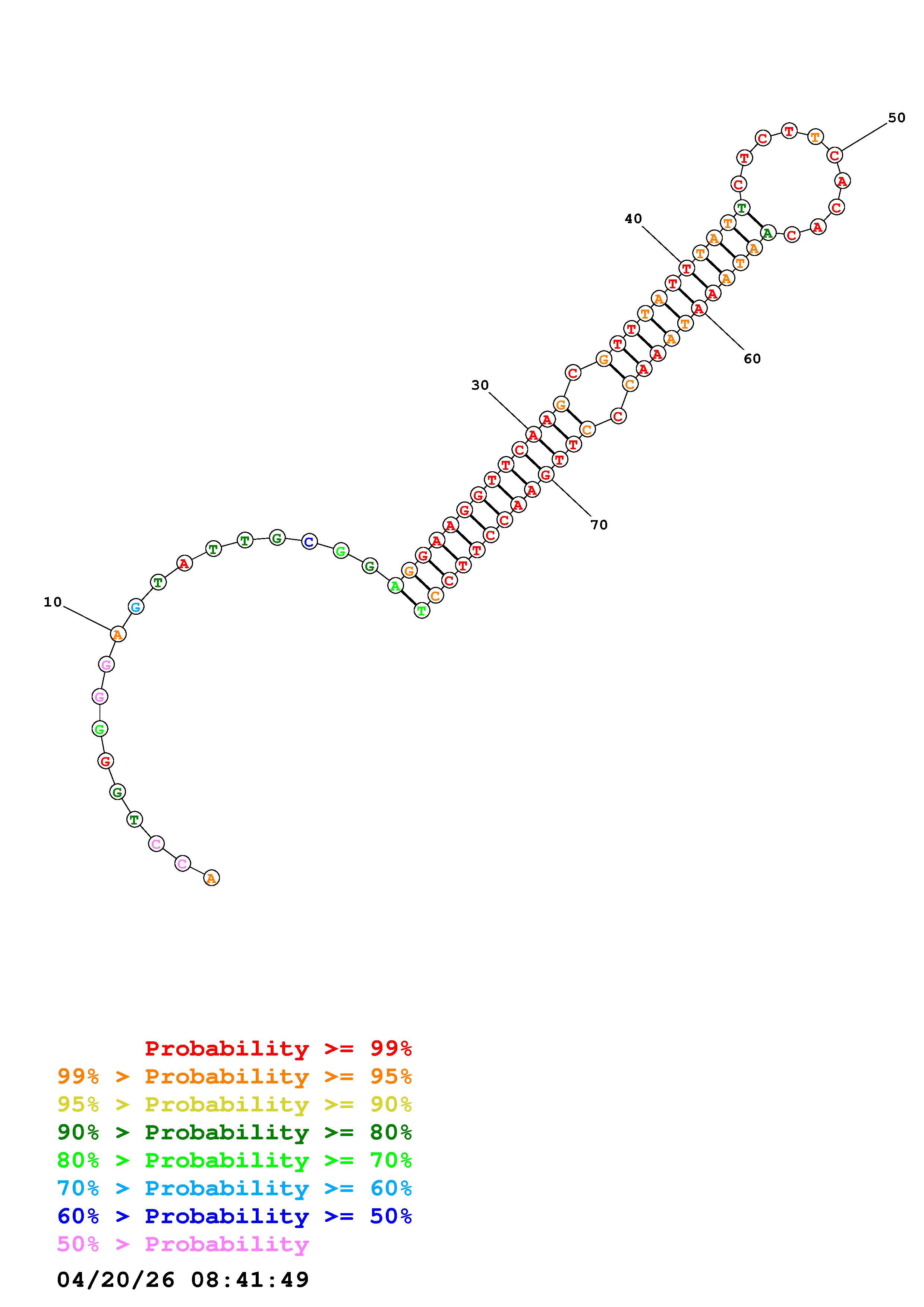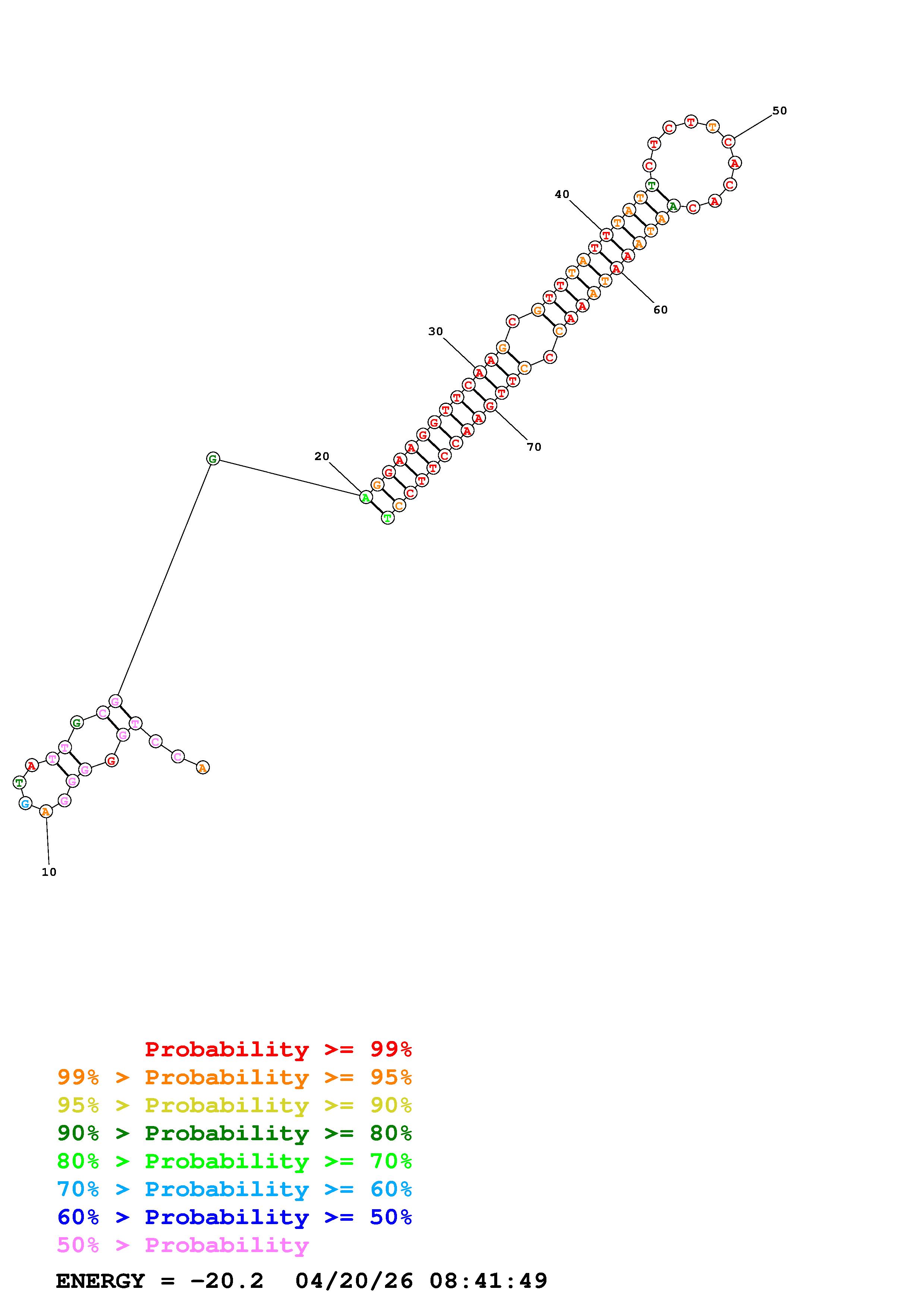 Fold Predict1.fasta Fold.ct --DNA --loop 30 --maximum 20 --percent 10 --temperature 310.15 --window 3