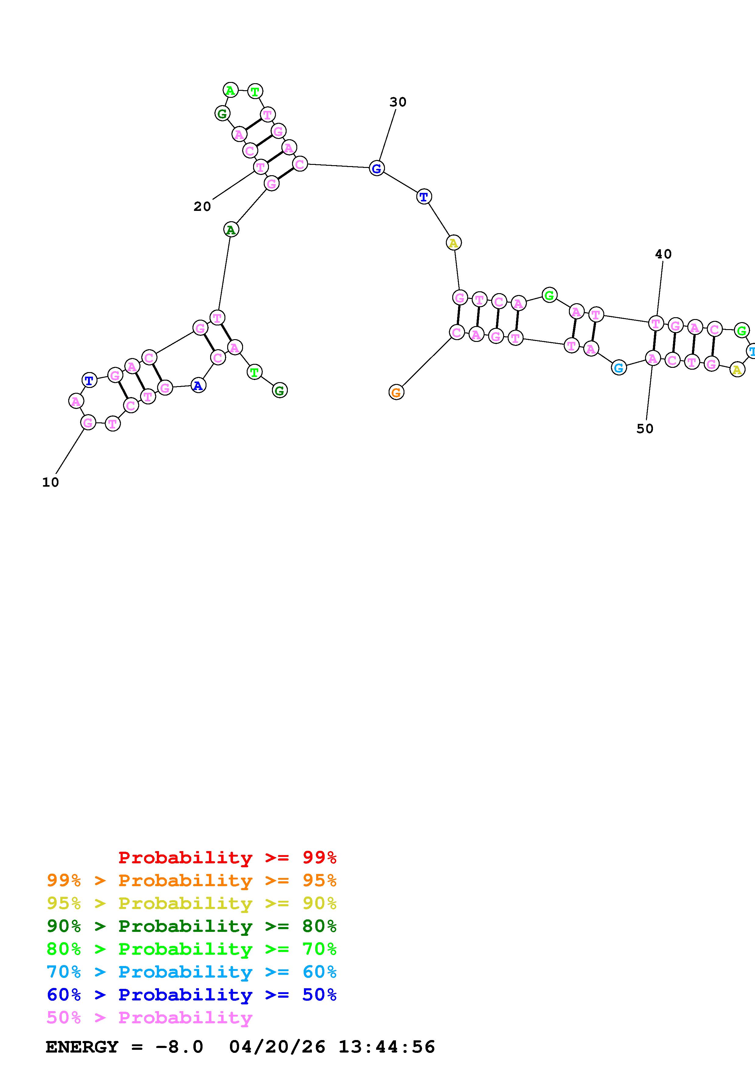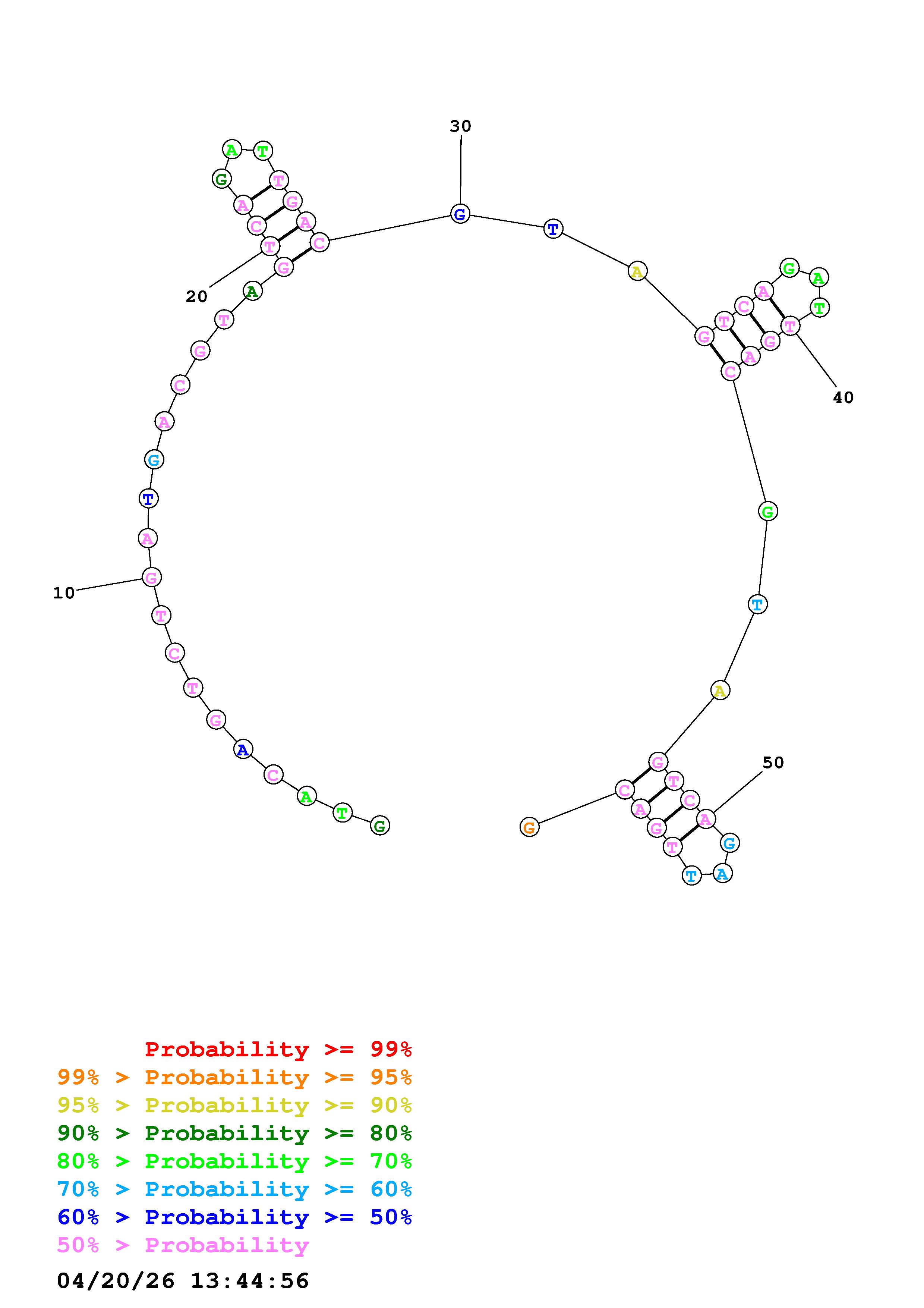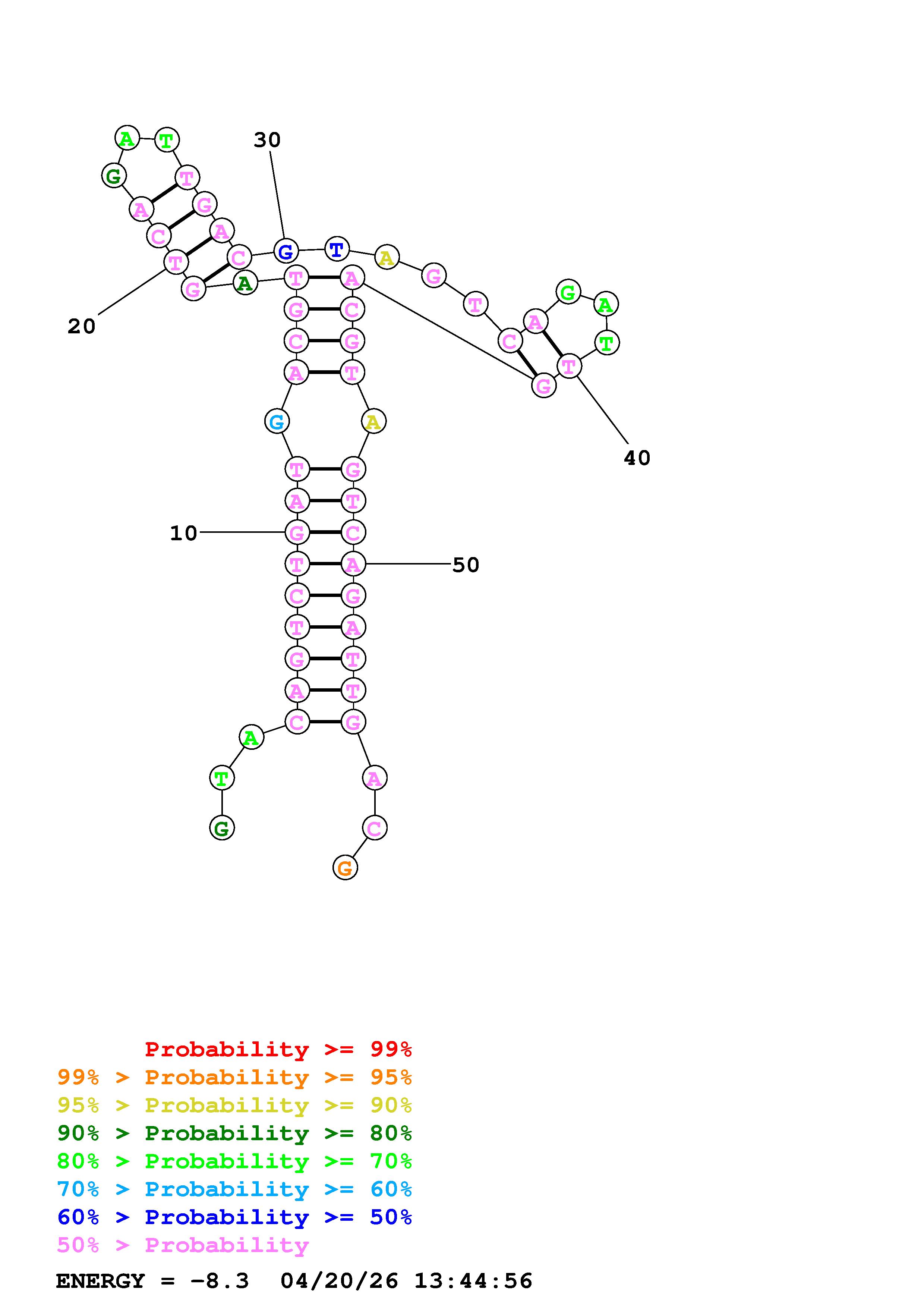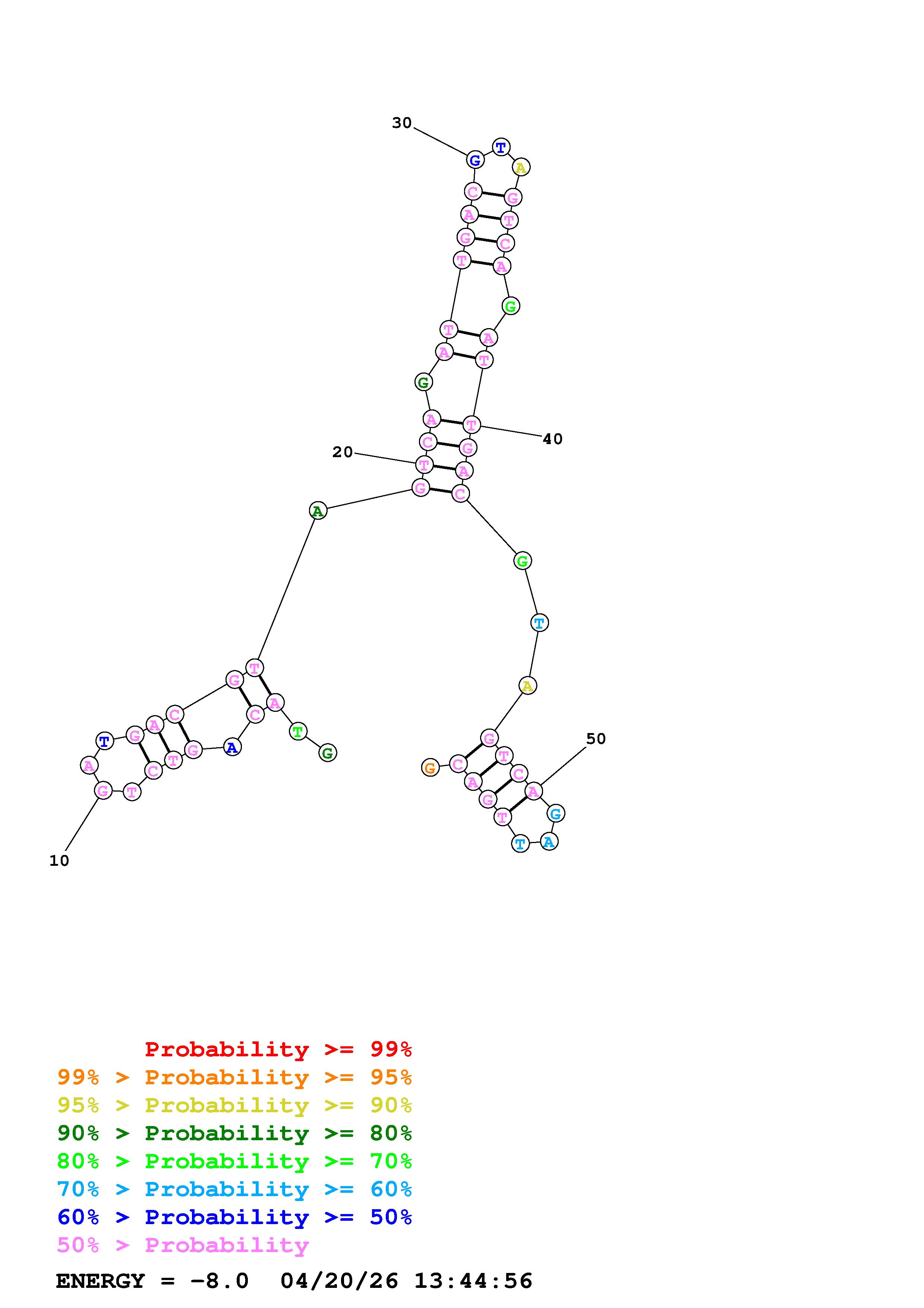 Fold Predict1.fasta Fold.ct --DNA --loop 30 --maximum 20 --percent 10 --temperature 310.15 --window 3