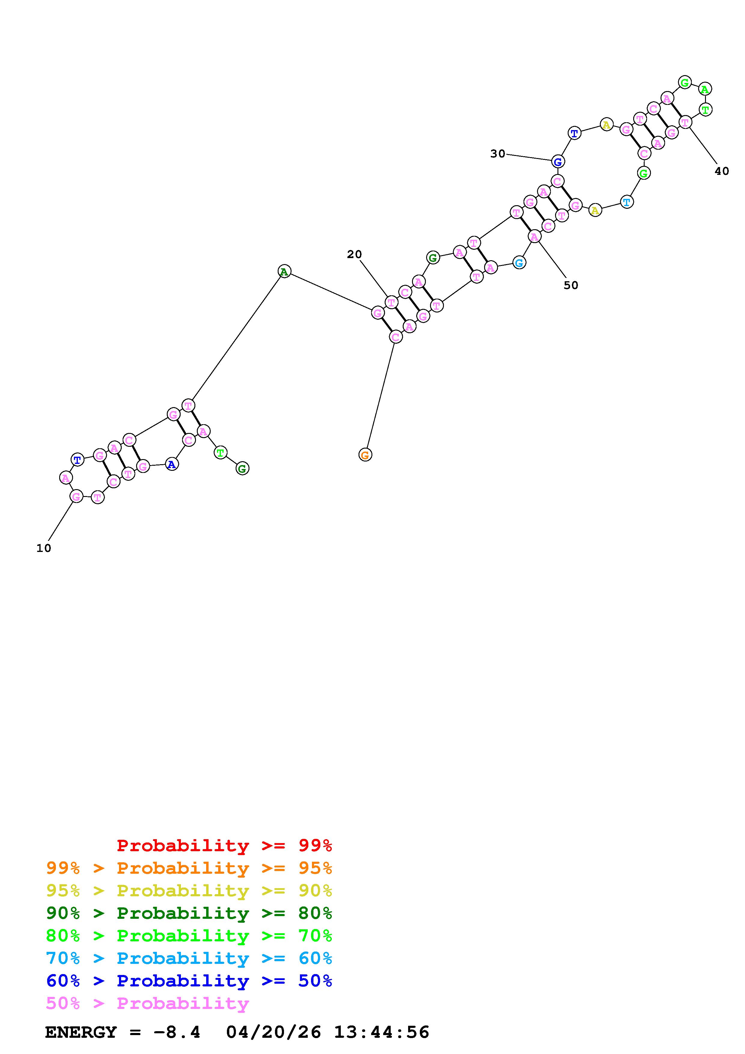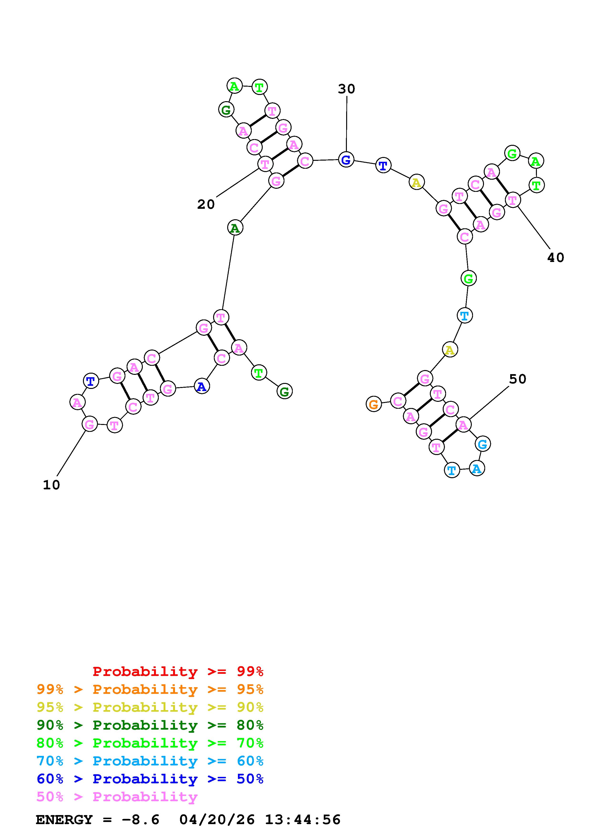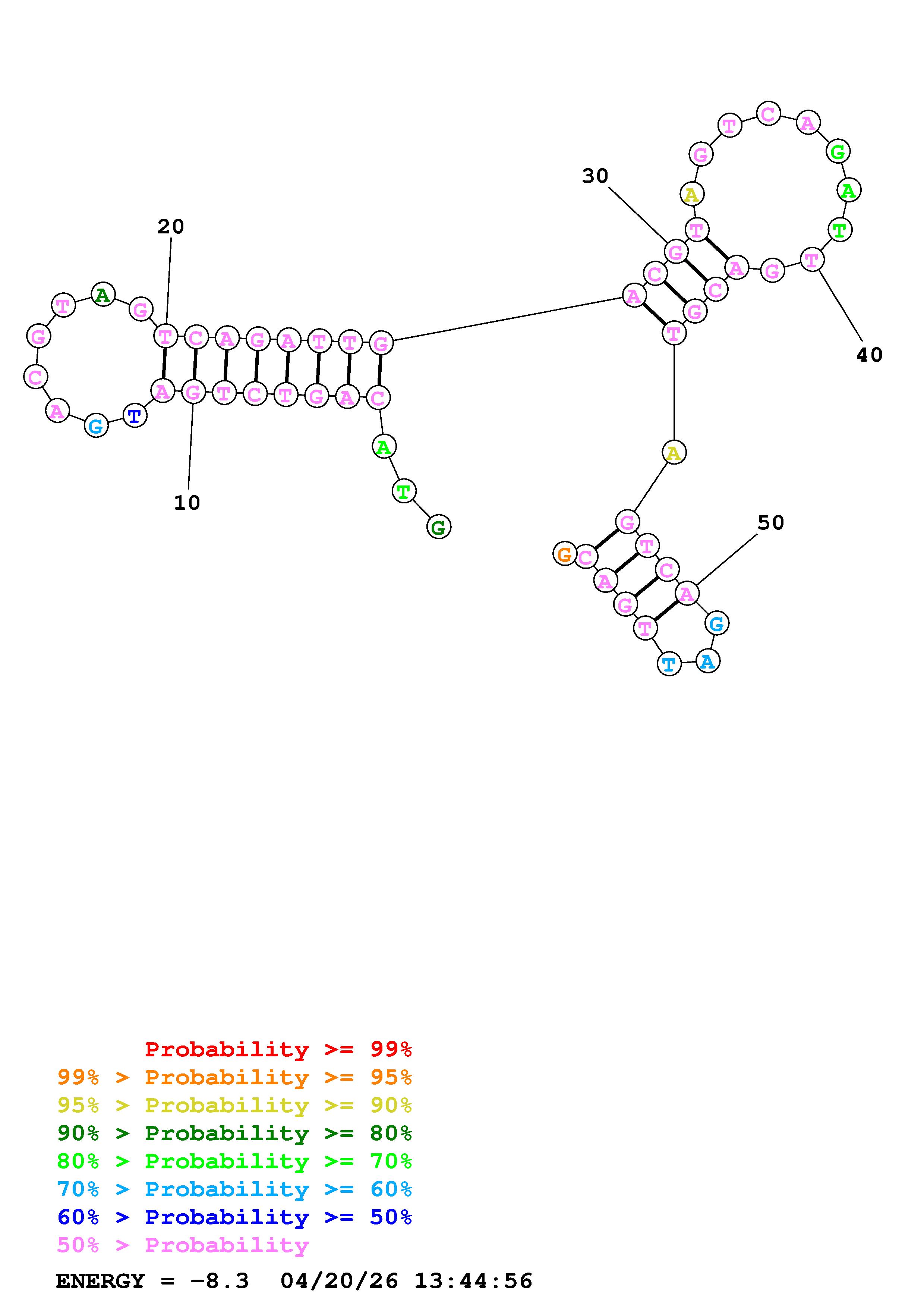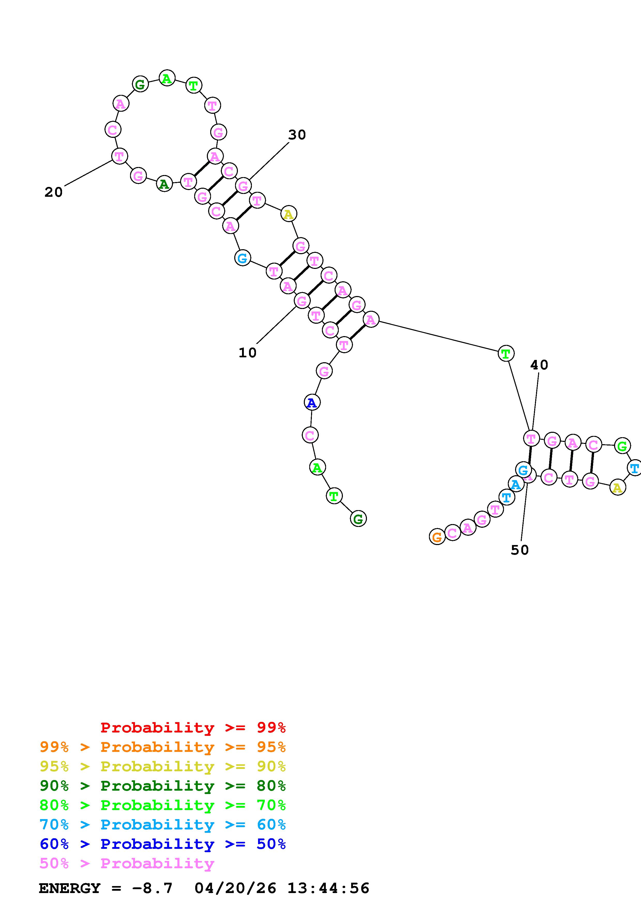 Fold Predict1.fasta Fold.ct --DNA --loop 30 --maximum 20 --percent 10 --temperature 310.15 --window 3