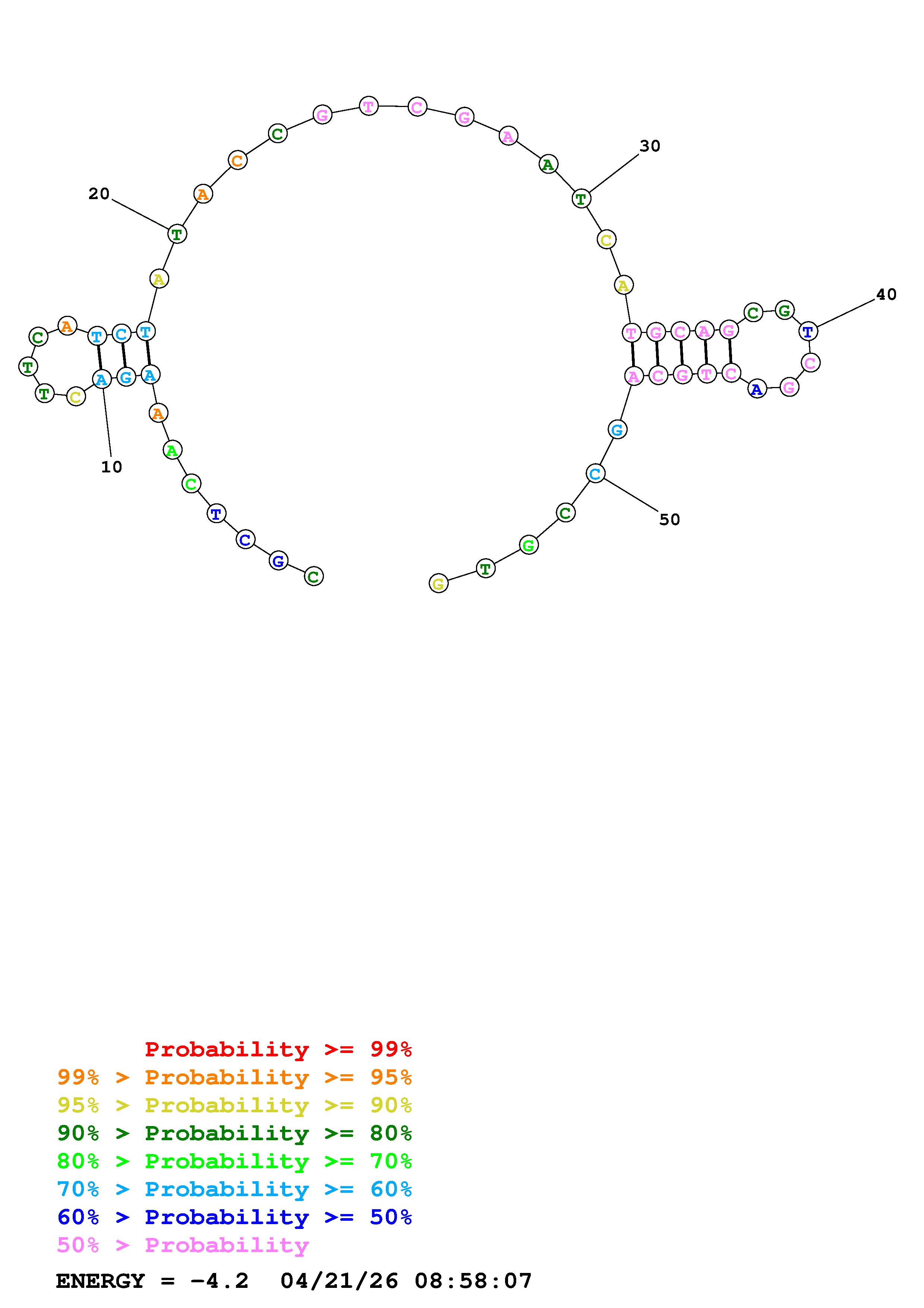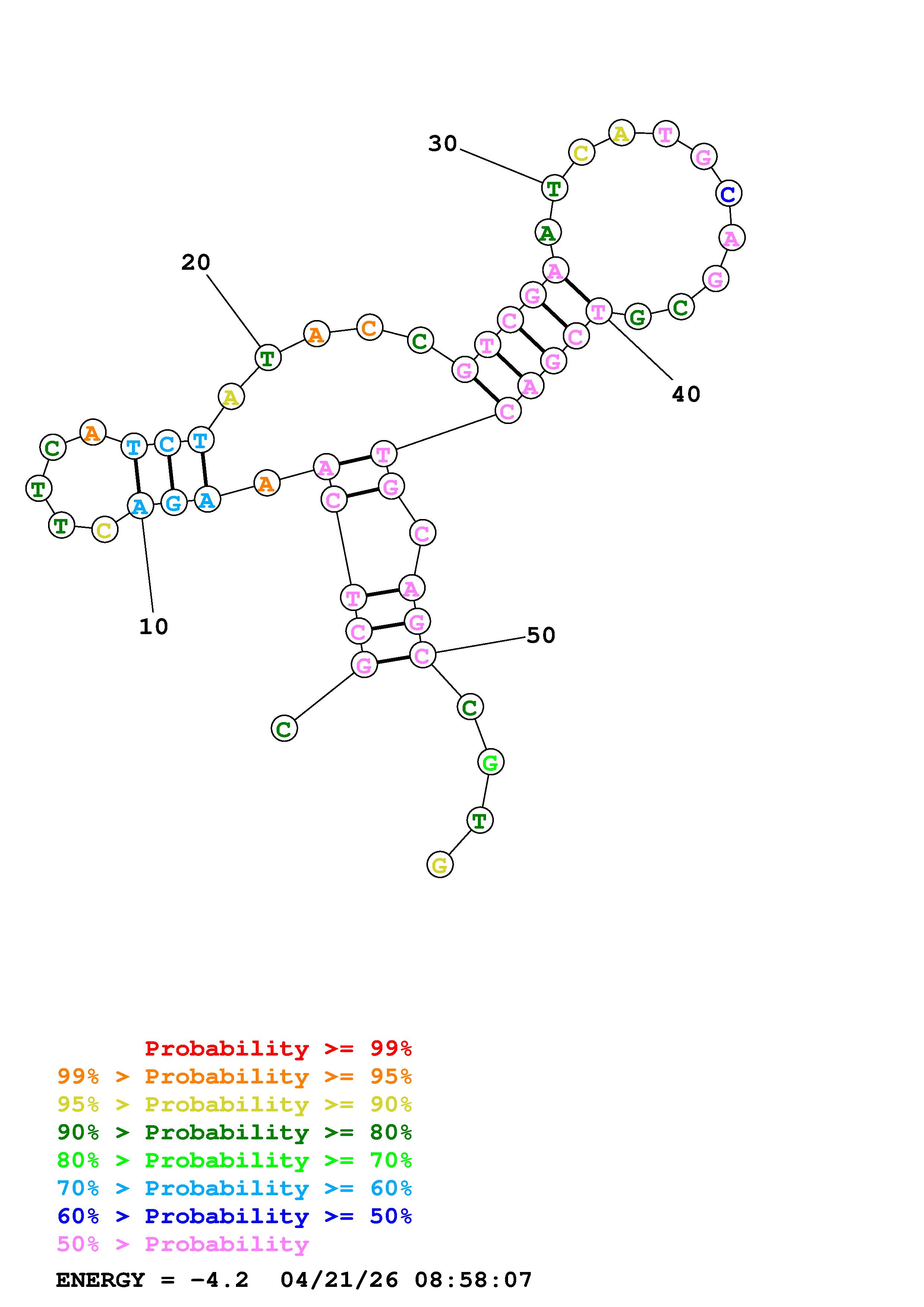 Fold Predict1.fasta Fold.ct --DNA --loop 30 --maximum 20 --percent 10 --temperature 310.15 --window 3