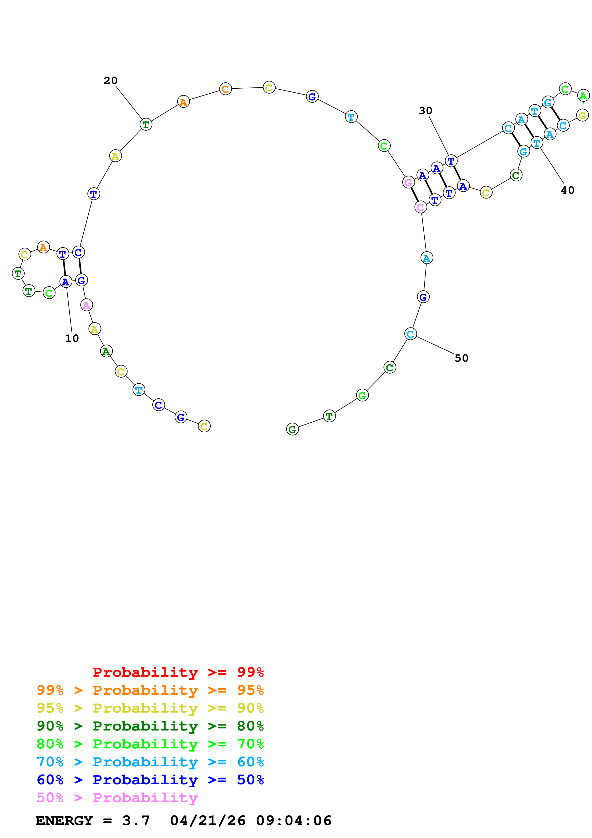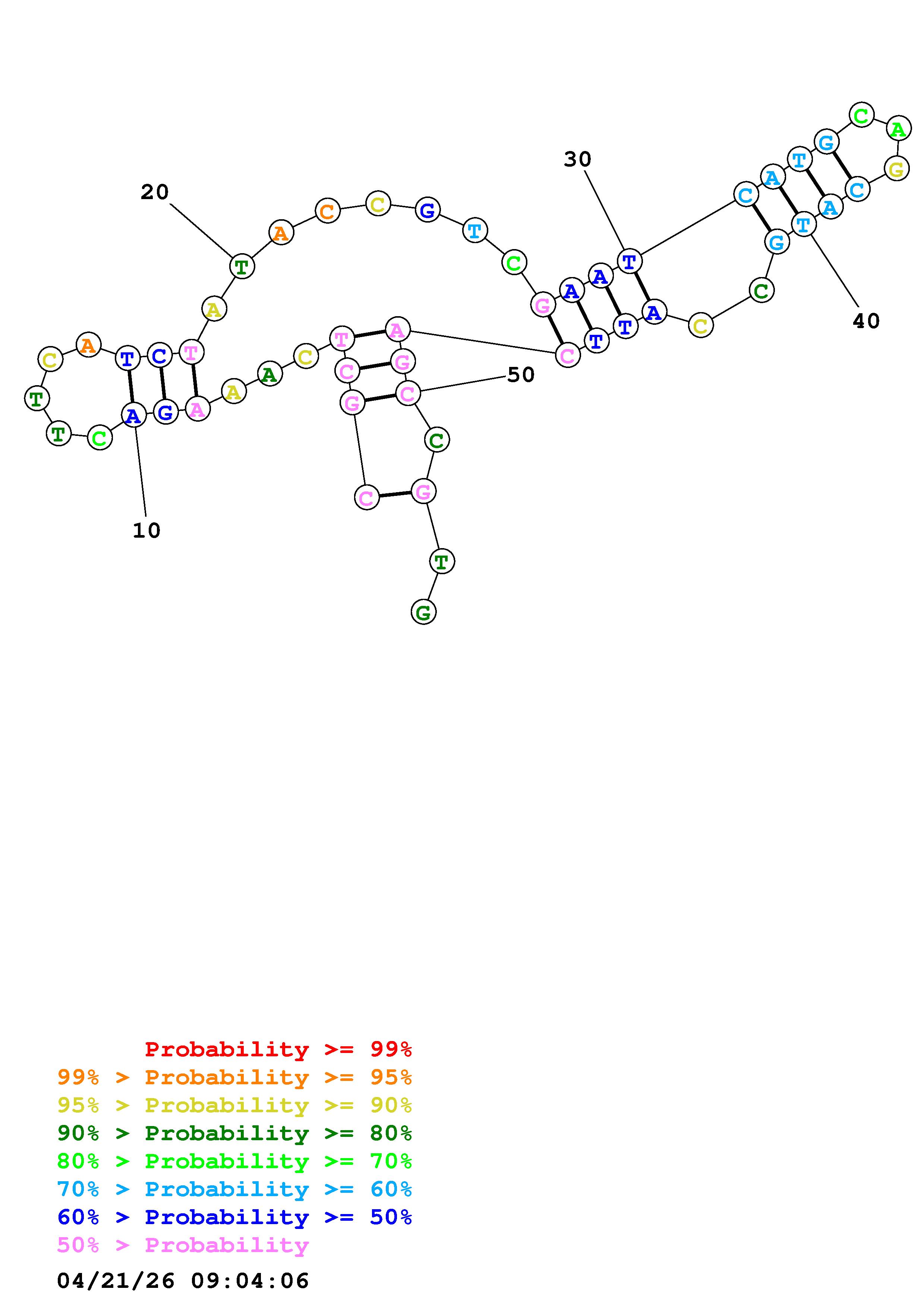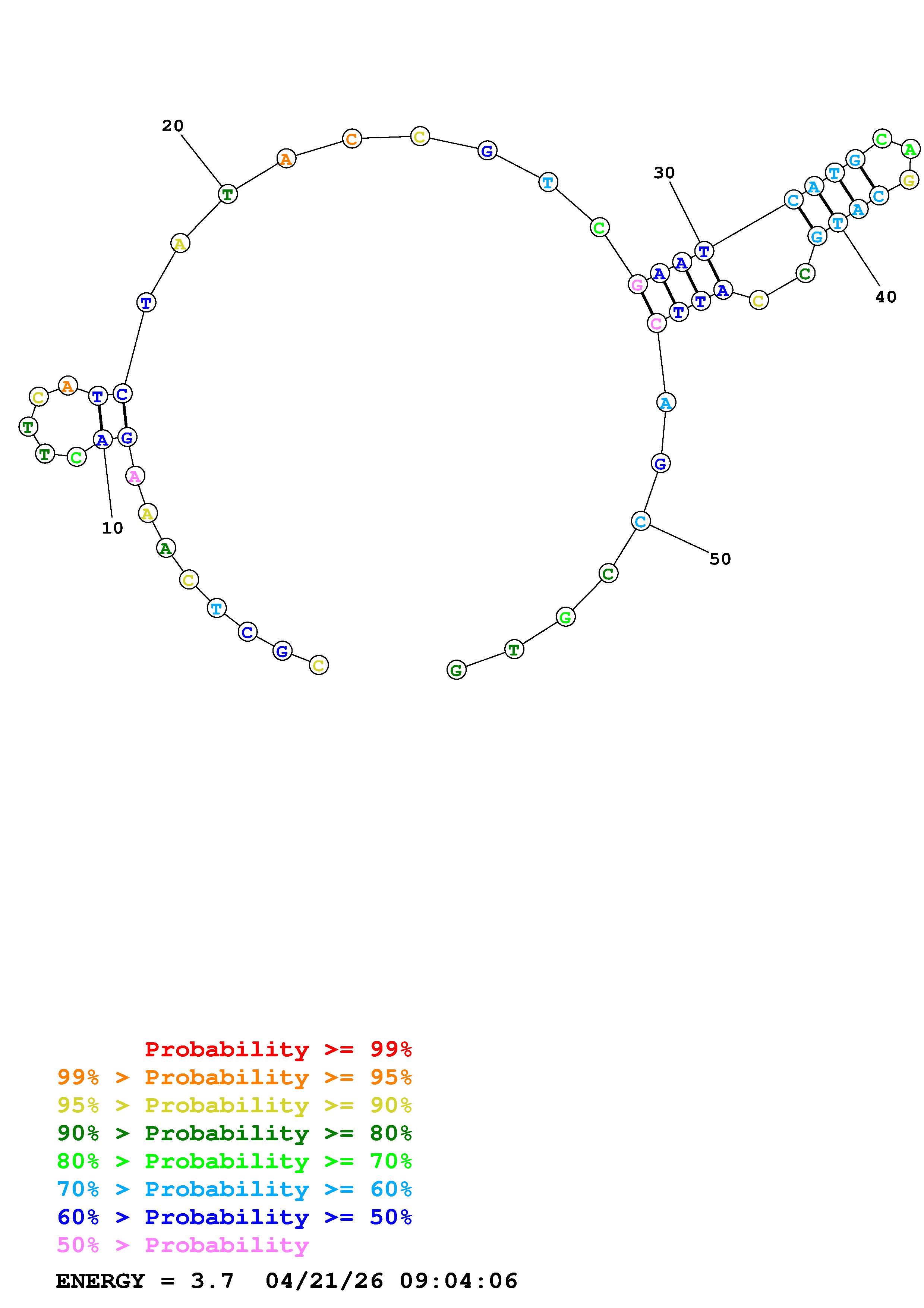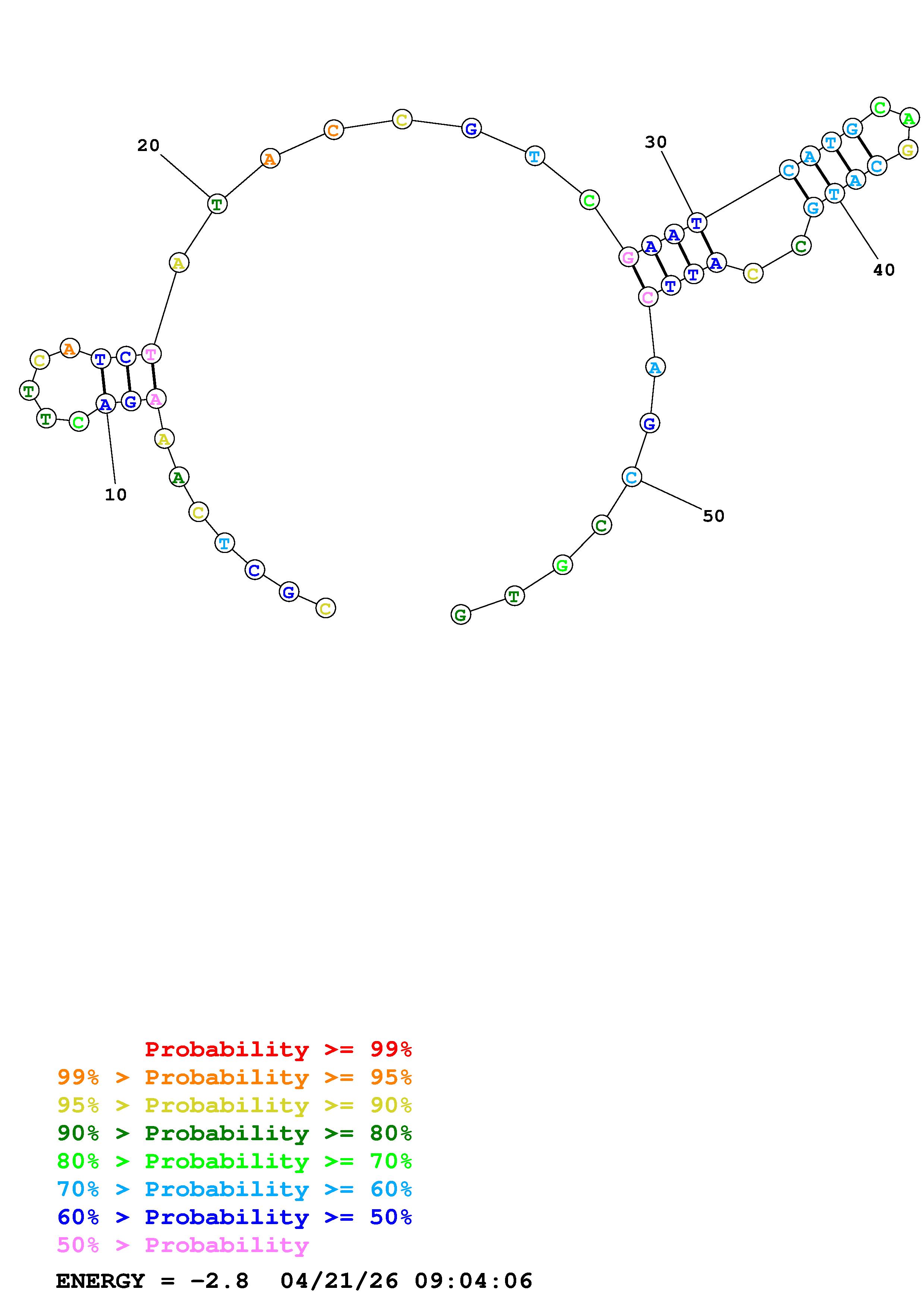 Fold Predict1.fasta Fold.ct --DNA --loop 30 --maximum 20 --percent 10 --temperature 310.15 --window 3