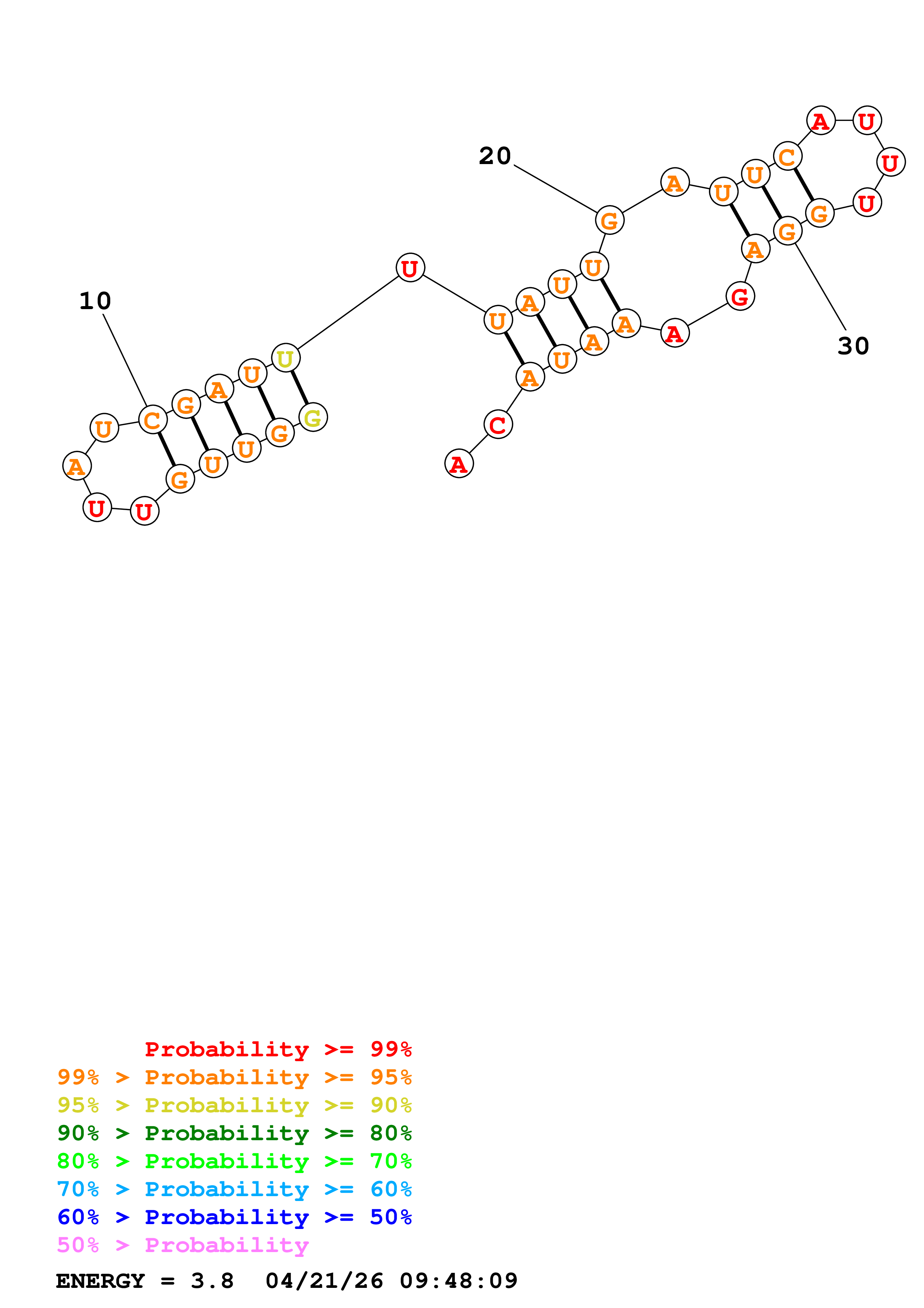 (Generate a structure or structures composed of highly probable base pairs. This is an alternative method for structure prediction that may have higher fidelity in structure prediction.)