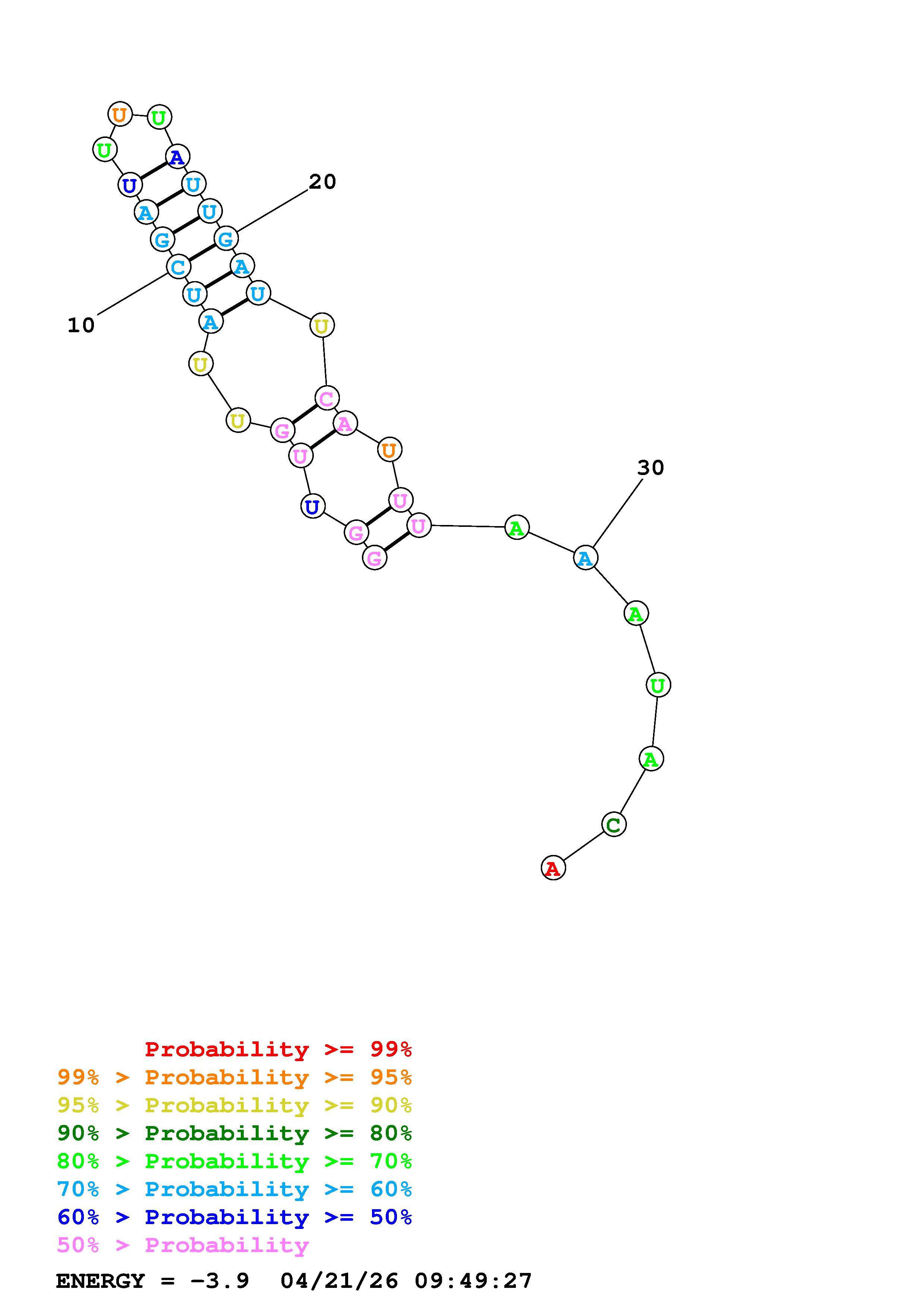 (Generate a structure or structures composed of highly probable base pairs. This is an alternative method for structure prediction that may have higher fidelity in structure prediction.)