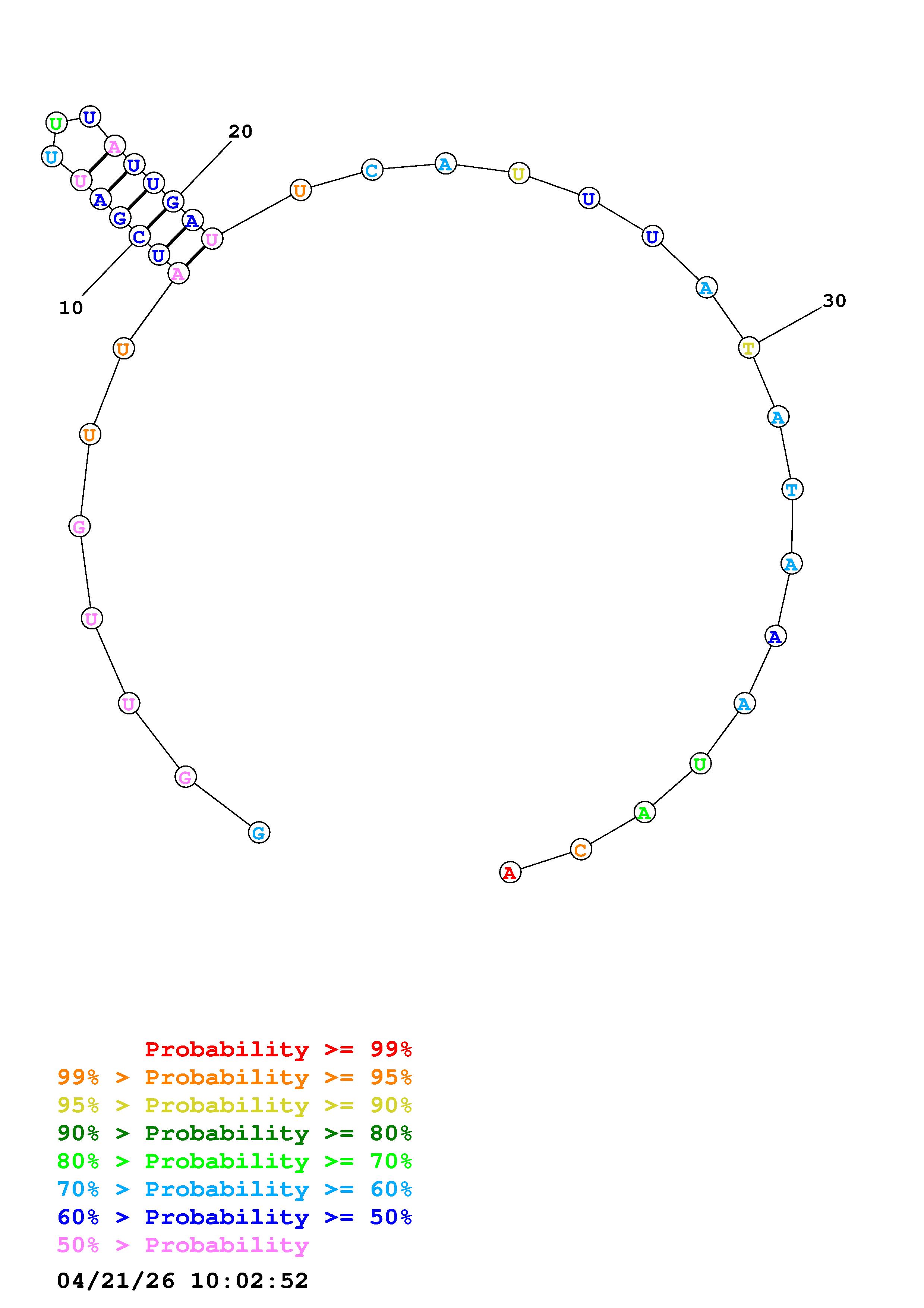 Fold Predict1.fasta Fold.ct --loop 30 --maximum 20 --percent 10 --temperature 298 --window 3