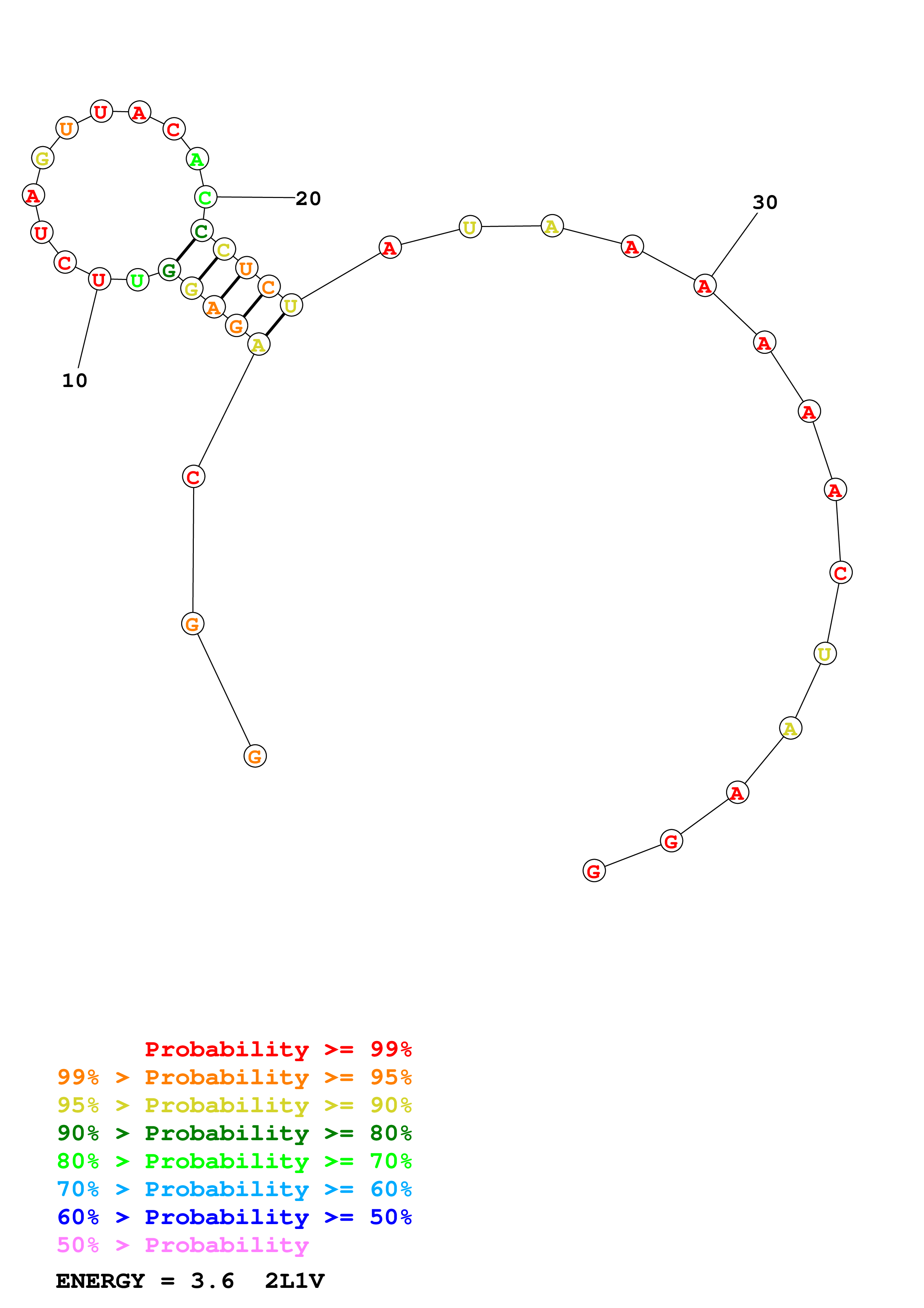 (Predict a secondary structure of probable base pairs, which might include pseudoknots.)