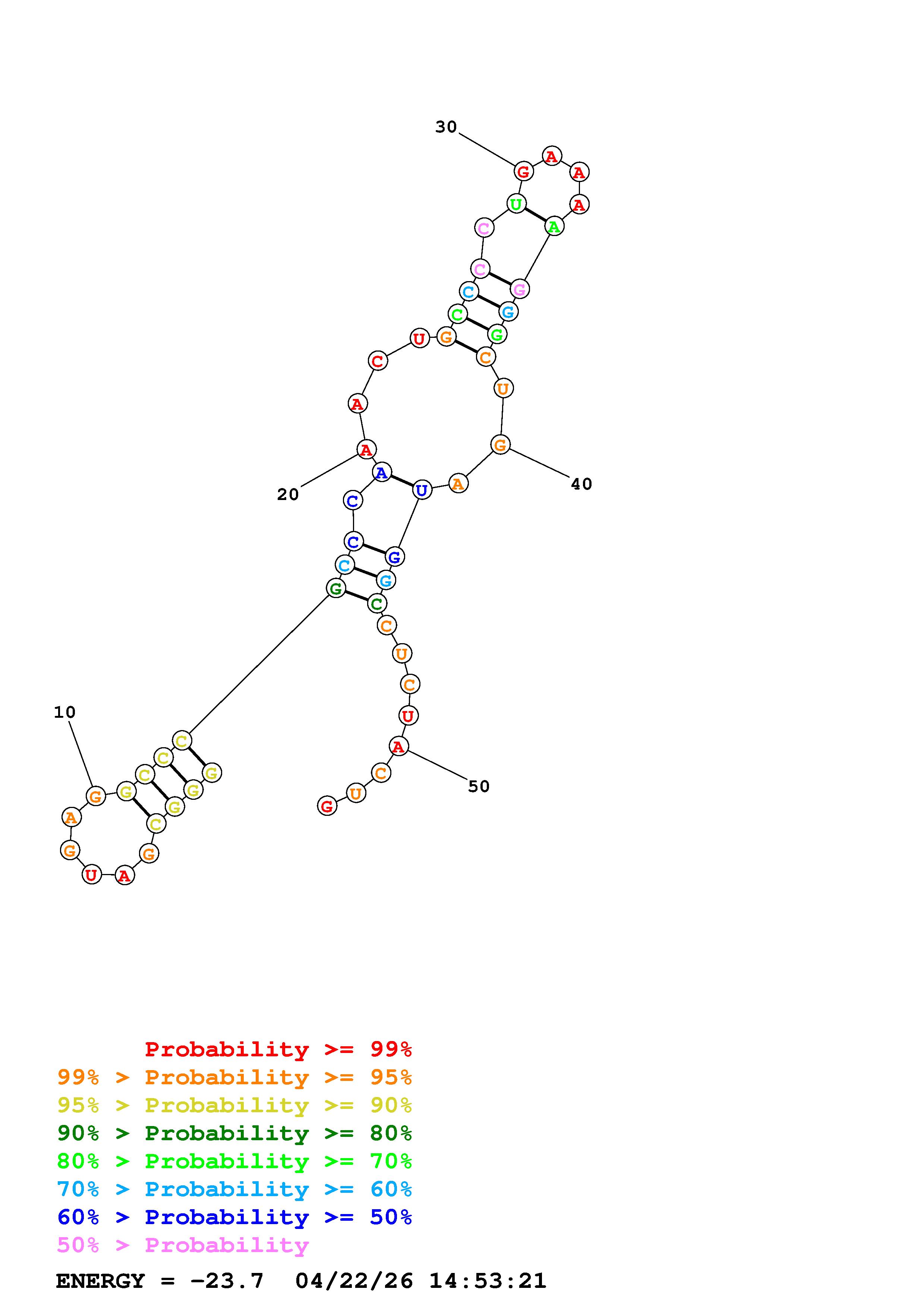 Fold Predict1.fasta Fold.ct --loop 30 --maximum 20 --percent 10 --temperature 298 --window 3